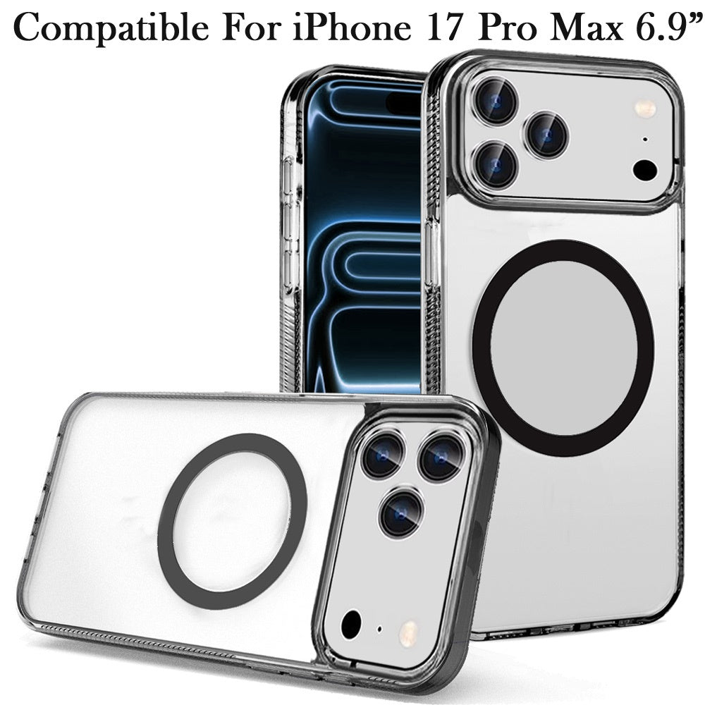 For iPhone 17 Pro Max Case Magnetic Circle Grip Sides Hybrid + Tempered Glass