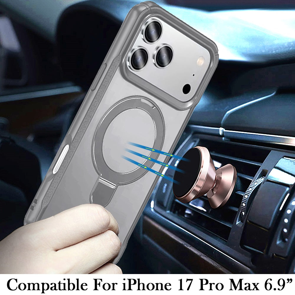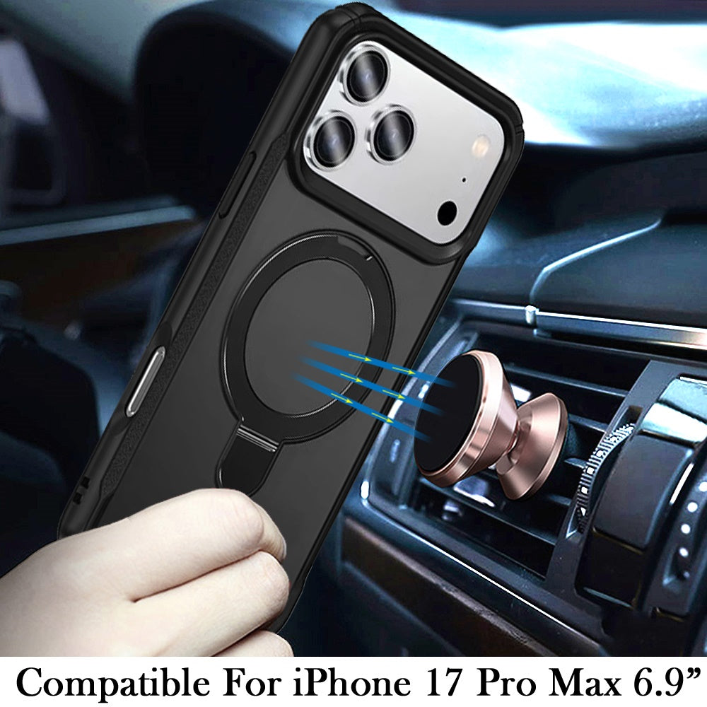For iPhone 17 Pro Max Case Magnetic Circle Stand Matte Cover + Tempered Glass