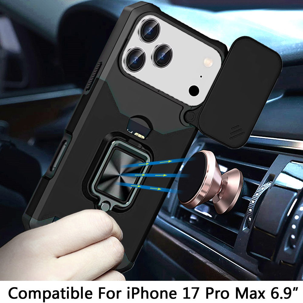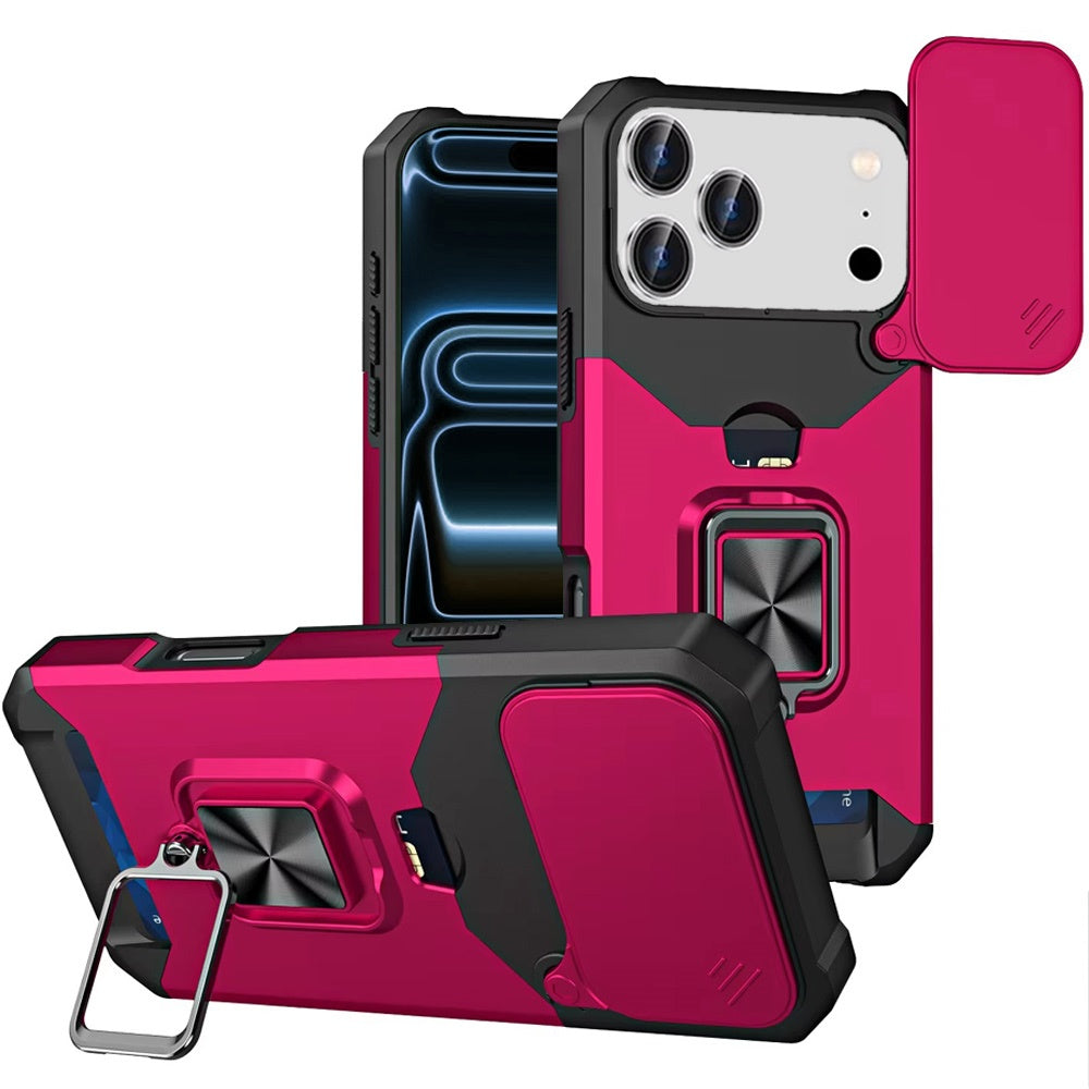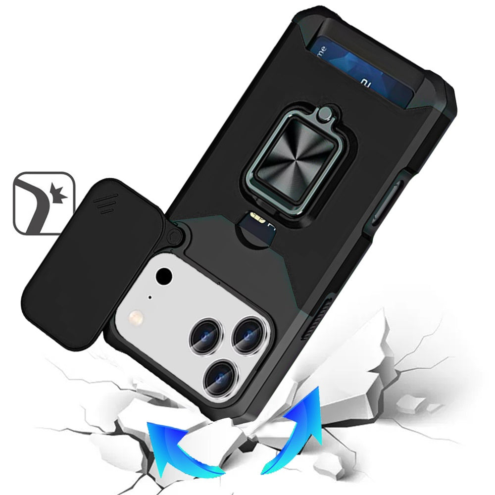 For iPhone 17 Pro Max Case Multi-Use Card Holder with Lens Cover +Tempered Glass