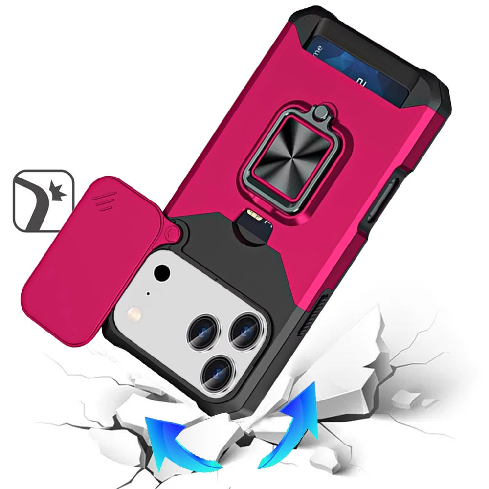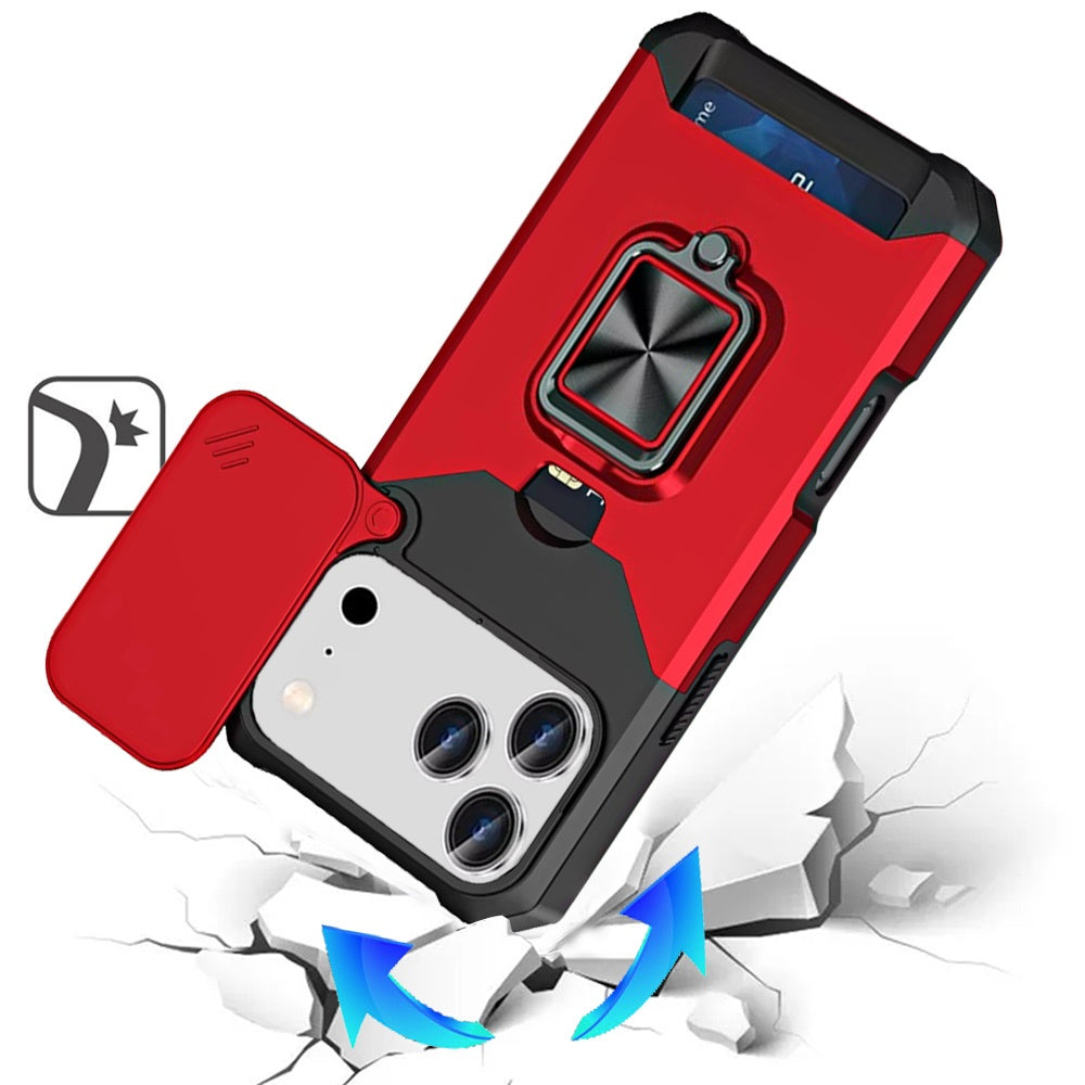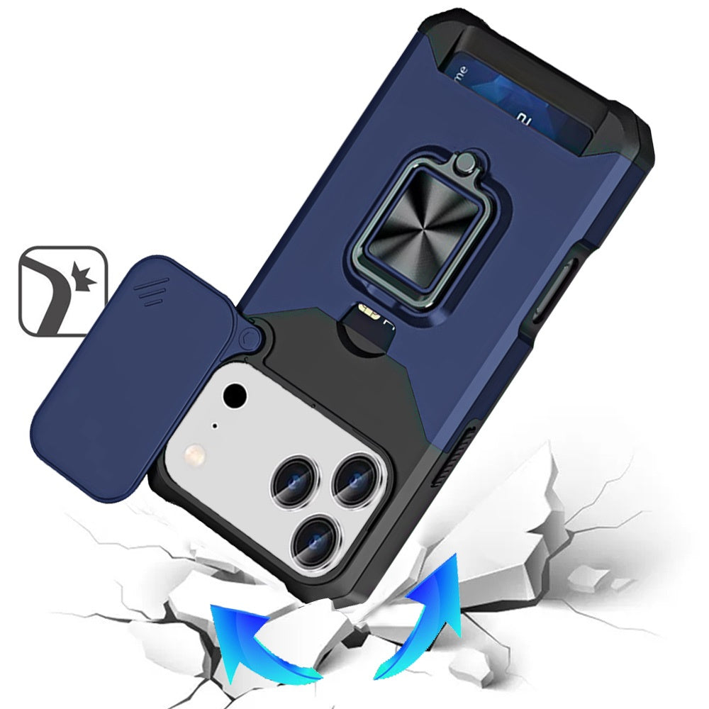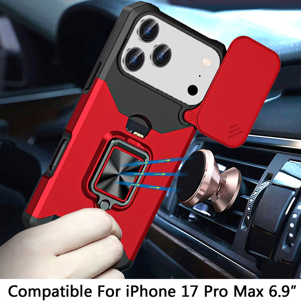 For iPhone 17 Pro Max Case Multi-Use Card Holder with Lens Cover +Tempered Glass