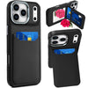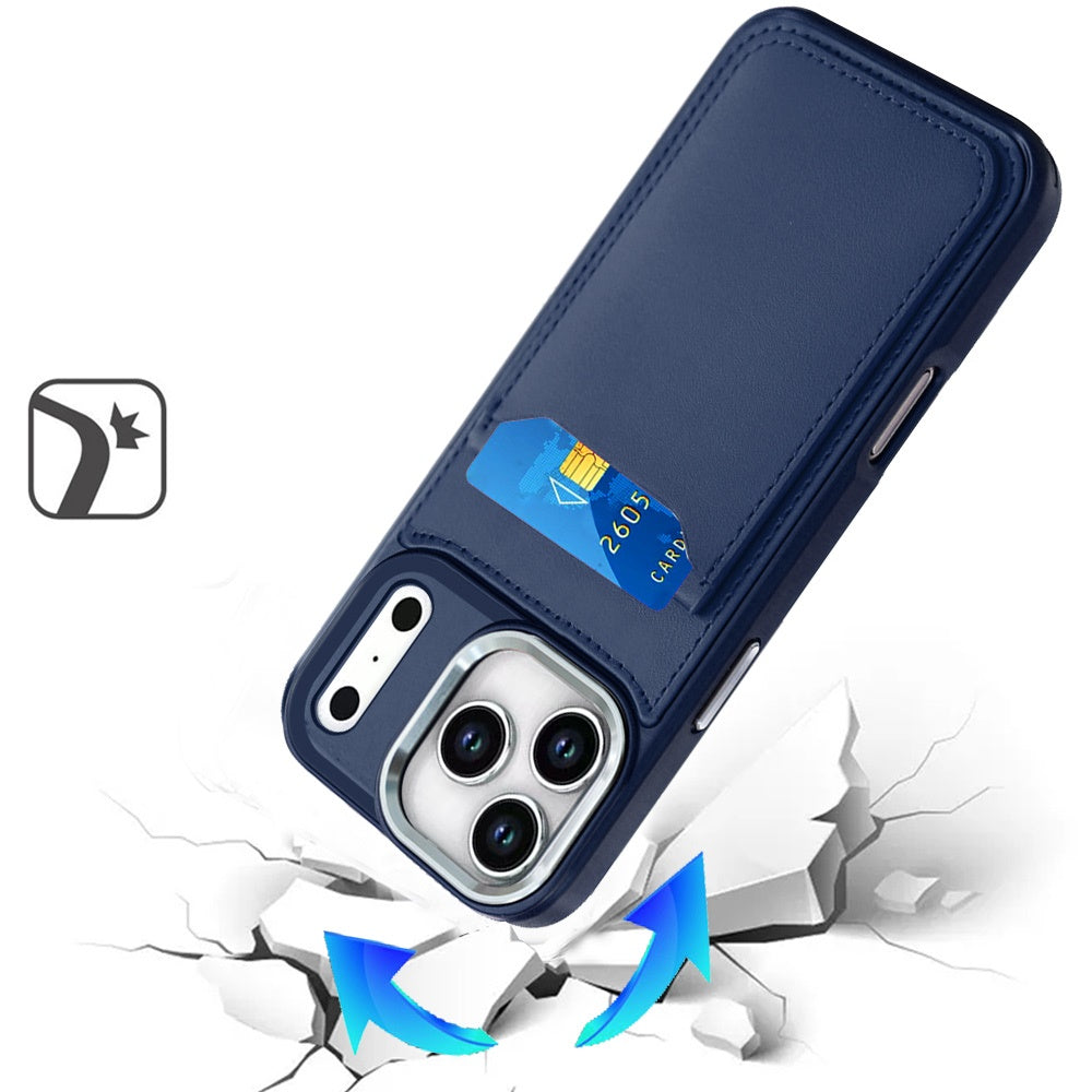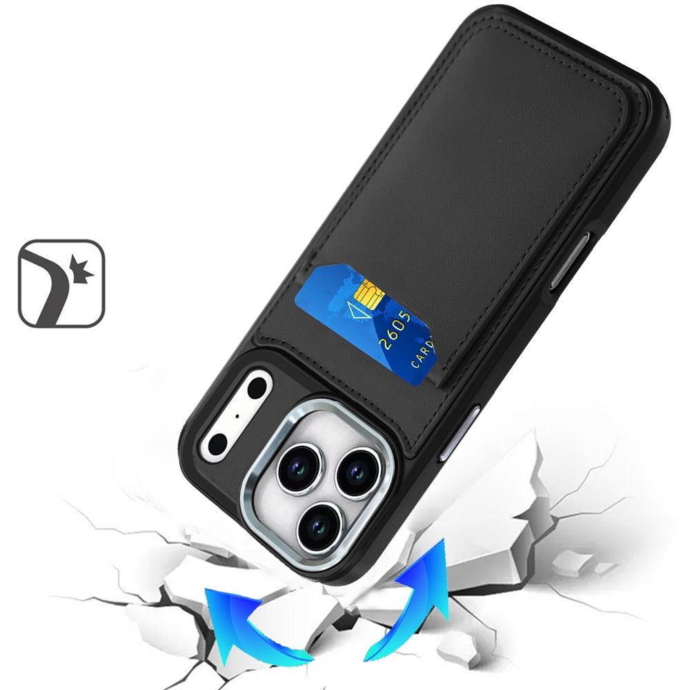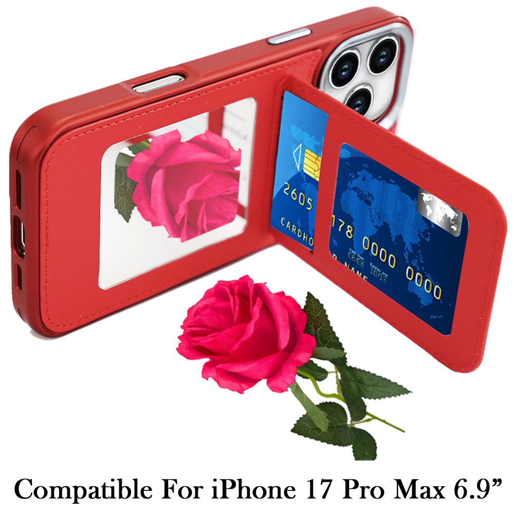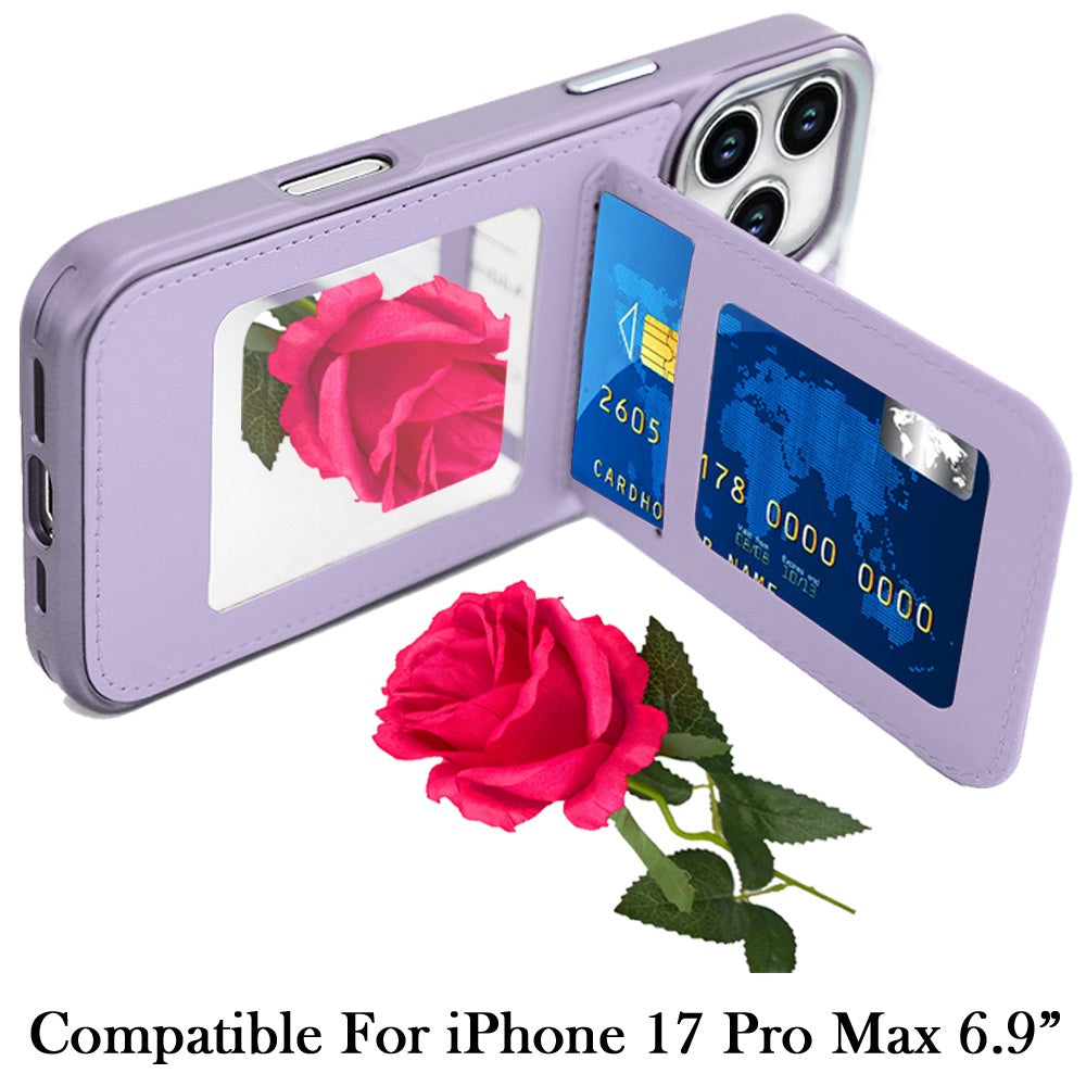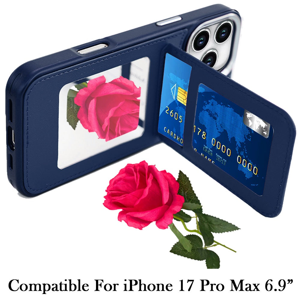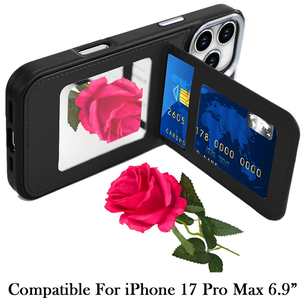 For iPhone 17 Pro Max Case PU Leather Card Cover with Mirror + Tempered Glass