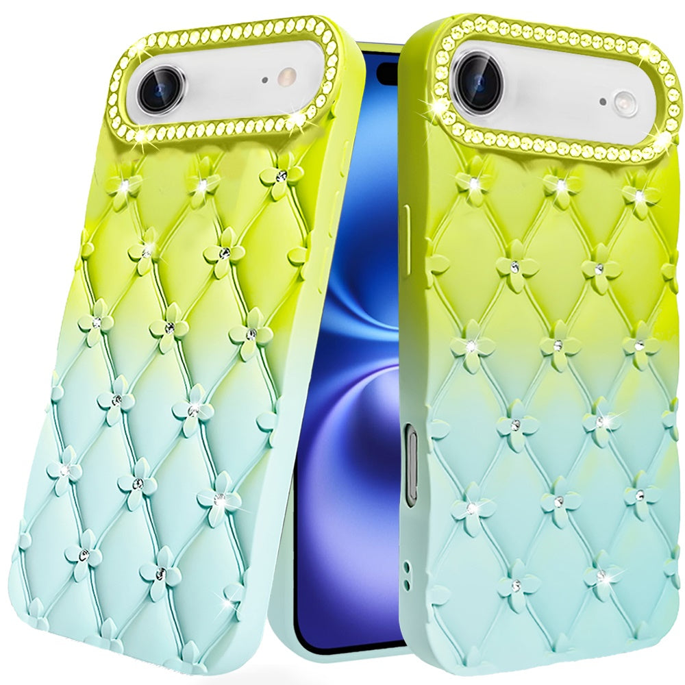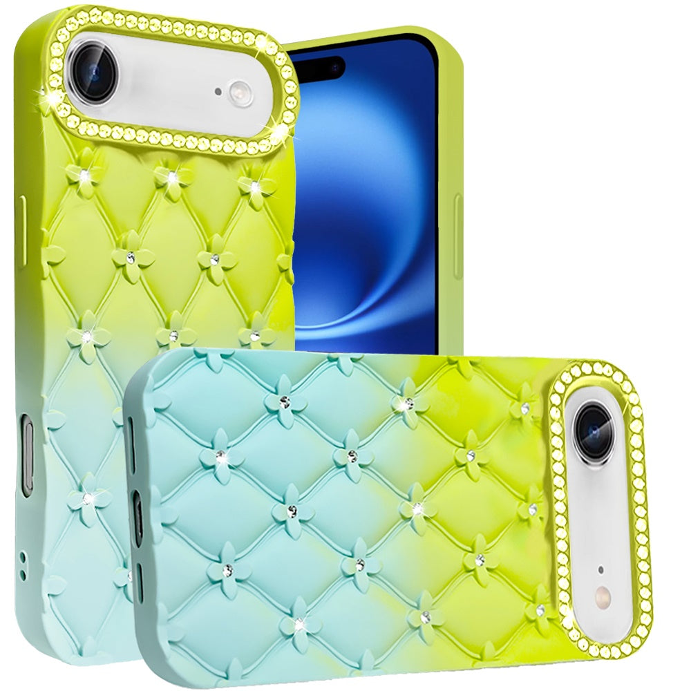 For iPhone Air Case Bling Diamond Pattern Rubber Phone Cover + Tempered Glass