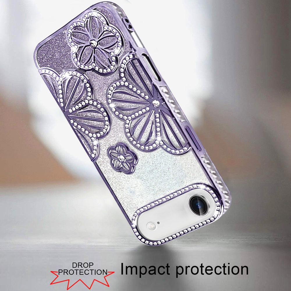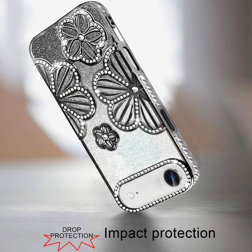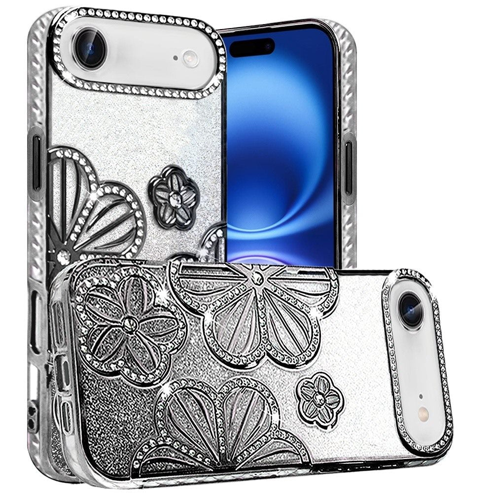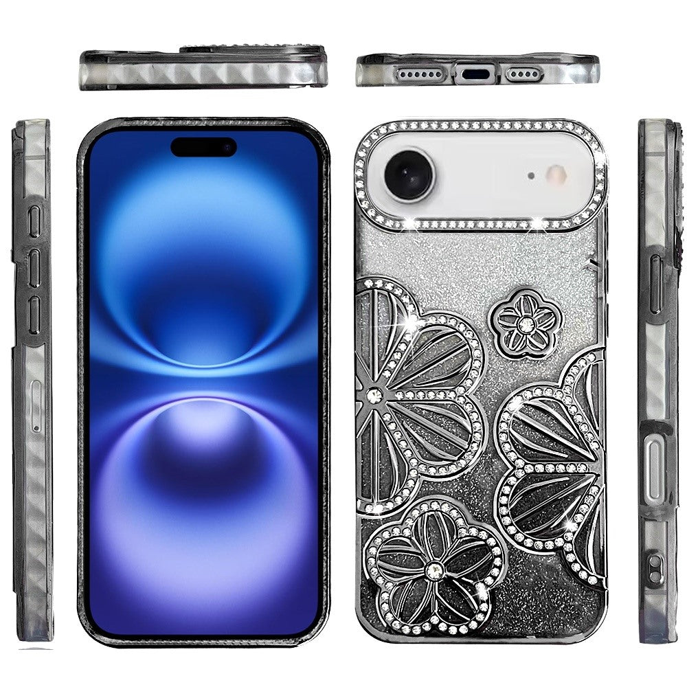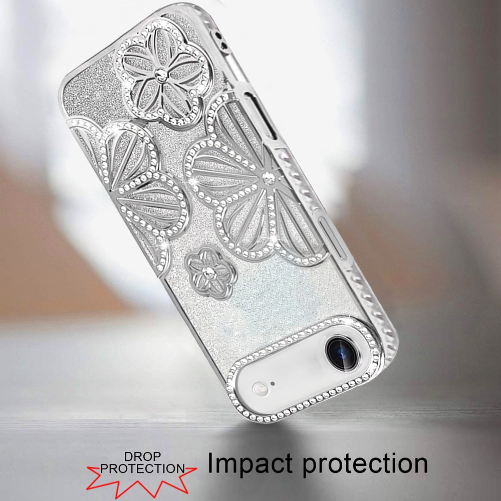 For iPhone Air Case Bling Floral 3D Glitter TPU Phone Cover + Tempered Glass