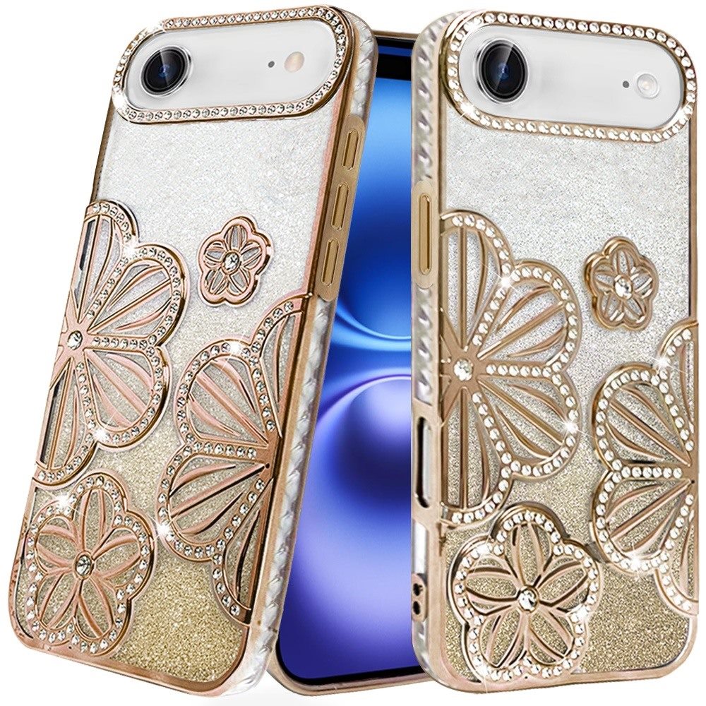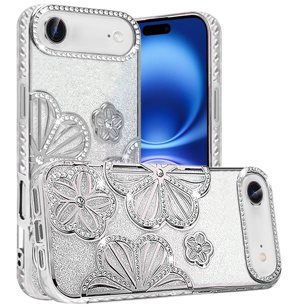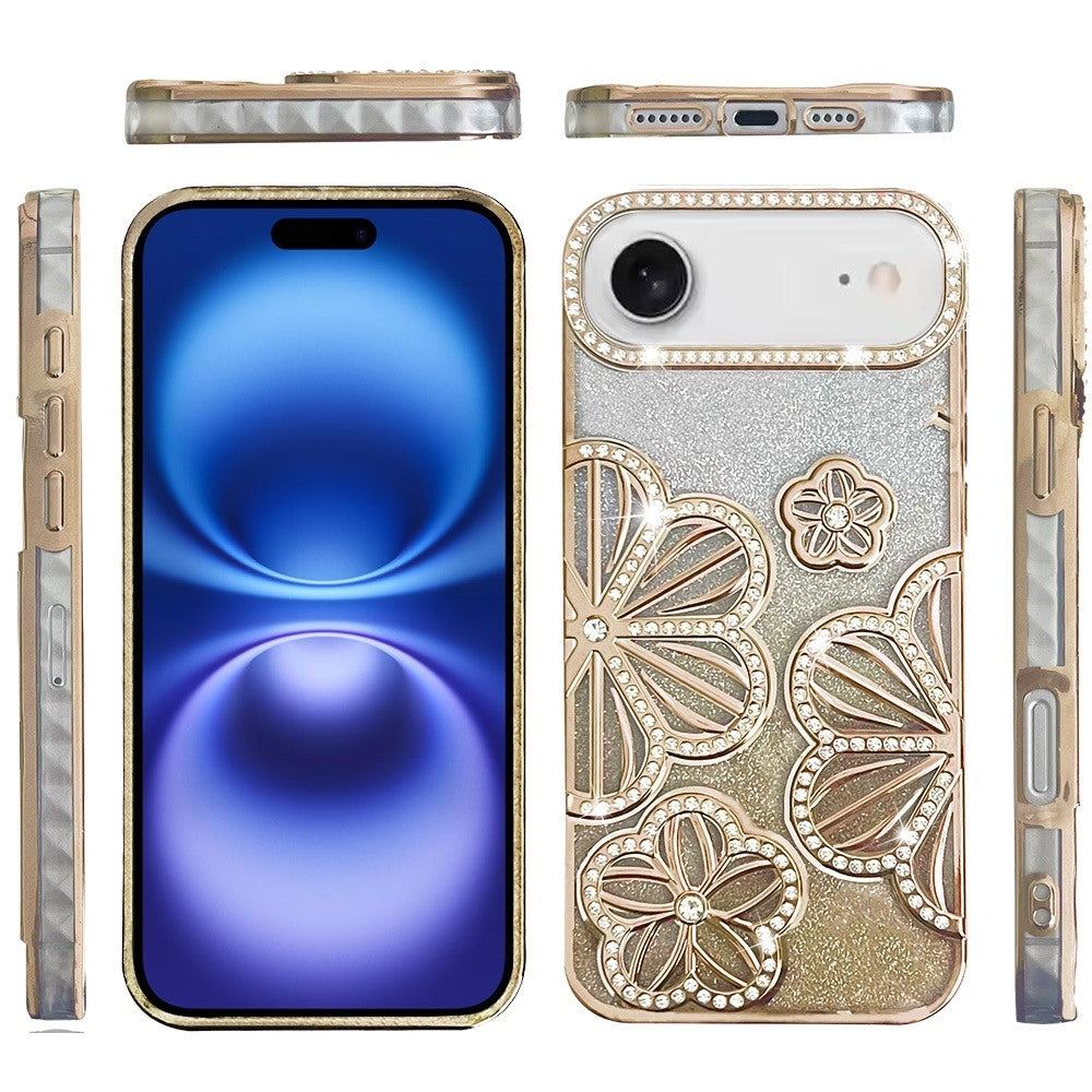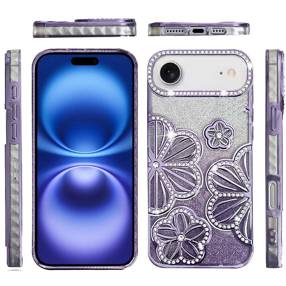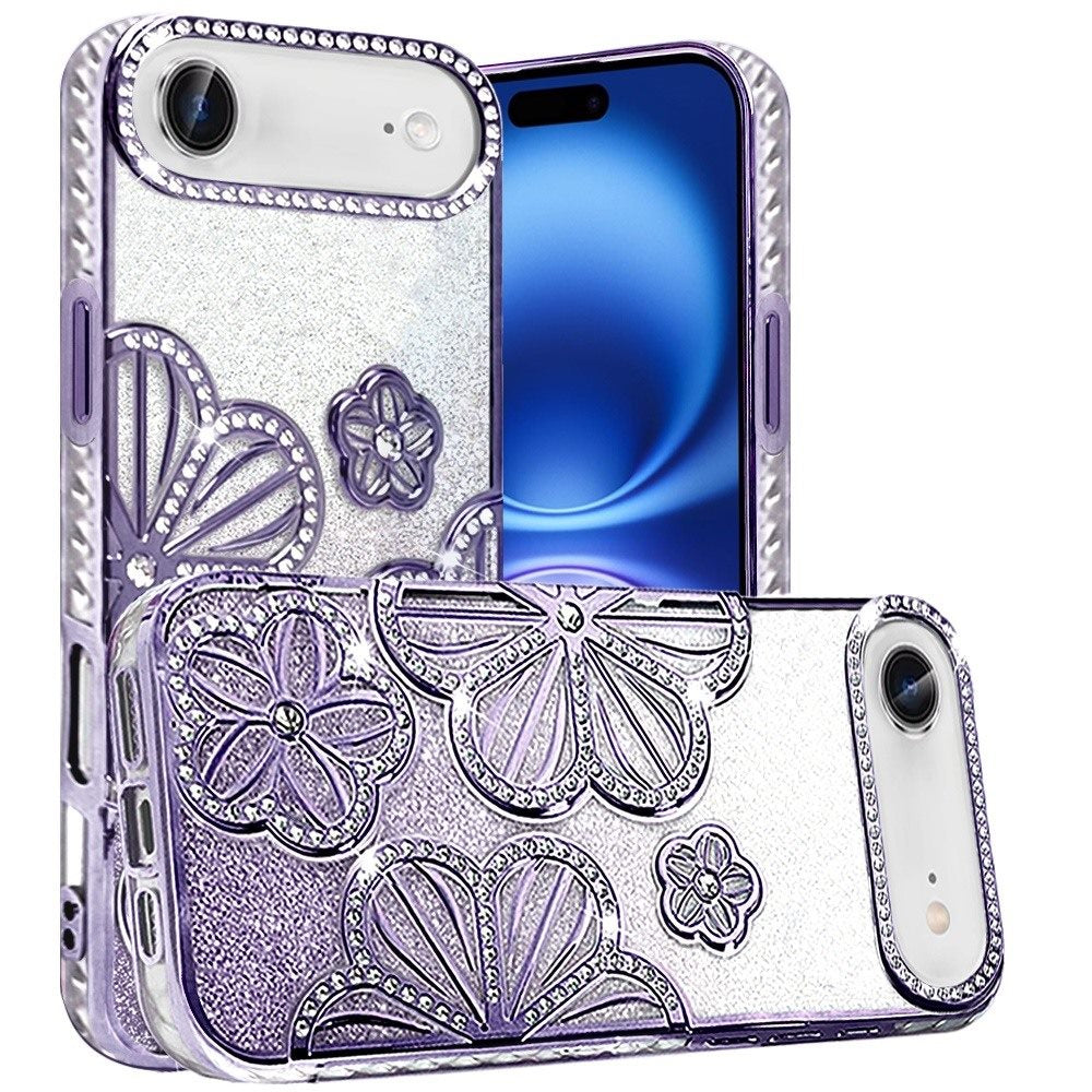 For iPhone Air Case Bling Floral 3D Glitter TPU Phone Cover + Tempered Glass