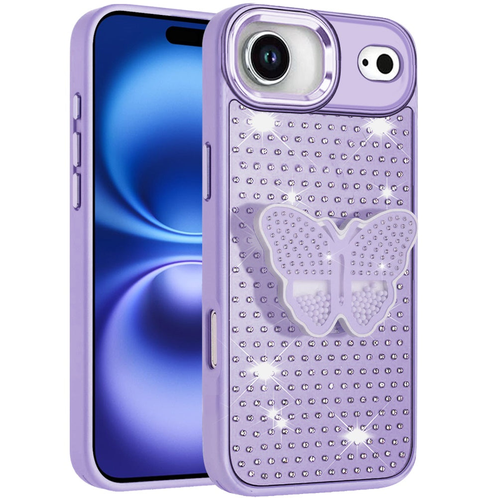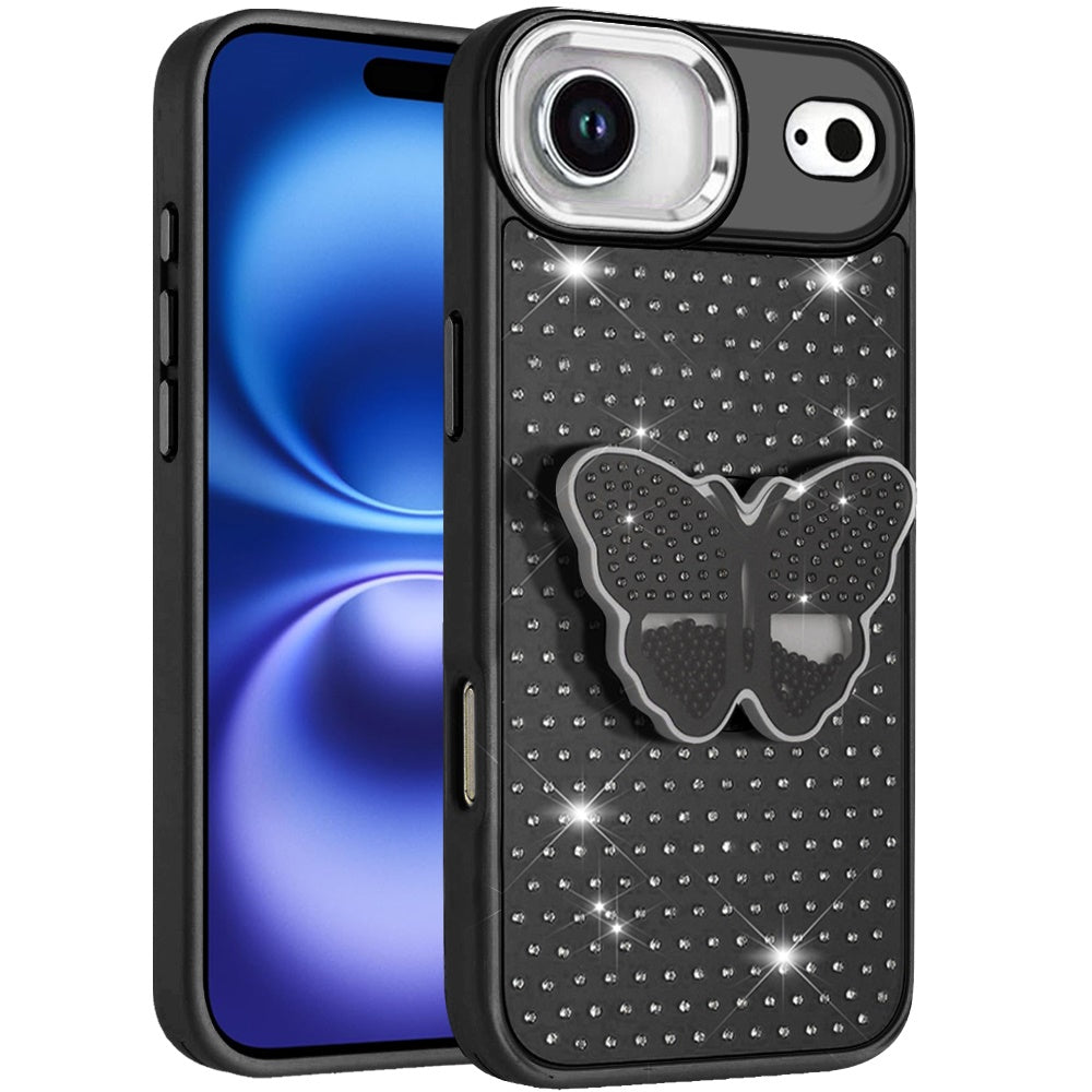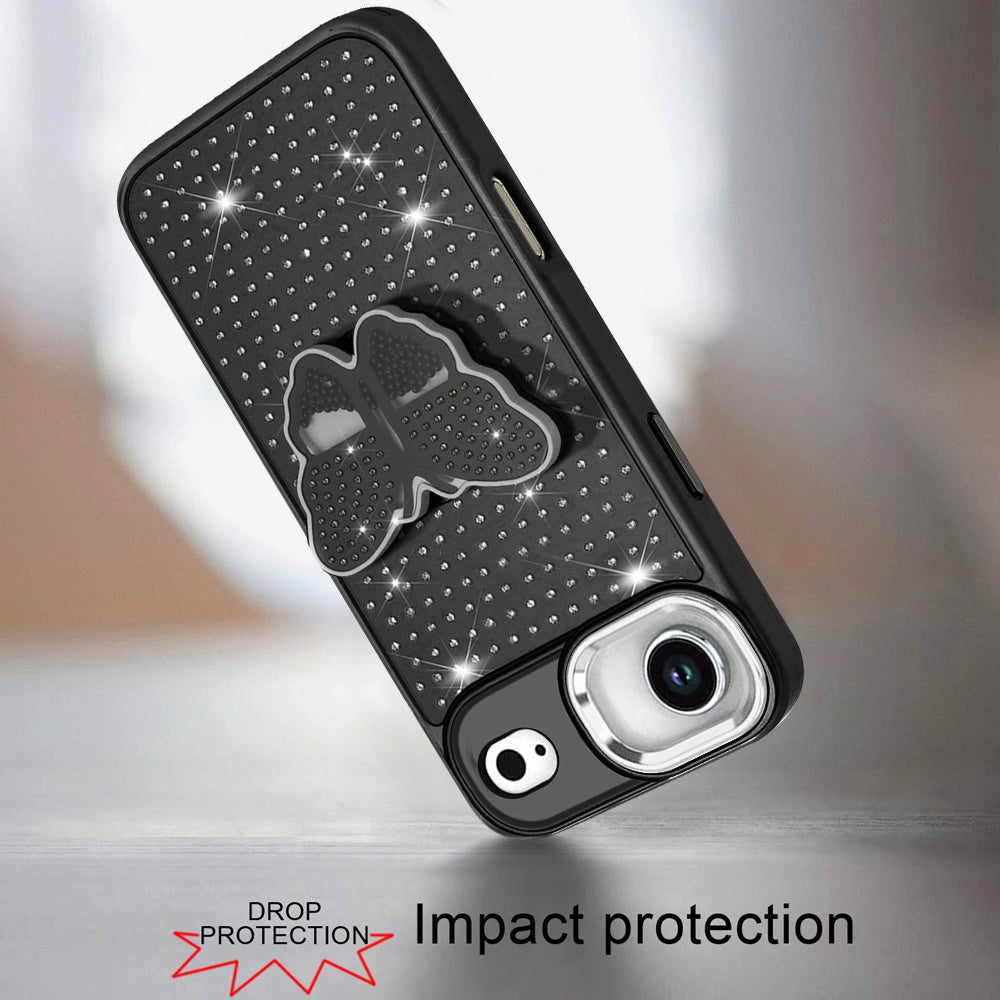 Butterfly Grip Stand with Faux Crystals Chrome Plated Buttons and Camera Trim + Tempered Glass Screen Protector