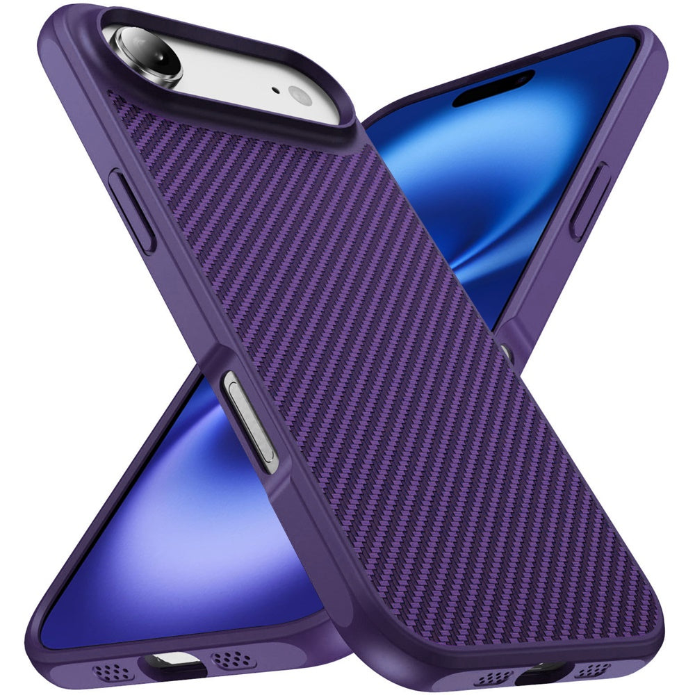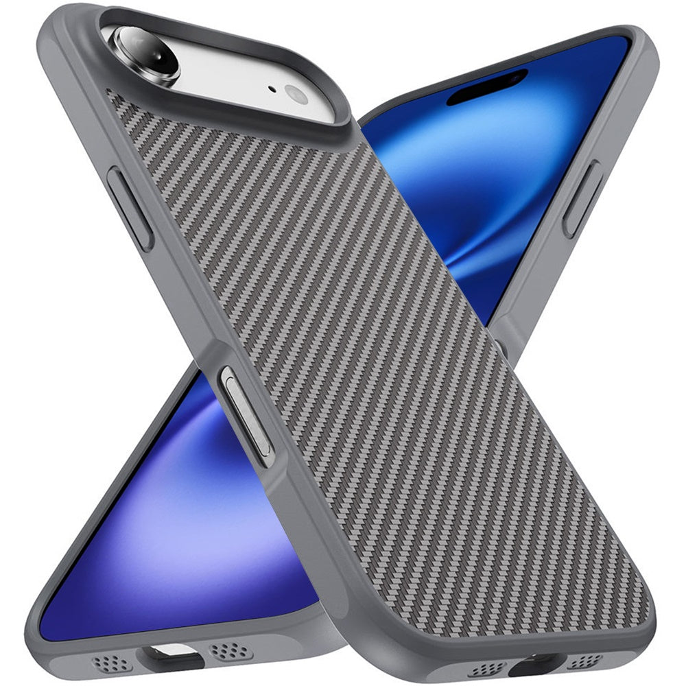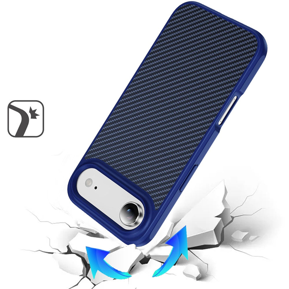 For iPhone Air Case Carbon Fiber Print Hidden Magnetic Circle + Tempered Glass