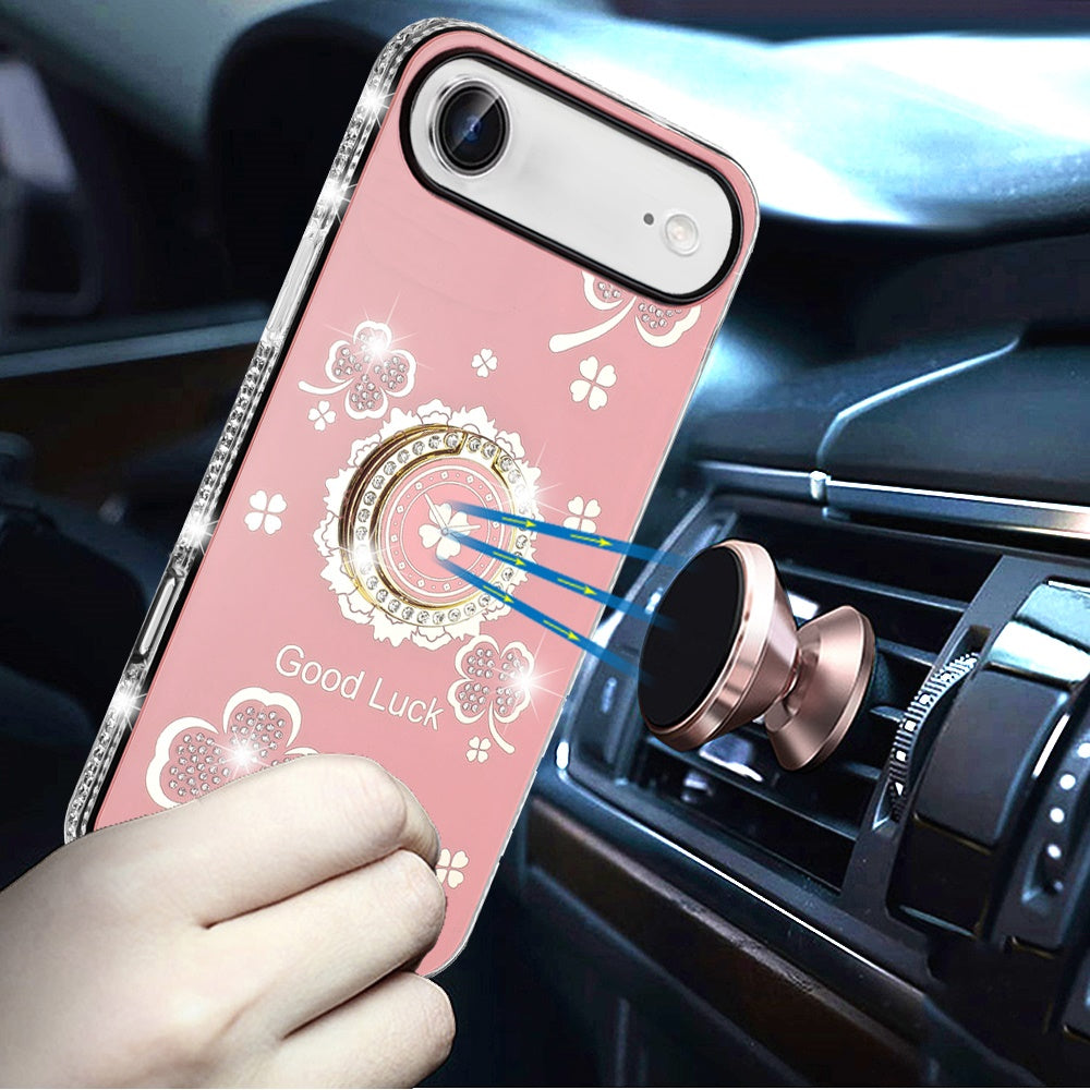 For iPhone Air Case Crystal Studded Ring Stand Bling Phone Cover +Tempered Glass