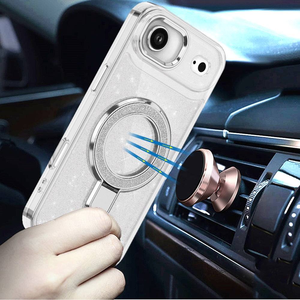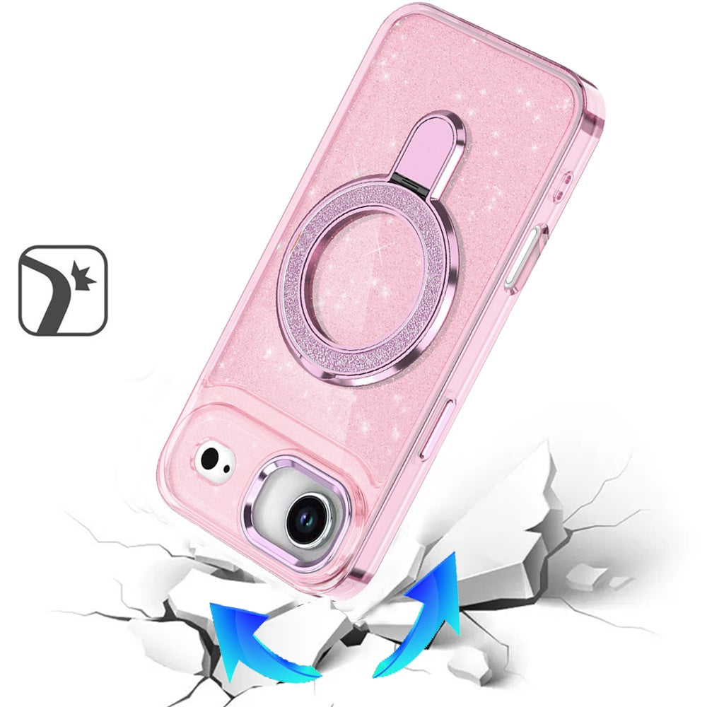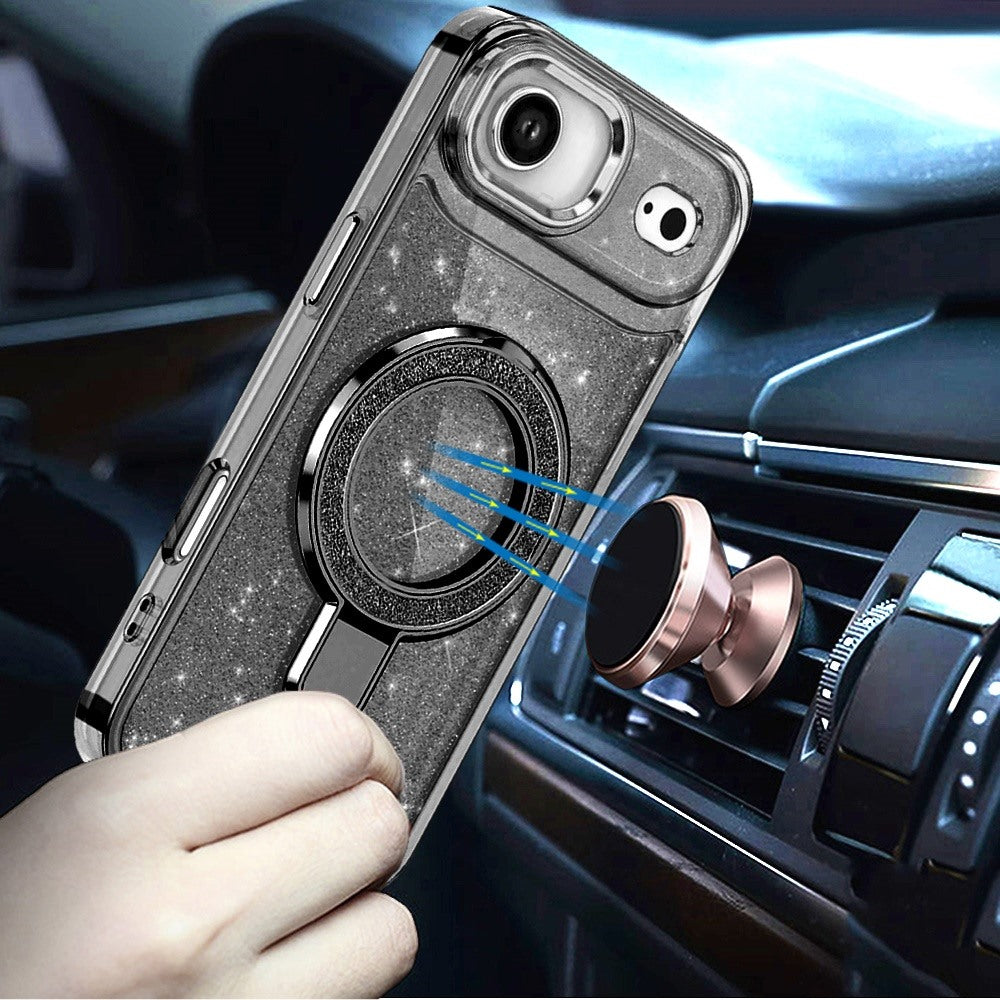 For iPhone Air Case Full Glitter Cover w/ Magnetic Circle Stand + Tempered Glass