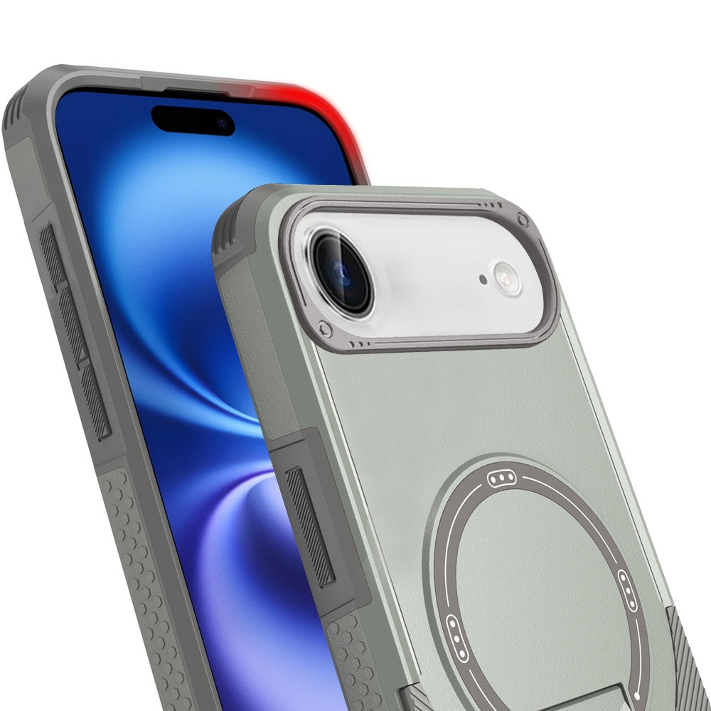 For iPhone Air Case Magnetic Circle Rugged Grip with Kickstand + Tempered Glass