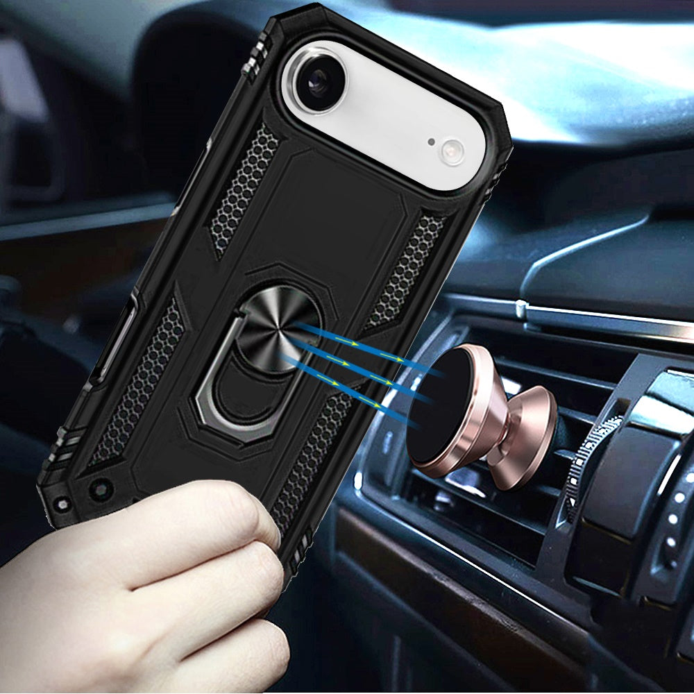 For iPhone Air Case Metal Ring Kickstand Rugged Phone Cover + Tempered Glass