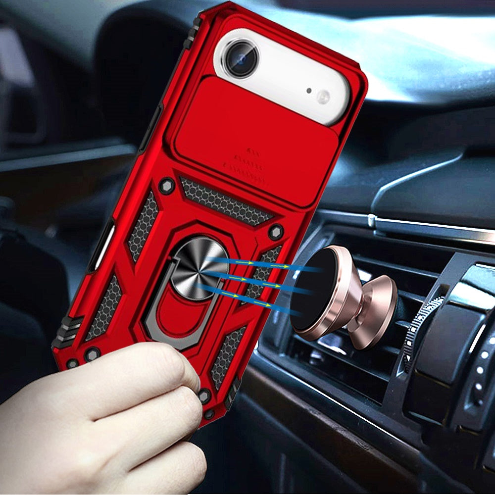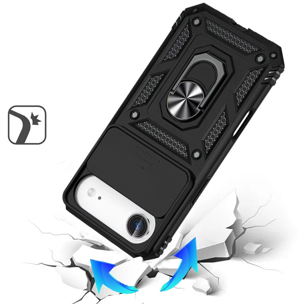 For iPhone Air Case Shockproof Metal Ring Stand w/ Lens Cover + Tempered Glass