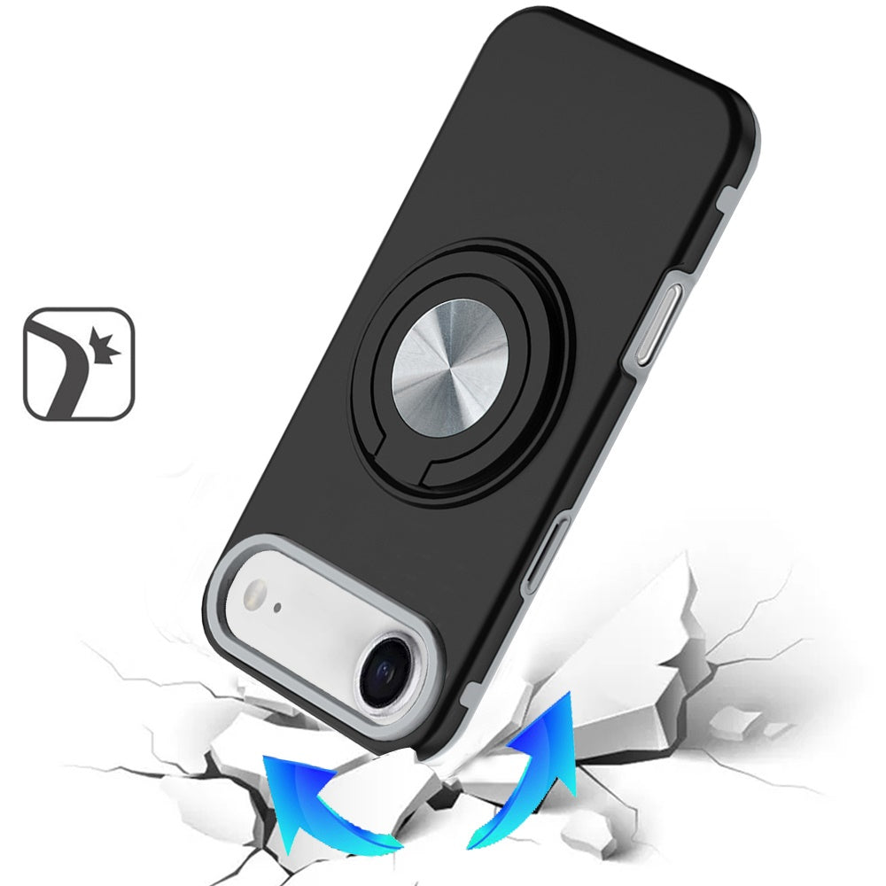 Solid Color Rugged Hybrid Phone Case with 360 Rotating Ring Stand + Tempered Glass Screen Protector