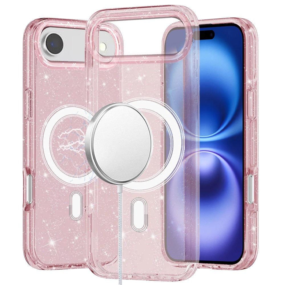 Magnetic Circle Glitter Translucent Hybrid Phone Cover + Tempered Glass Screen Protector