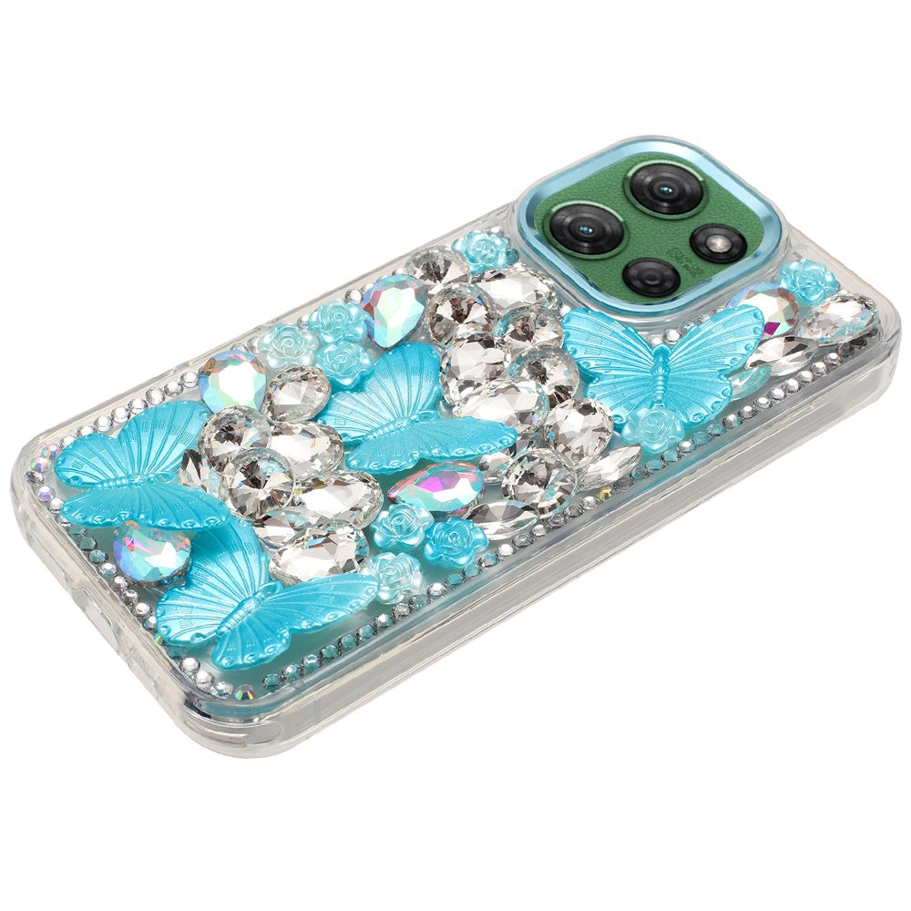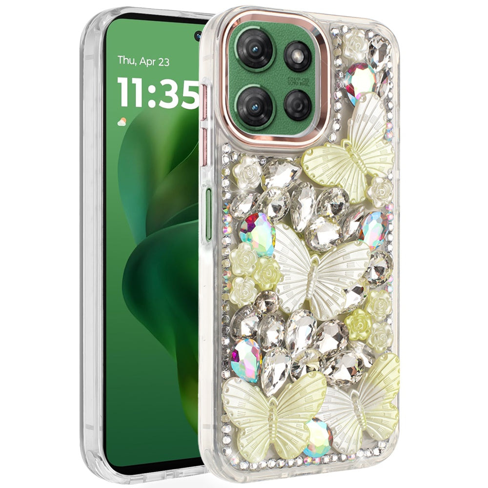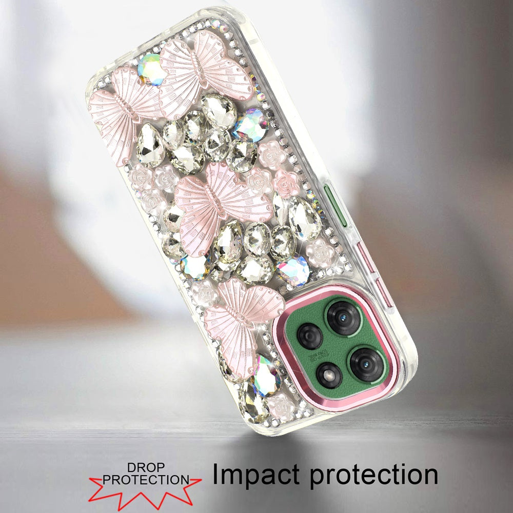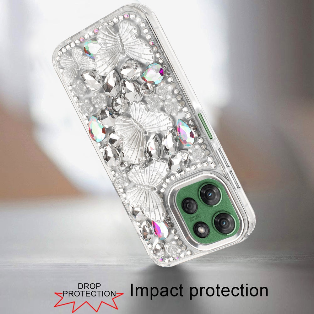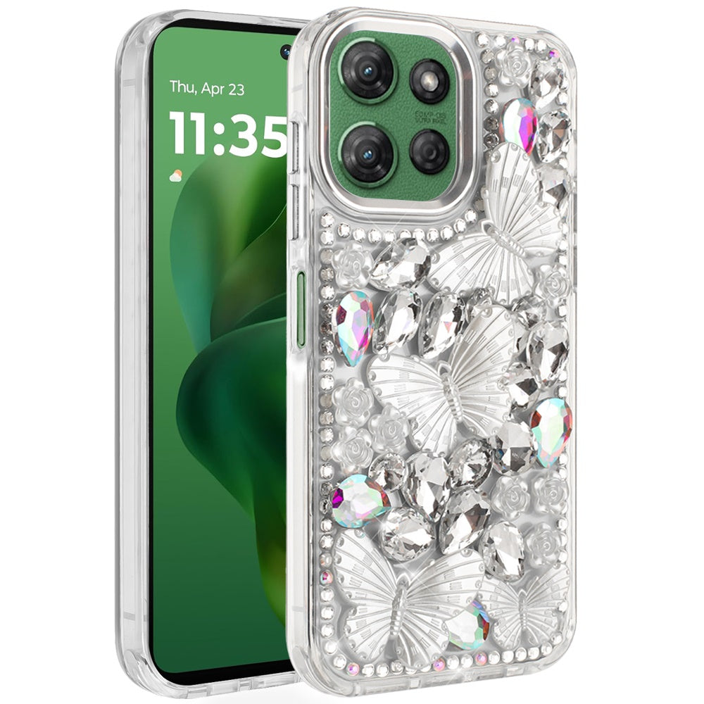 For Moto G Power 2025 Case Bling Diamond Large Butterflies Cover +Tempered Glass