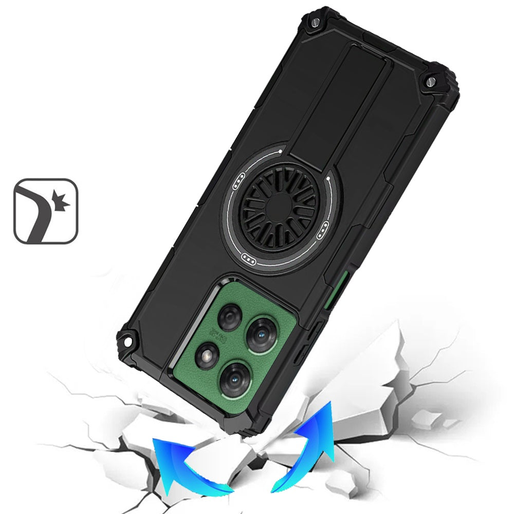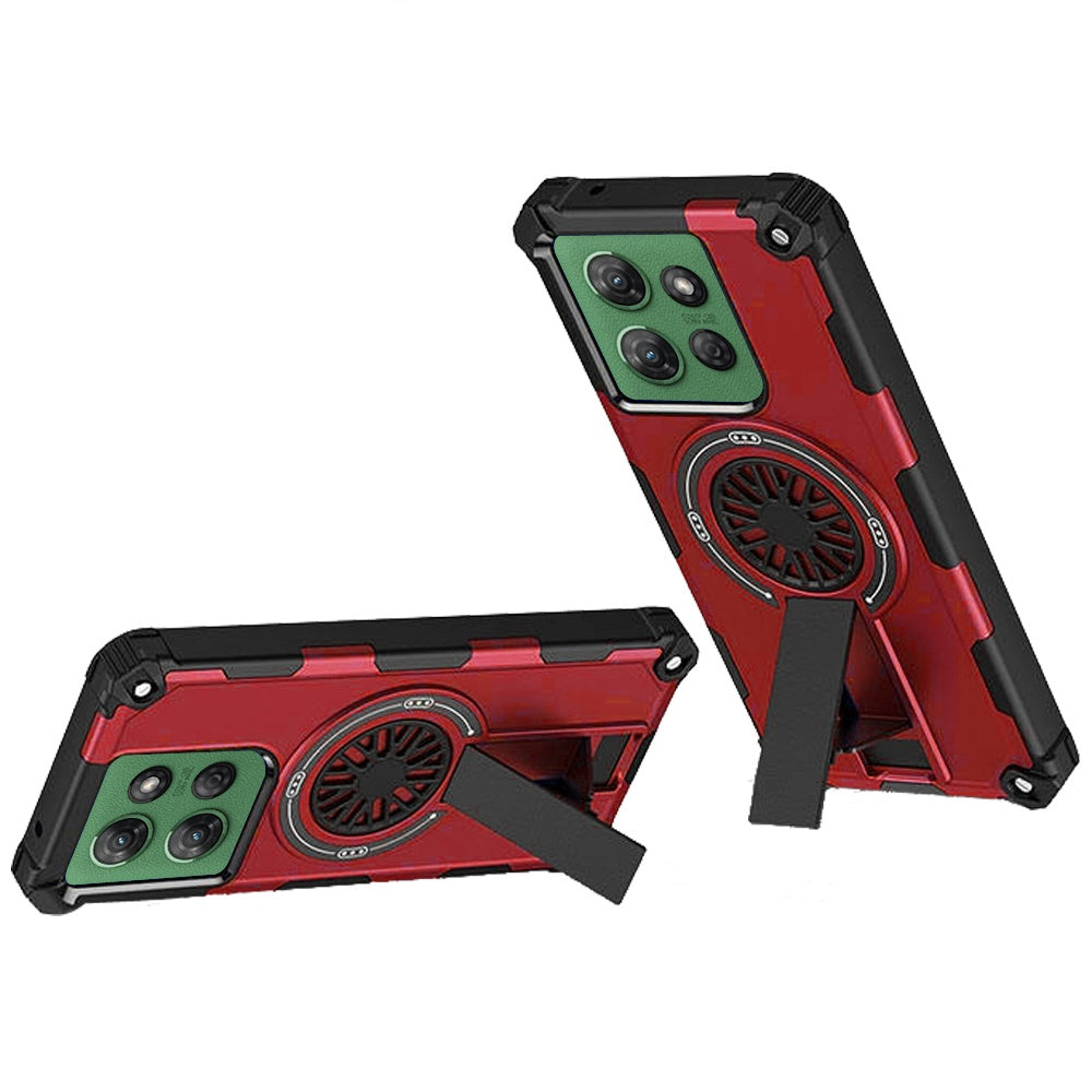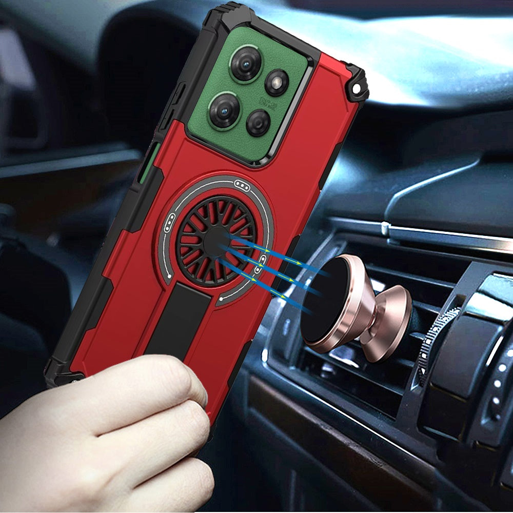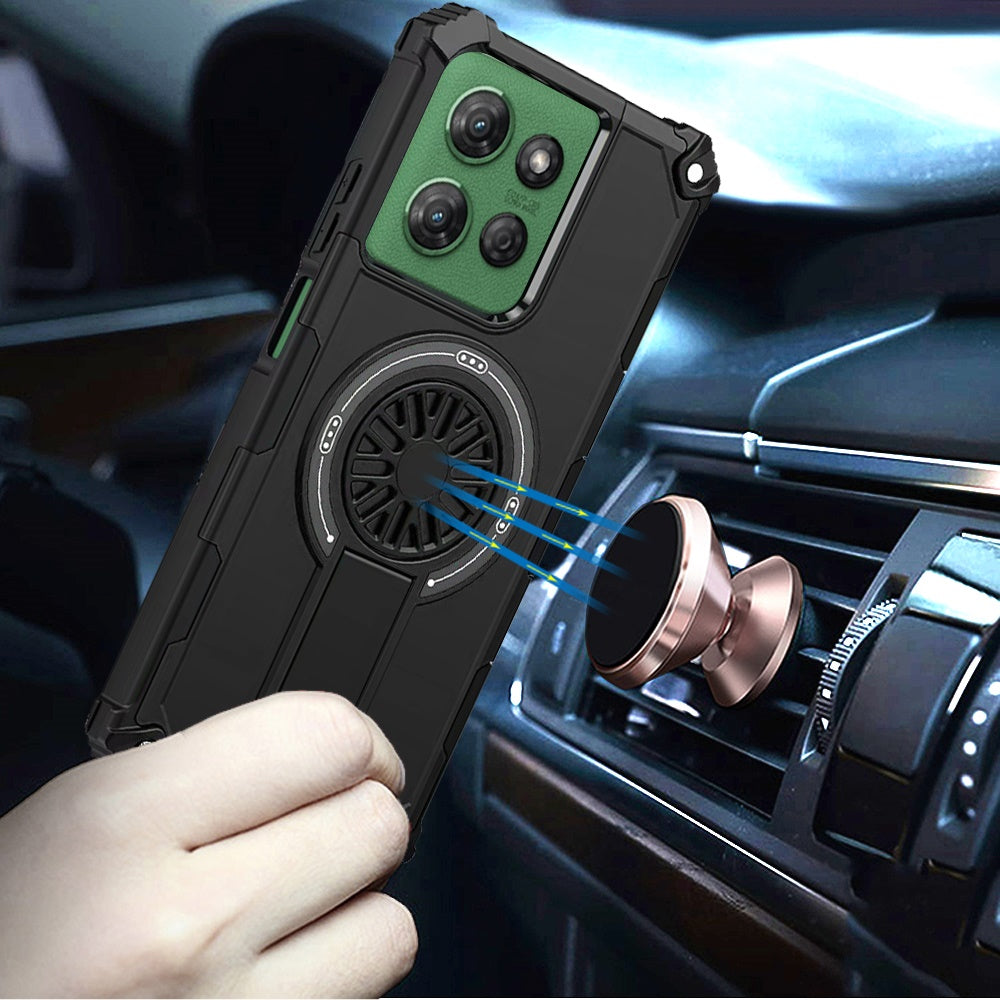 For Moto G Power 2025 Case Dual Layer Magnetic Circle Kickstand + Tempered Glass