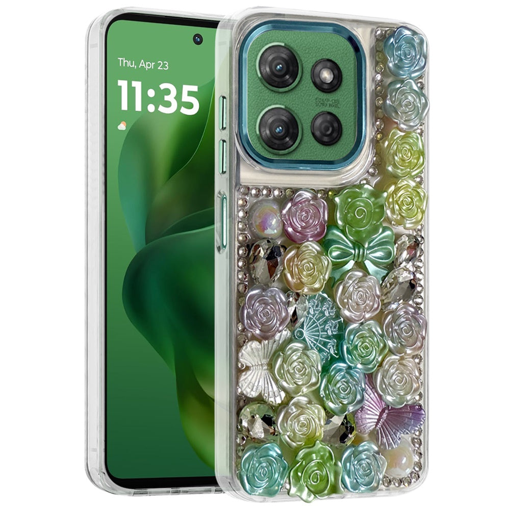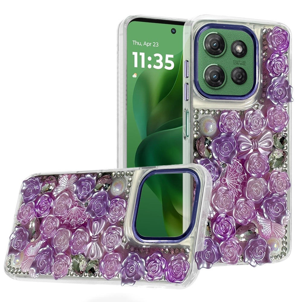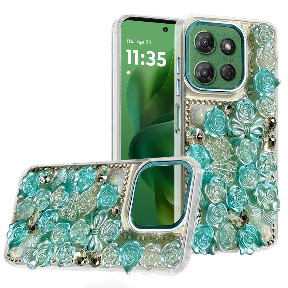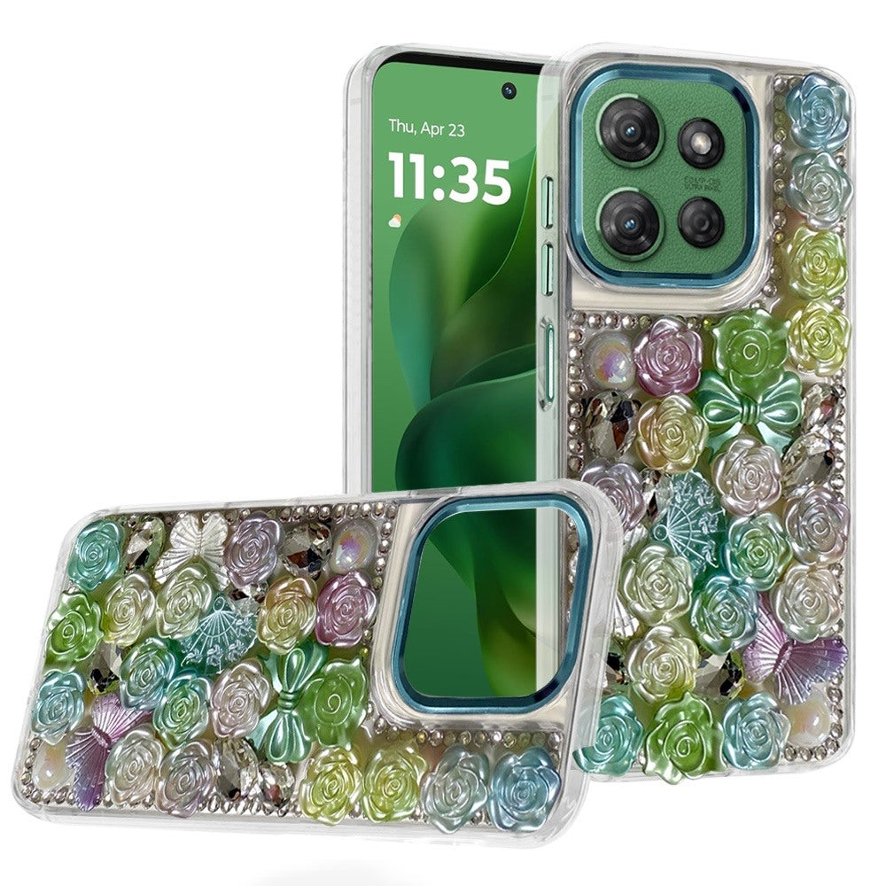 3D Full Floral Arrangement Shimmering Bling Phone Cover + Tempered Glass Screen Protector