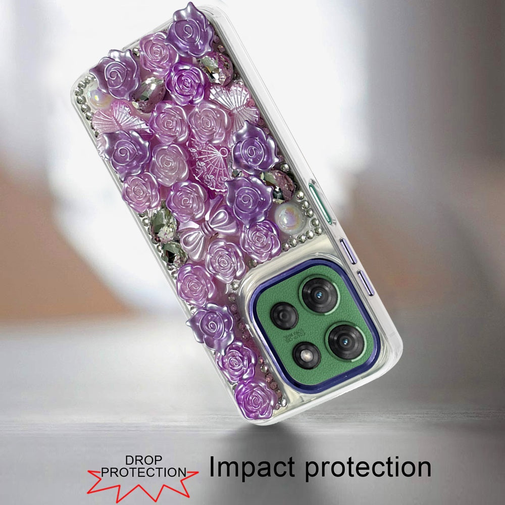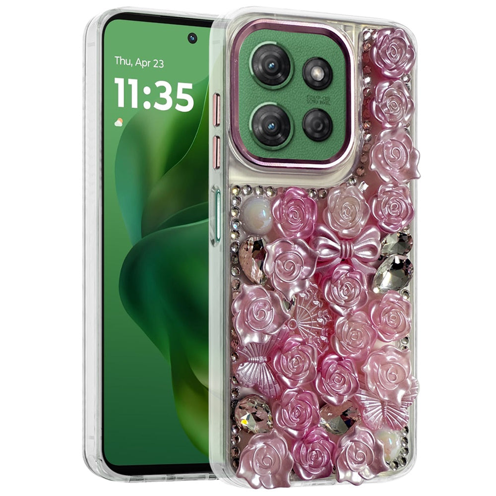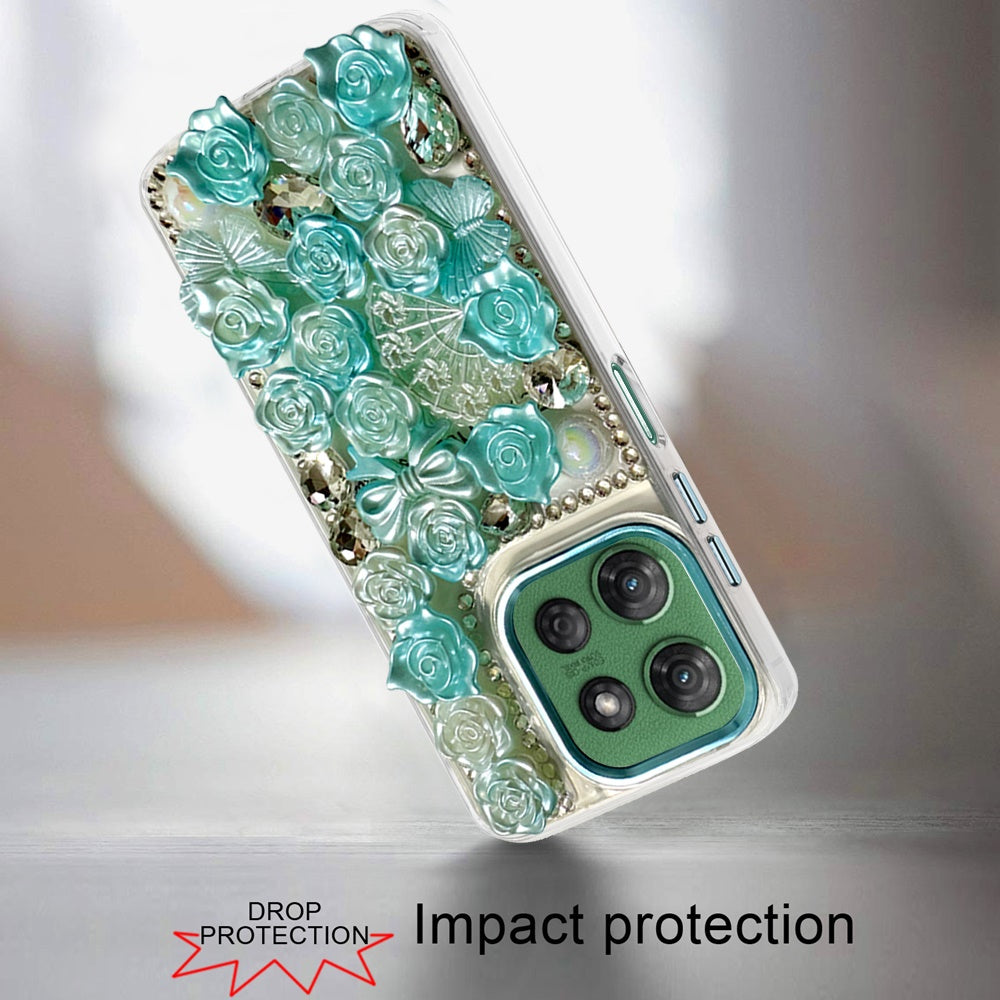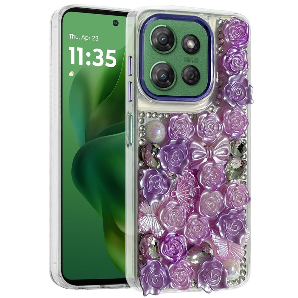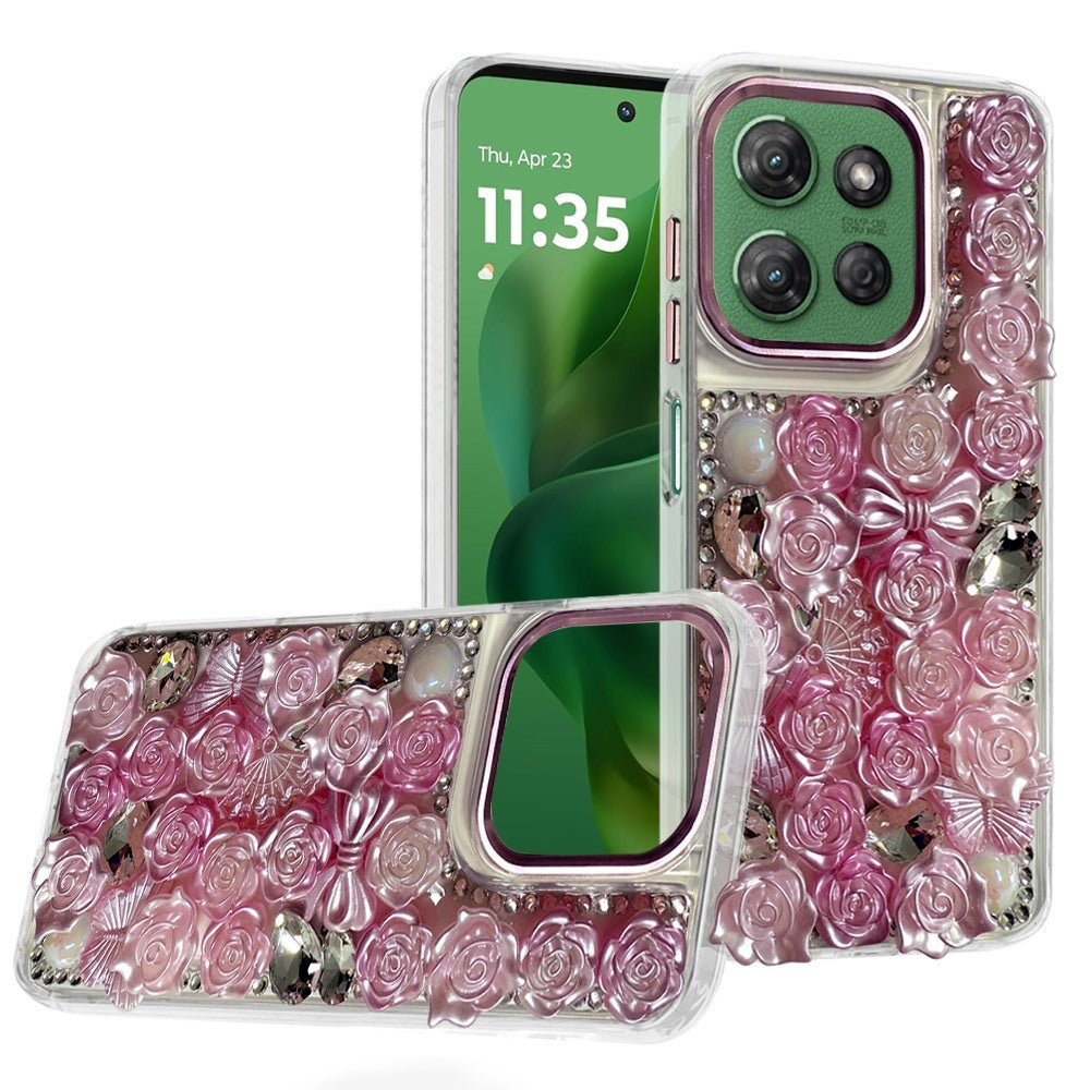 3D Full Floral Arrangement Shimmering Bling Phone Cover + Tempered Glass Screen Protector