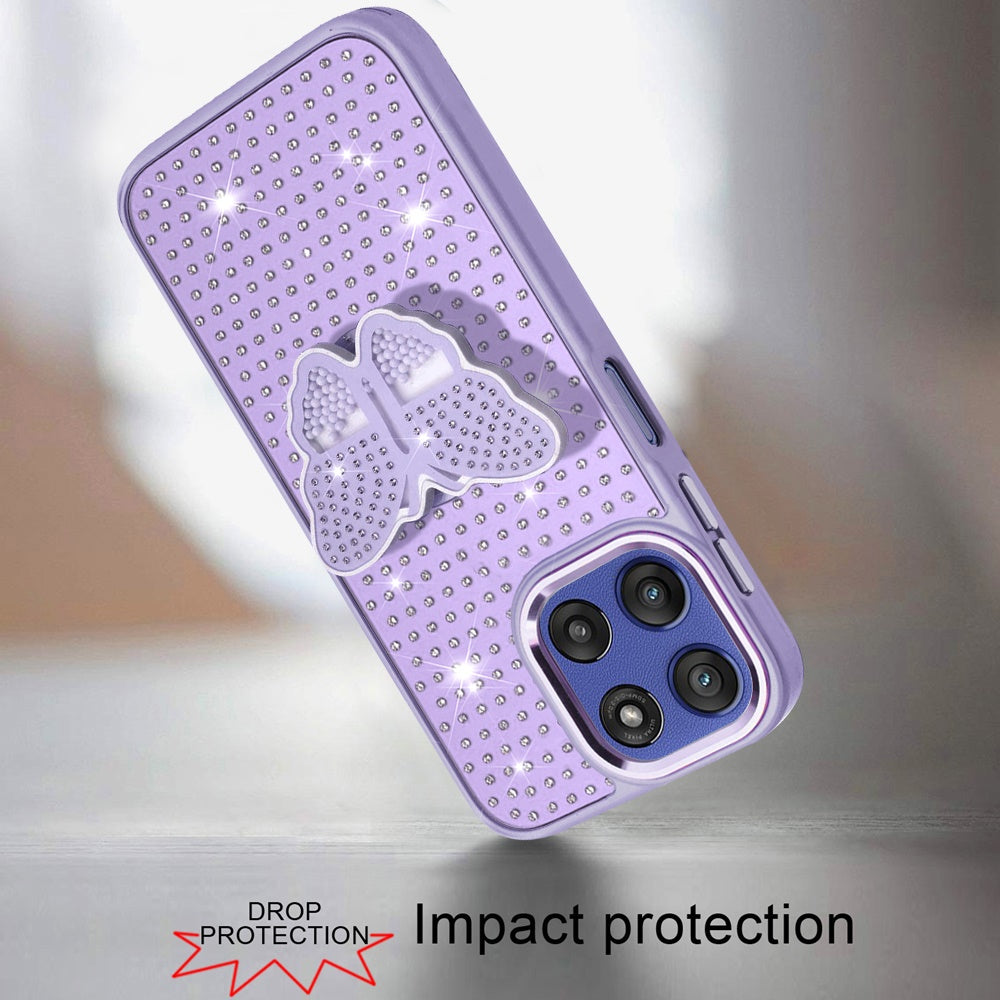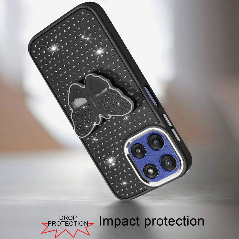 For Moto G Stylus 2025 Case Butterfly Grip Stand Faux Crystals + Tempered Glass
