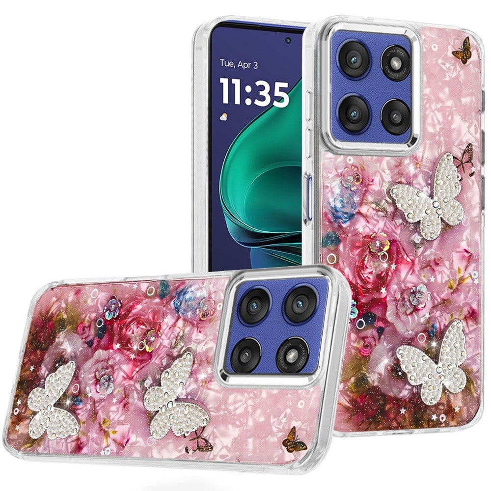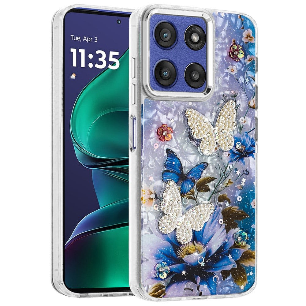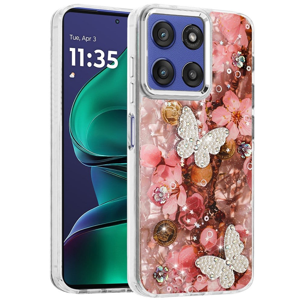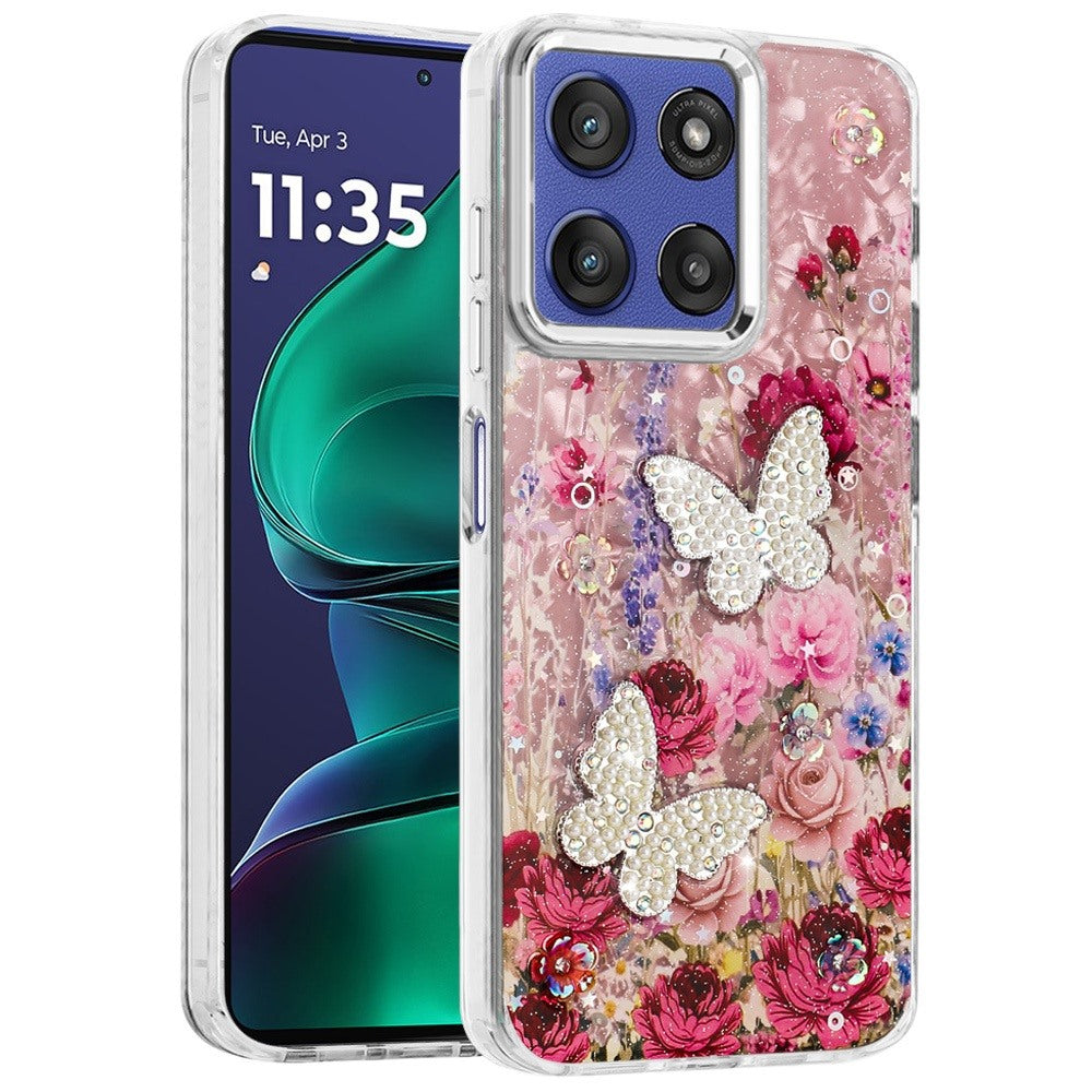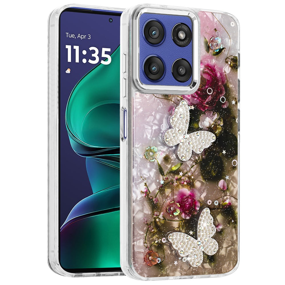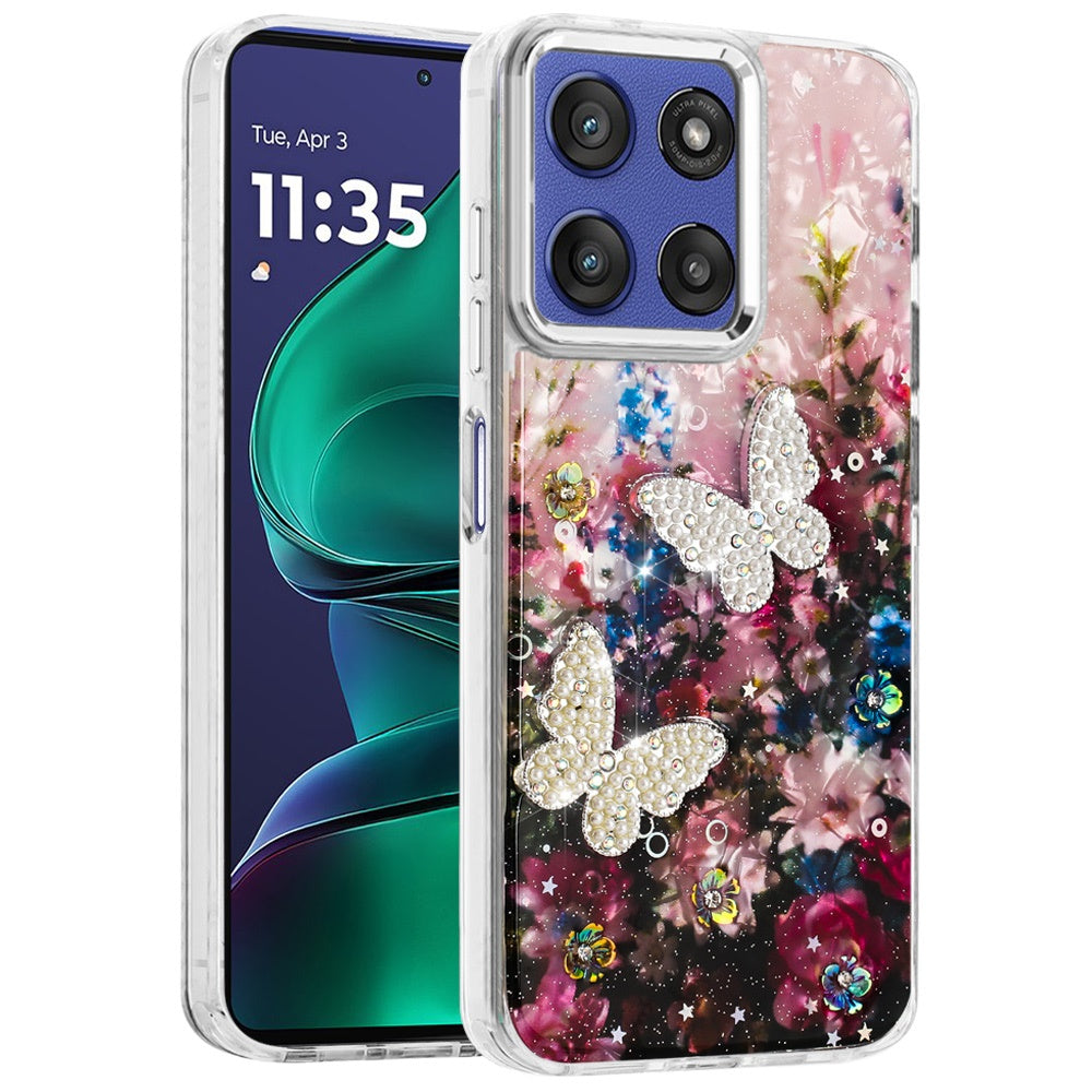 For Moto G Stylus 2025 Case Epoxy Glitter 3D Beaded Butterflies + Tempered Glass