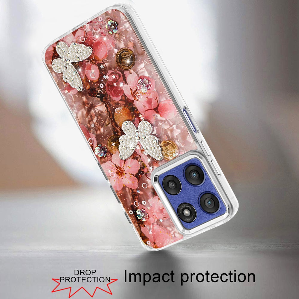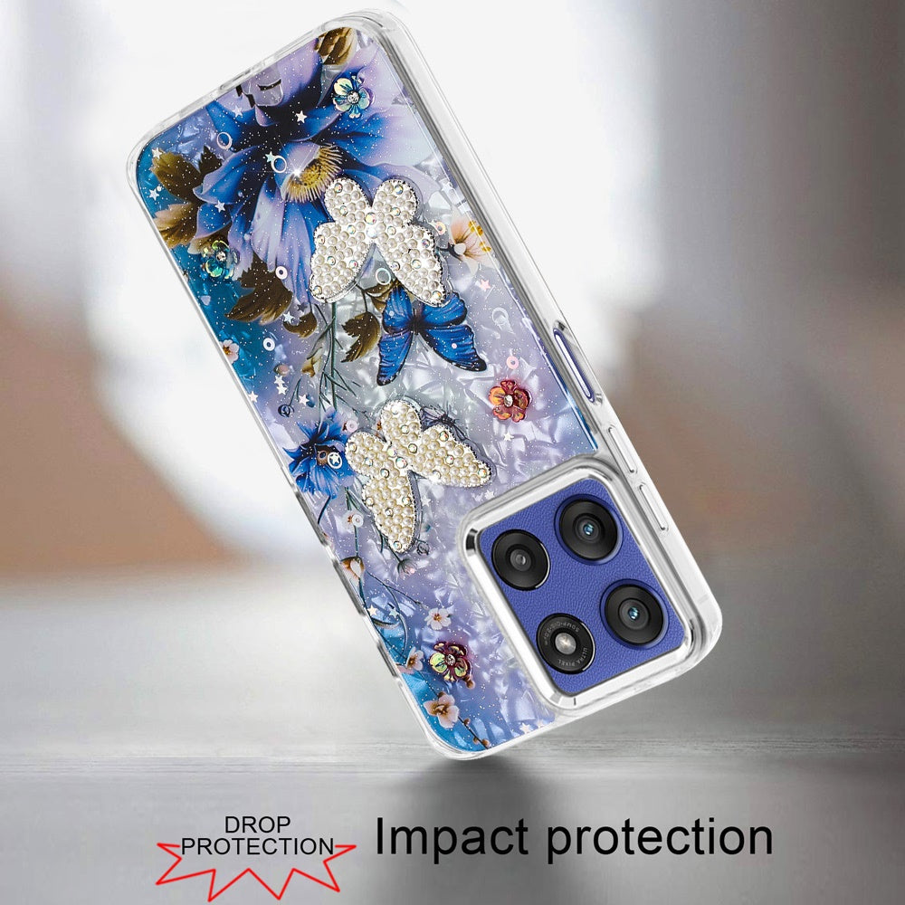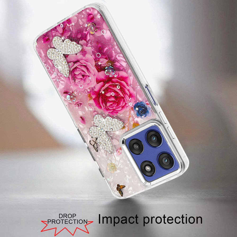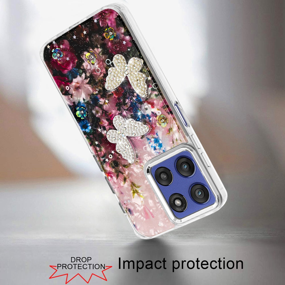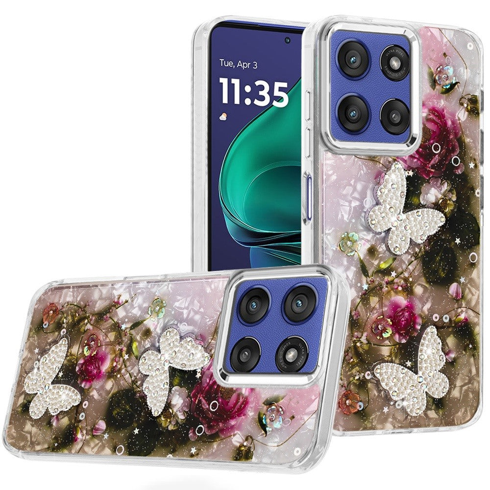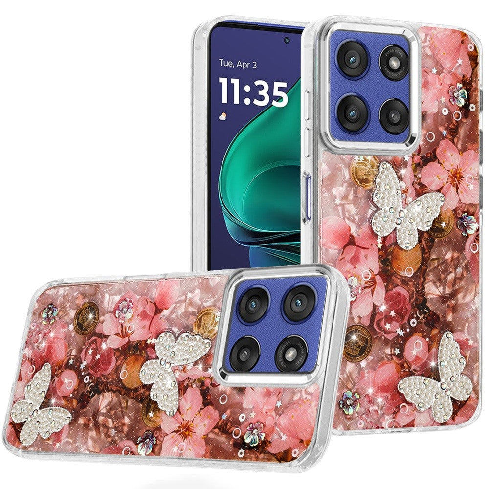 For Moto G Stylus 2025 Case Epoxy Glitter 3D Beaded Butterflies + Tempered Glass
