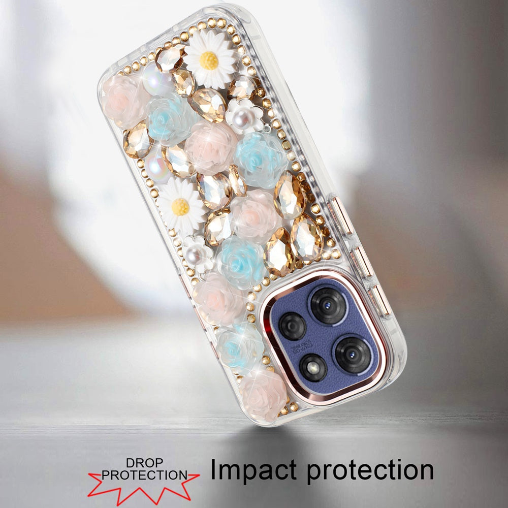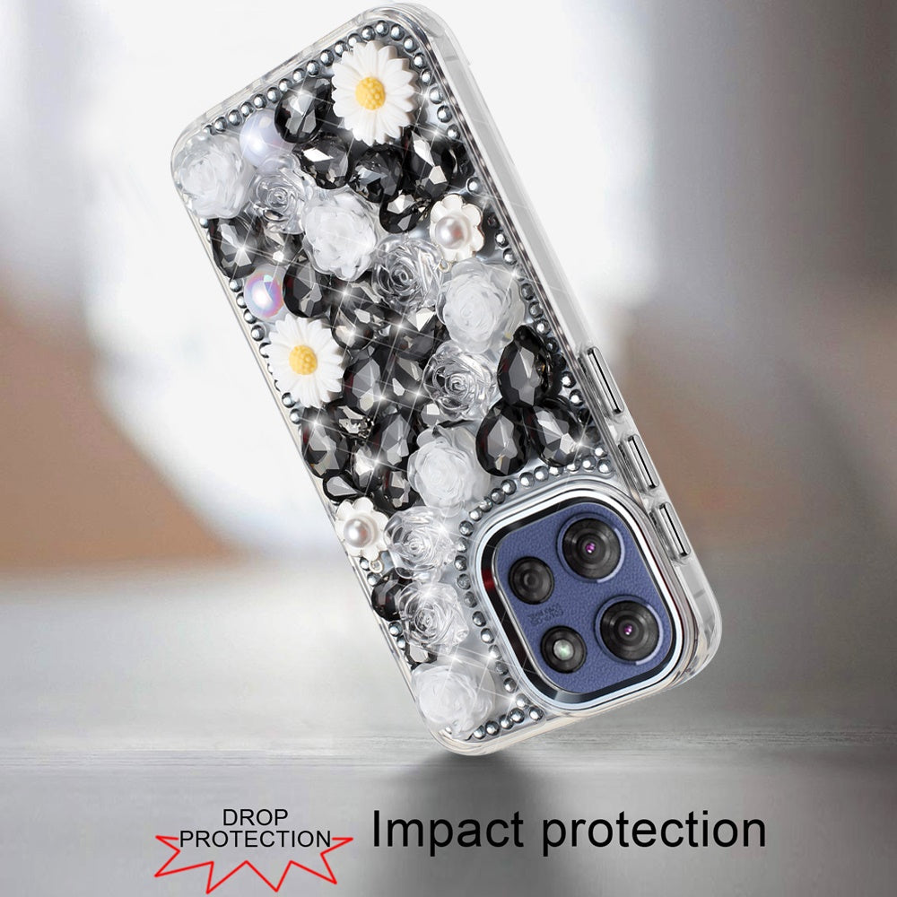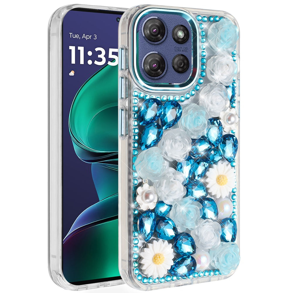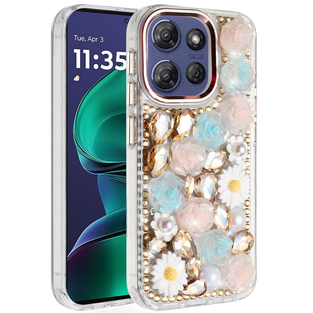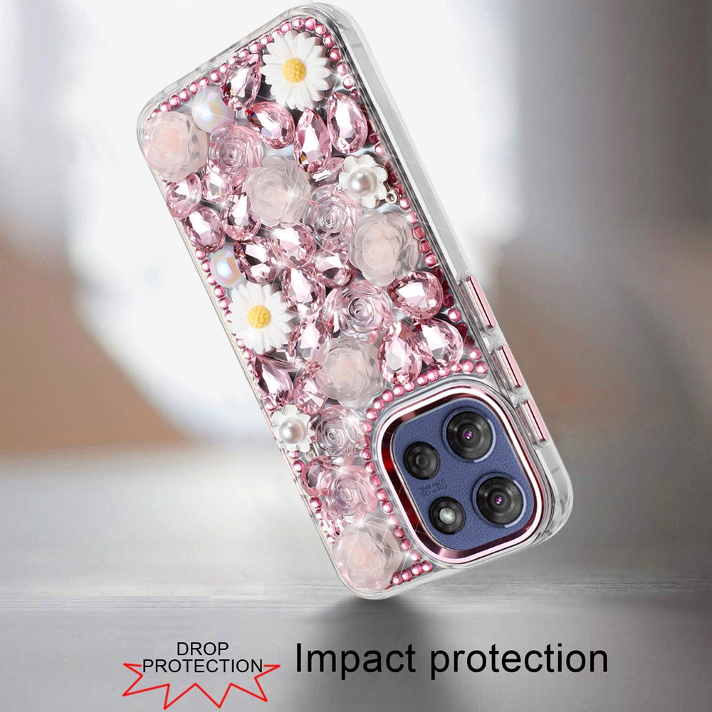 Full Bling 3D Rose Rhinestone Fashion Phone Case Cover + Tempered Glass Screen Protector