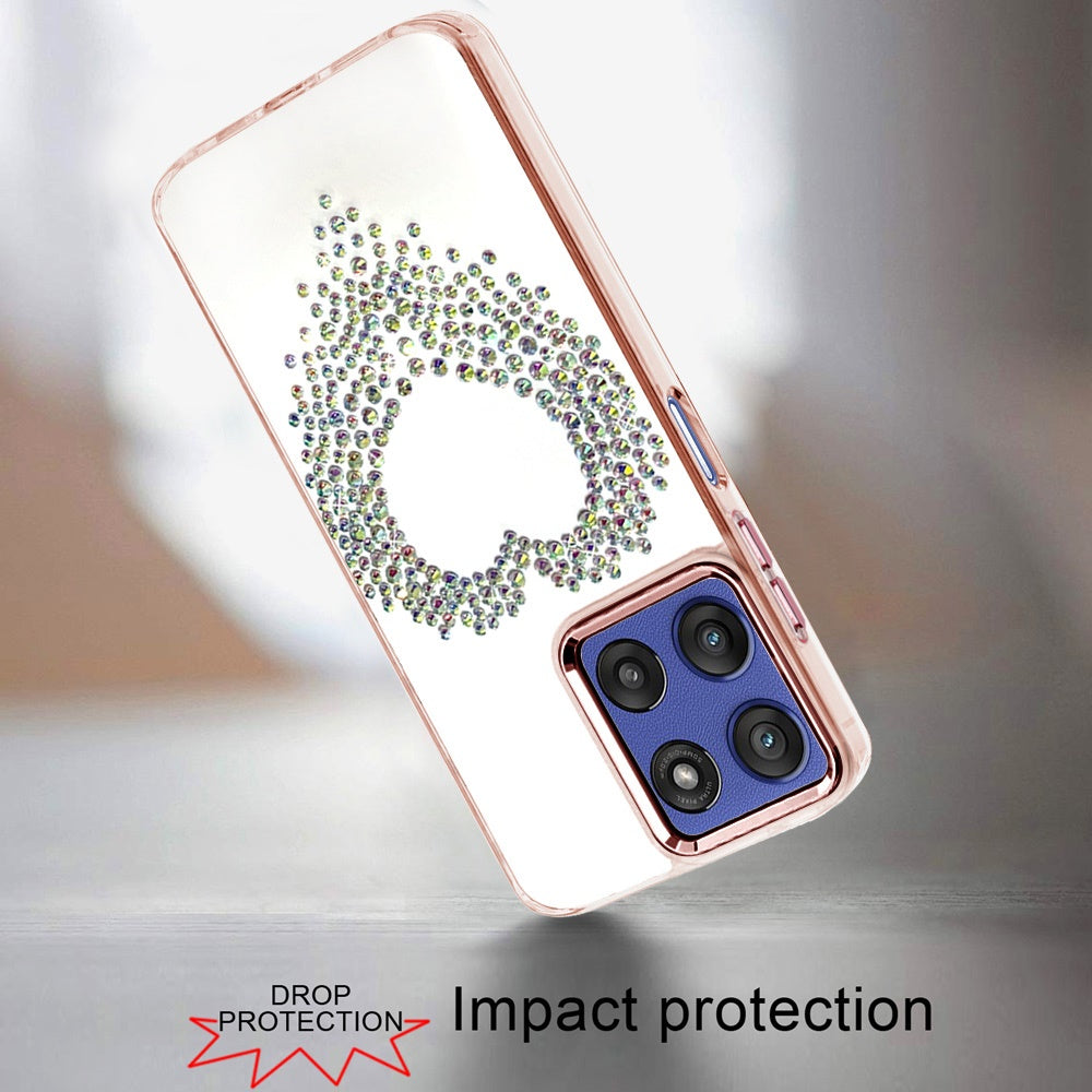 Heart Shaped Shiny Rhinestones on Clear Phone Cover + Tempered Glass Screen Protector