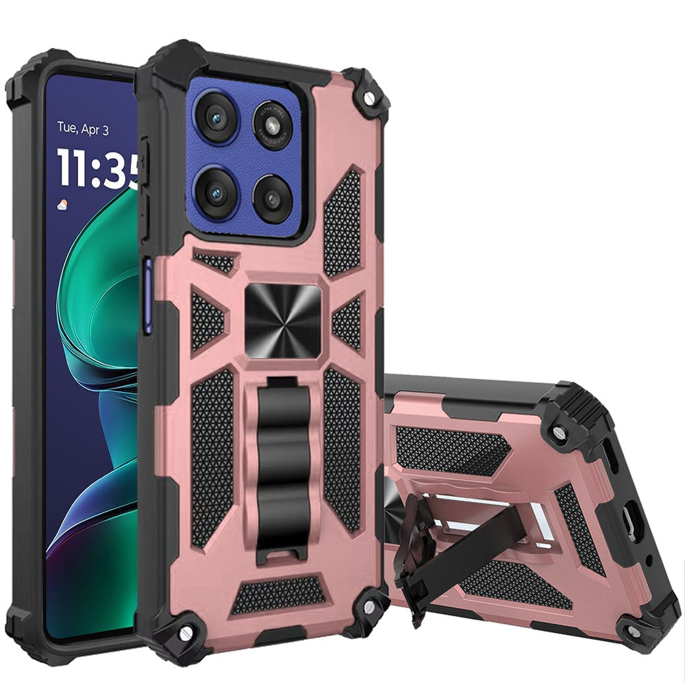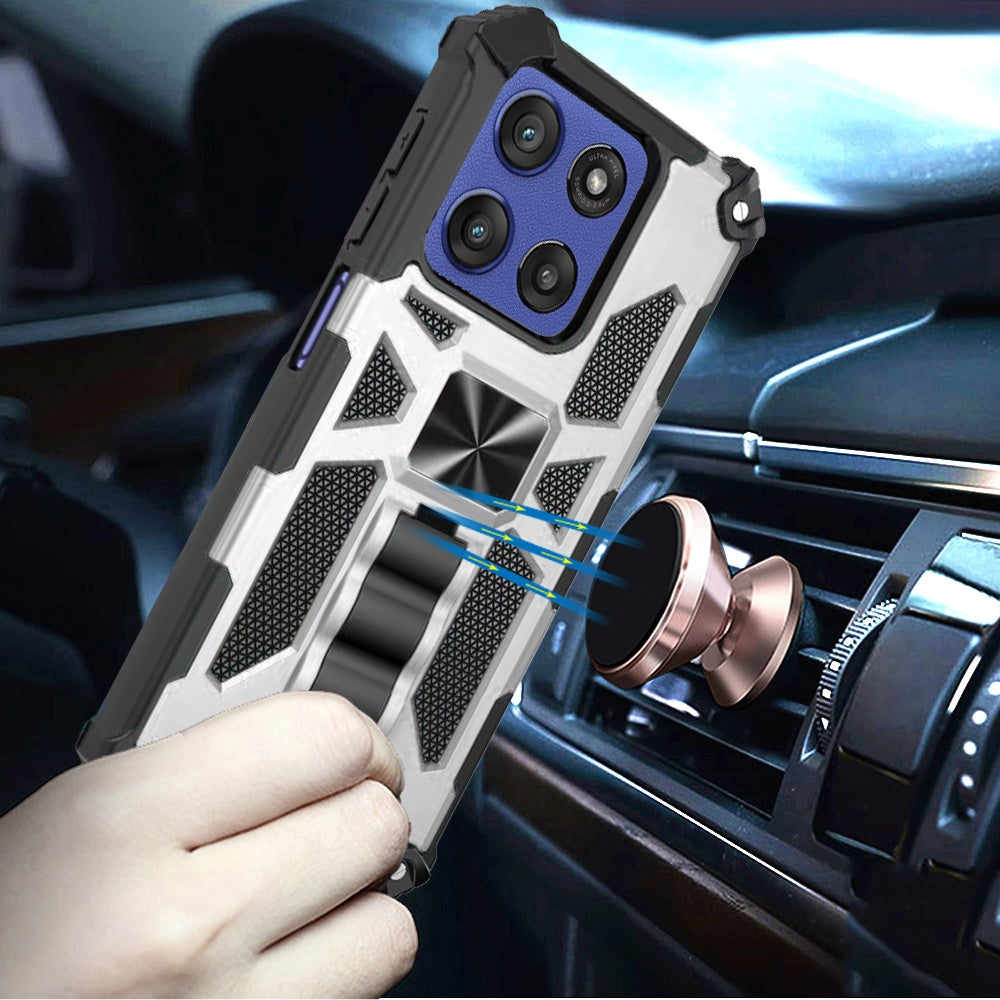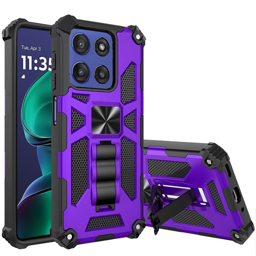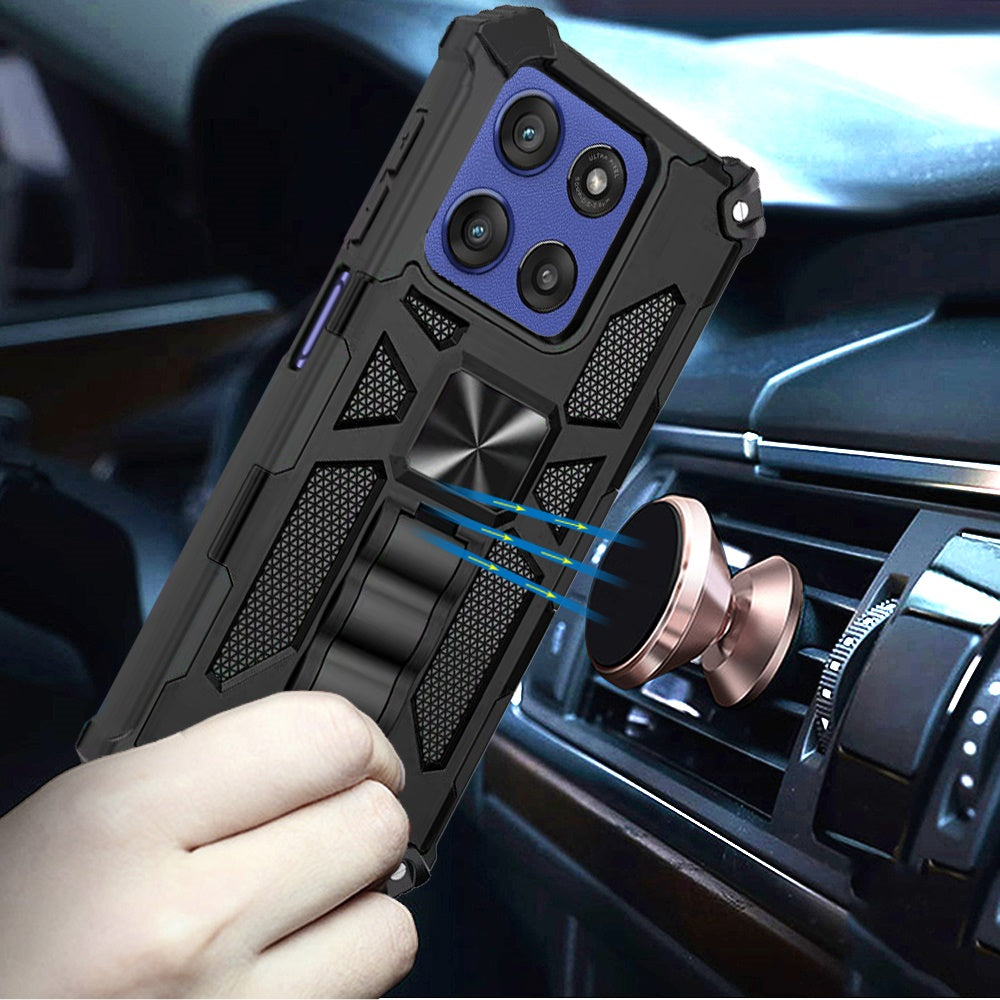 Shockproof Modern Style Case with Pop-out Stand and Metal Plate + Tempered Glass Screen Protector
