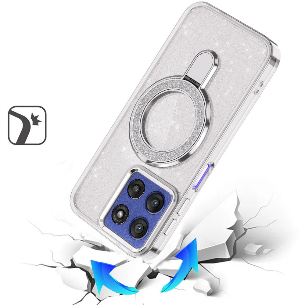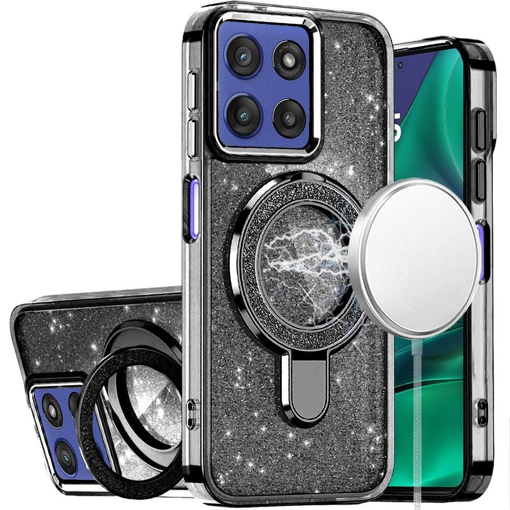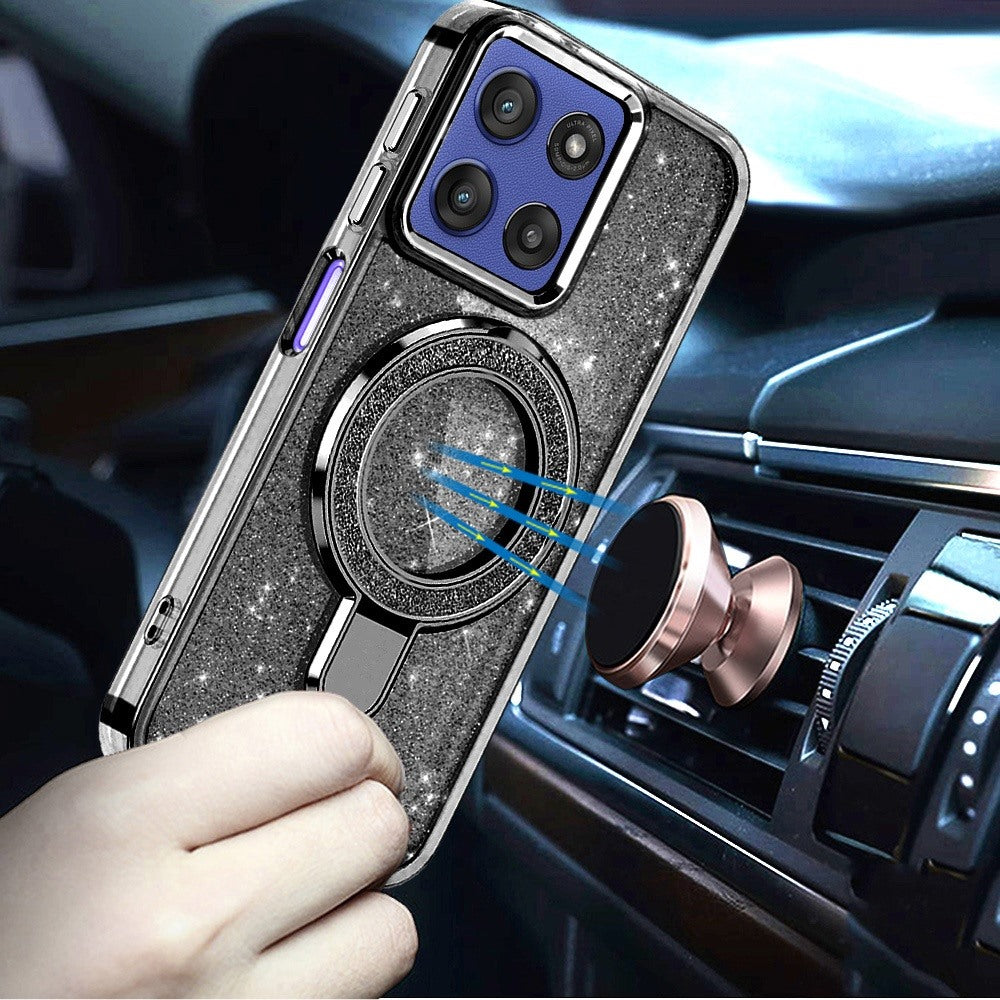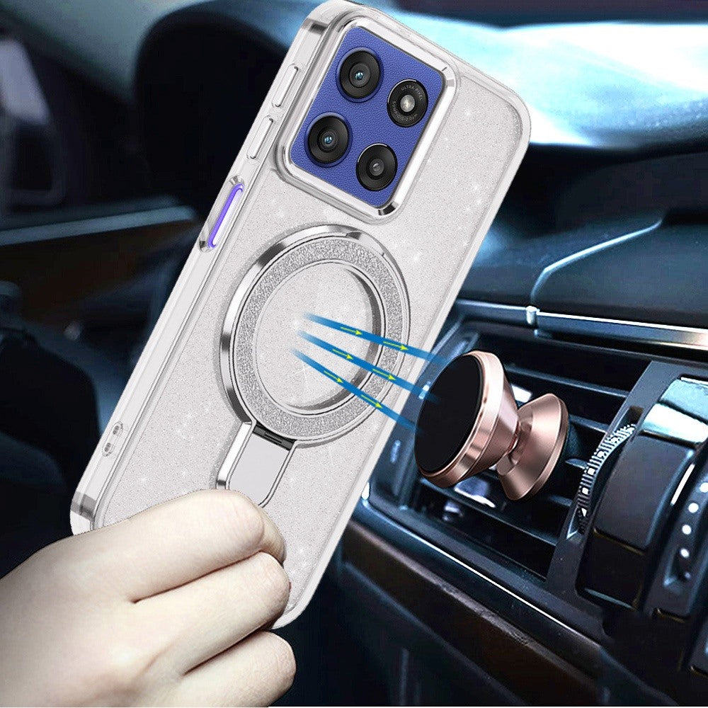 For Moto G Stylus 2025 Case Translucent Glitter Magnetic Circle + Tempered Glass