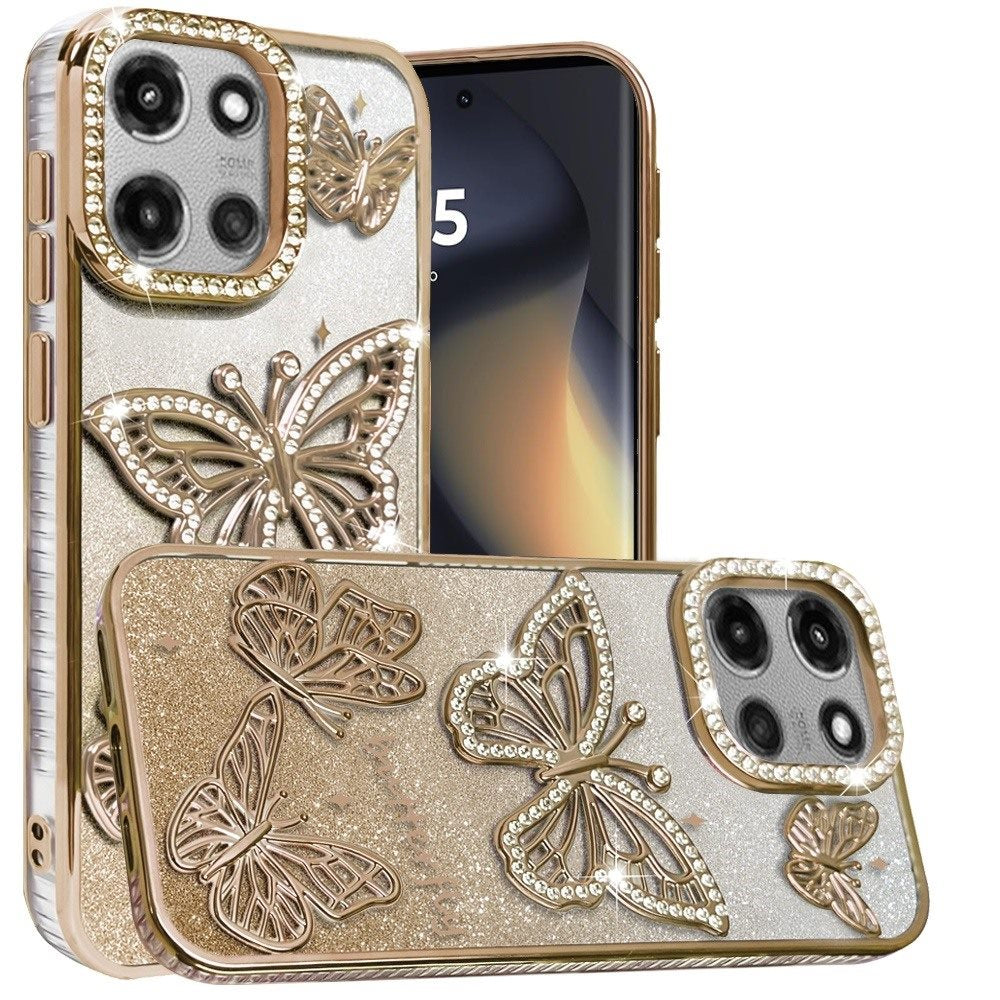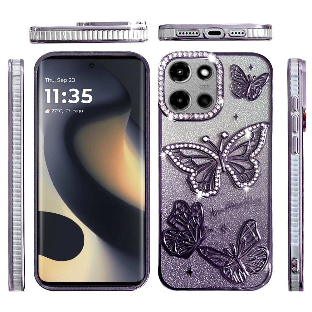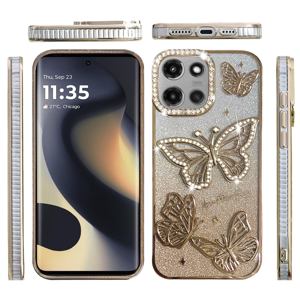 For Motorola Edge 2025 Case Bling Butterflies 3D Shimmering Glitter Phone Cover