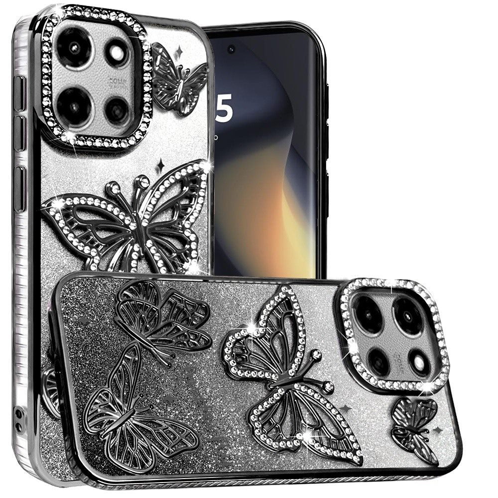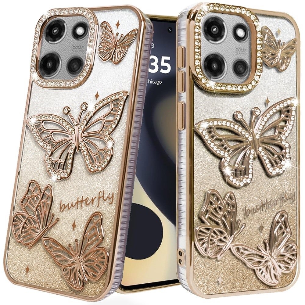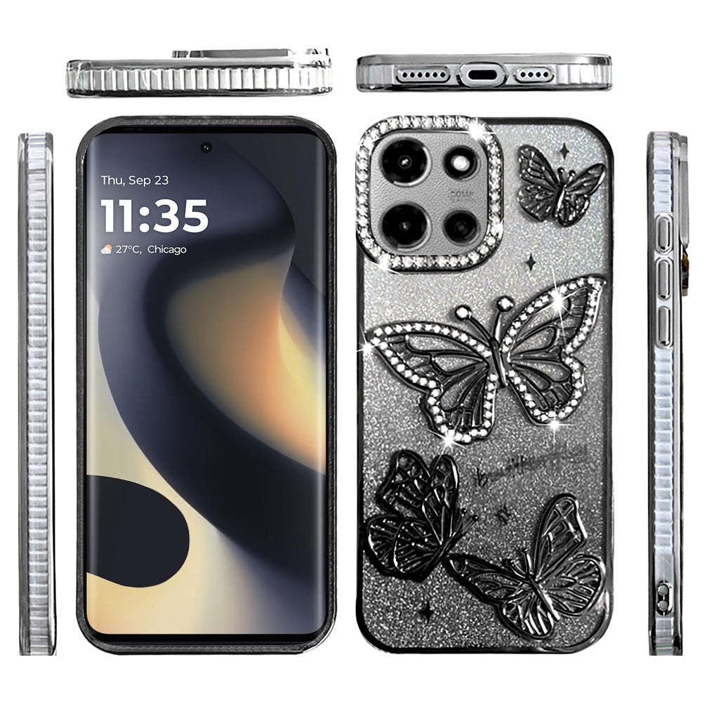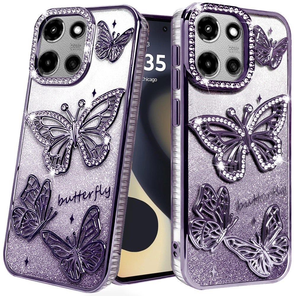 For Motorola Edge 2025 Case Bling Butterflies 3D Shimmering Glitter Phone Cover