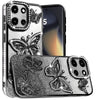 Bling Butterflies 3D Rhinestone Glitter Phone Cover with Tempered Glass Screen Protector
