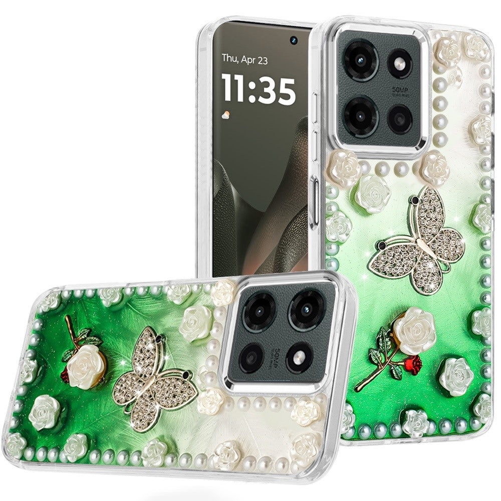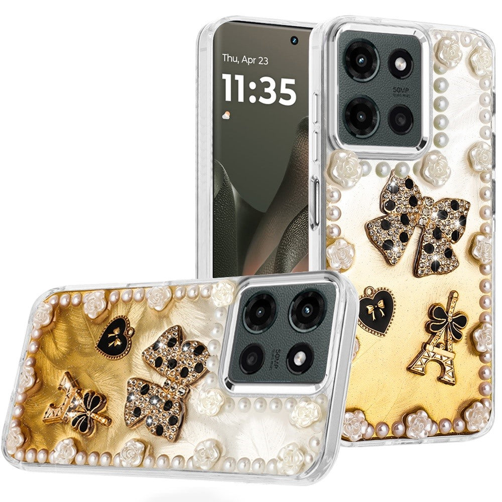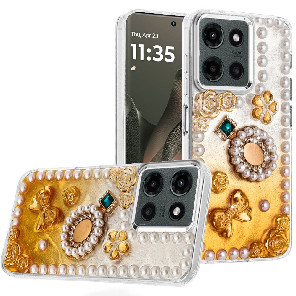 Floral and Faux Pearl Trim with 3D bling Charms Screen Protector