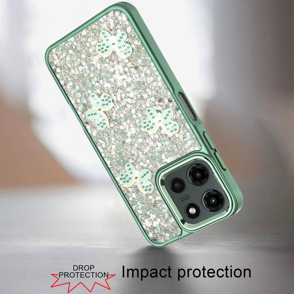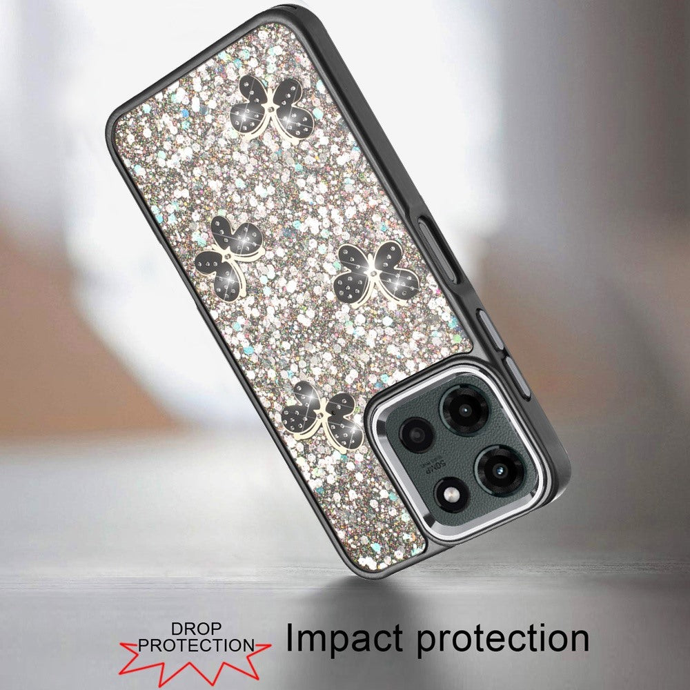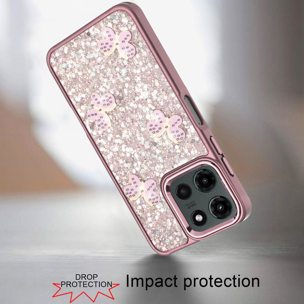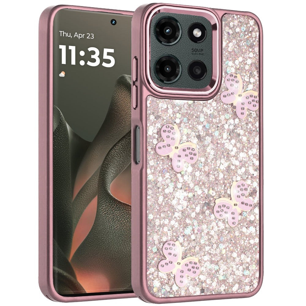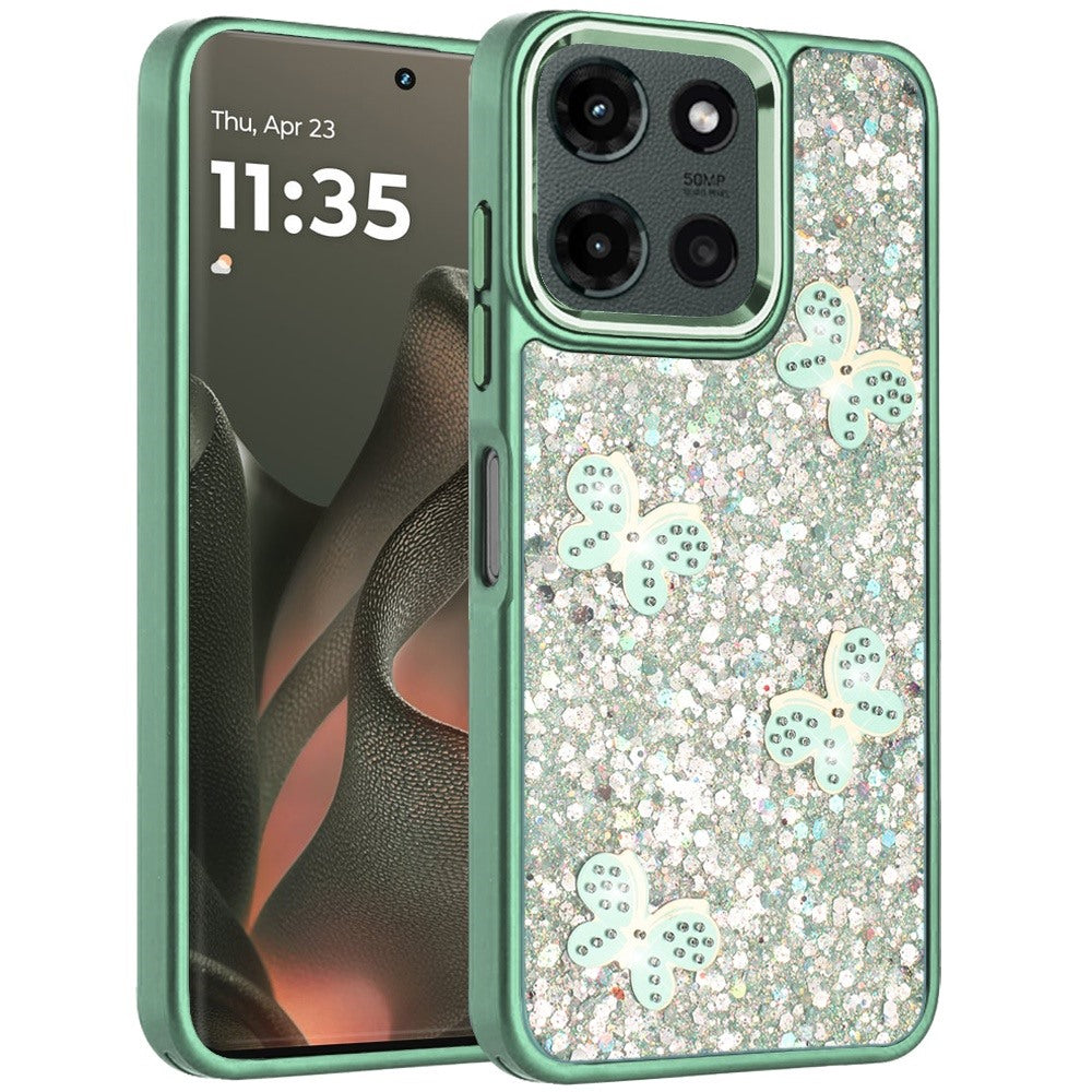 Full Glitter Flakes Phone Case with Cute Butterflies and Metallic Trim Screen Protector