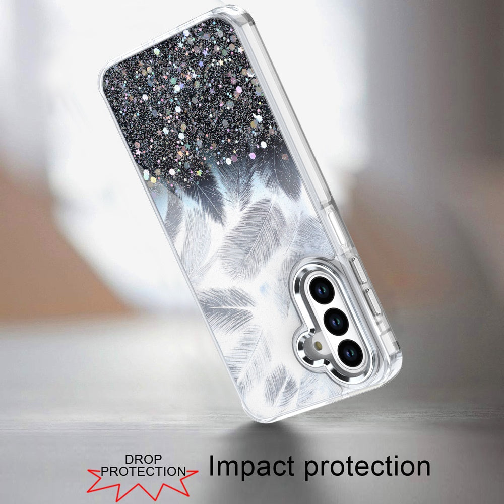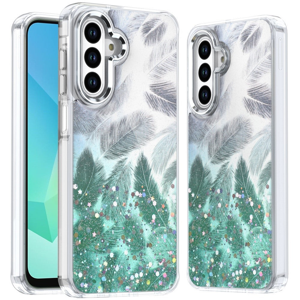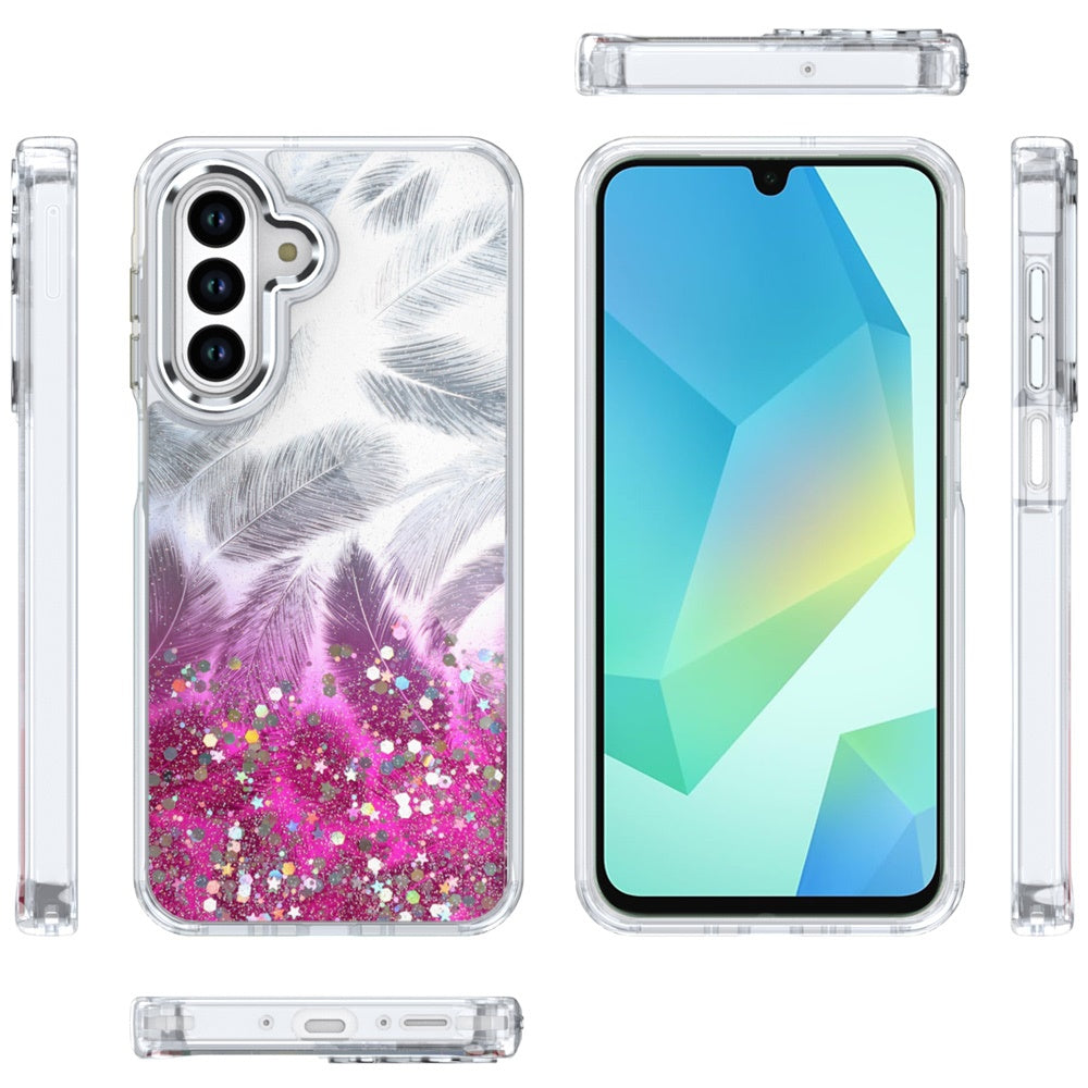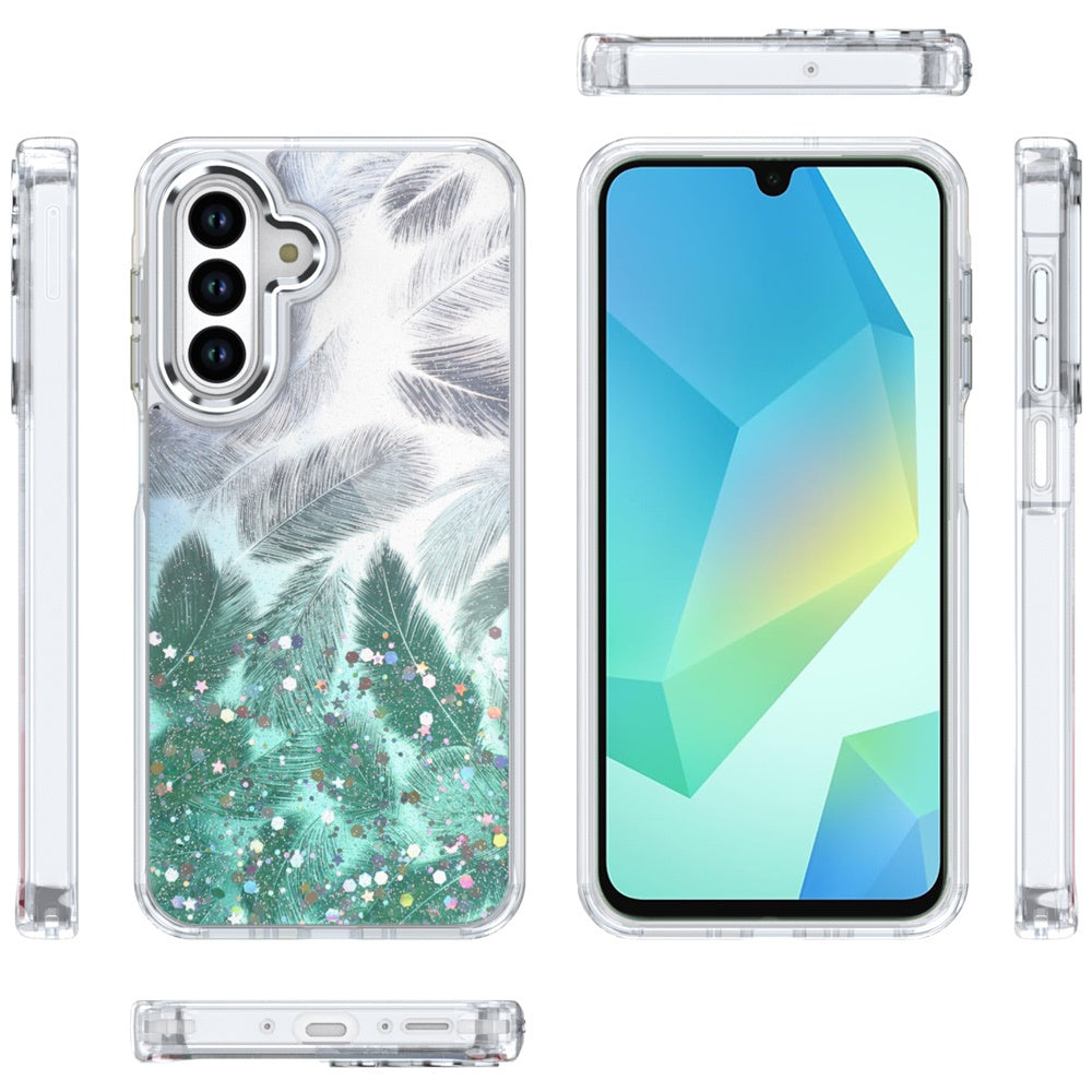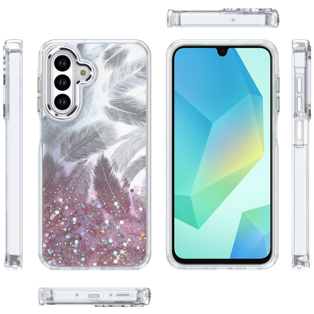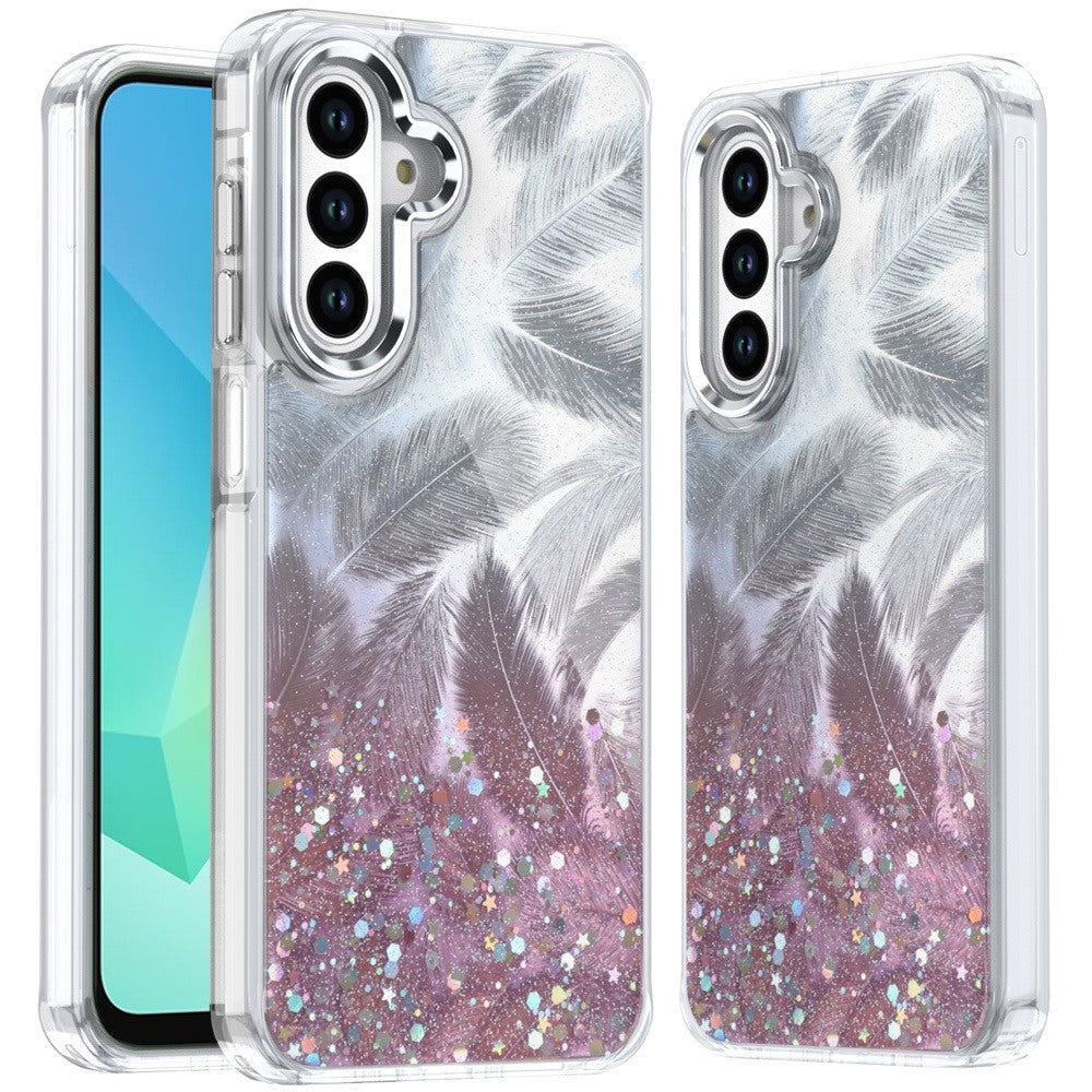 For Samsung A16 5G Case Feathers Glitter Epoxy Cute Phone Cover + Tempered Glass