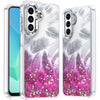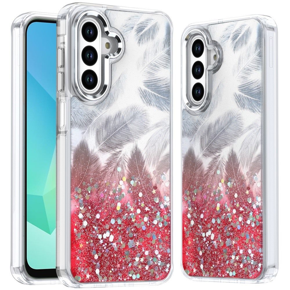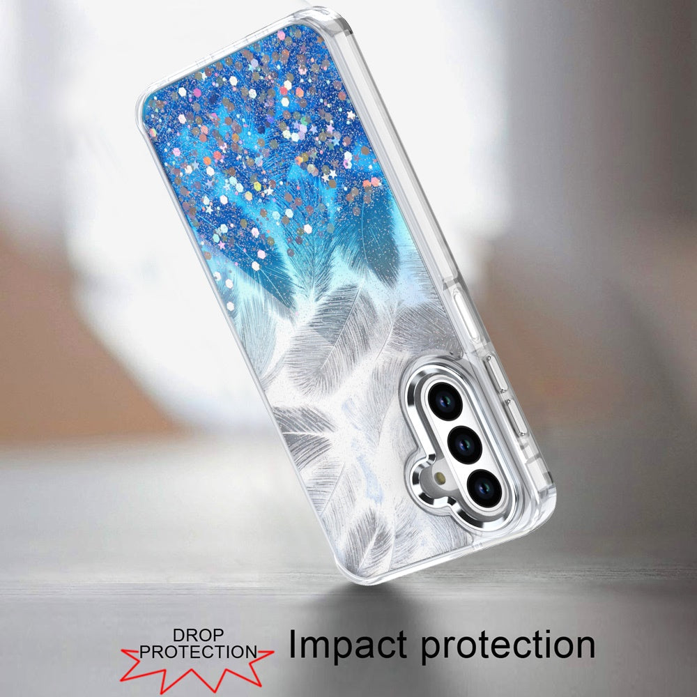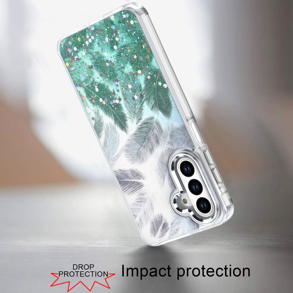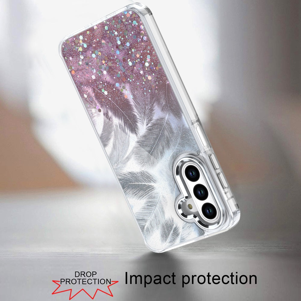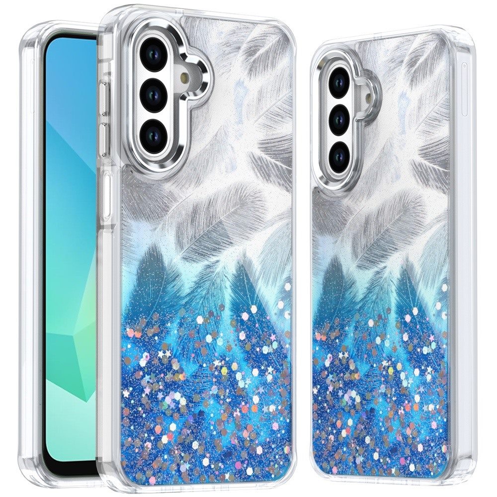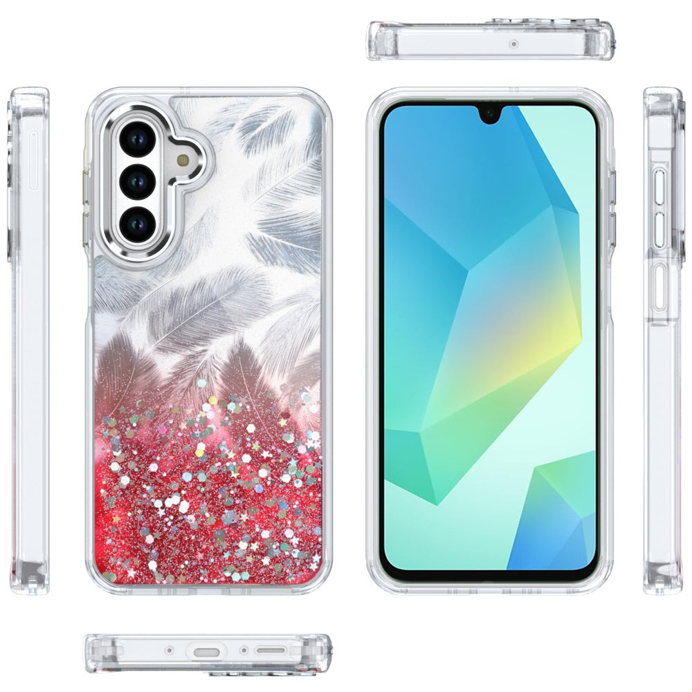 For Samsung A16 5G Case Feathers Glitter Epoxy Cute Phone Cover + Tempered Glass