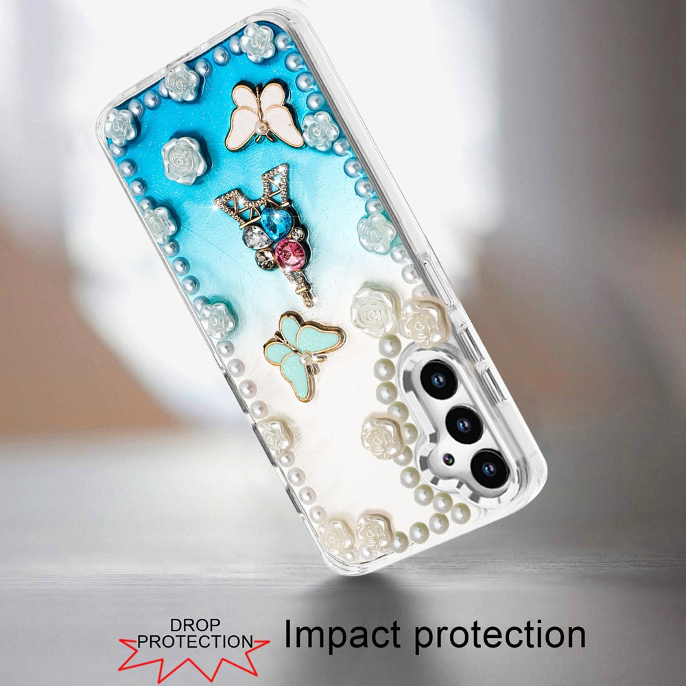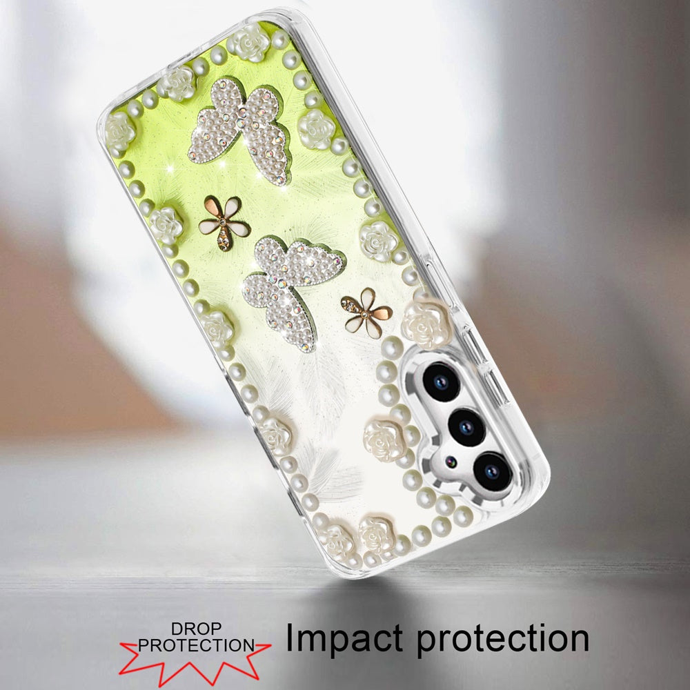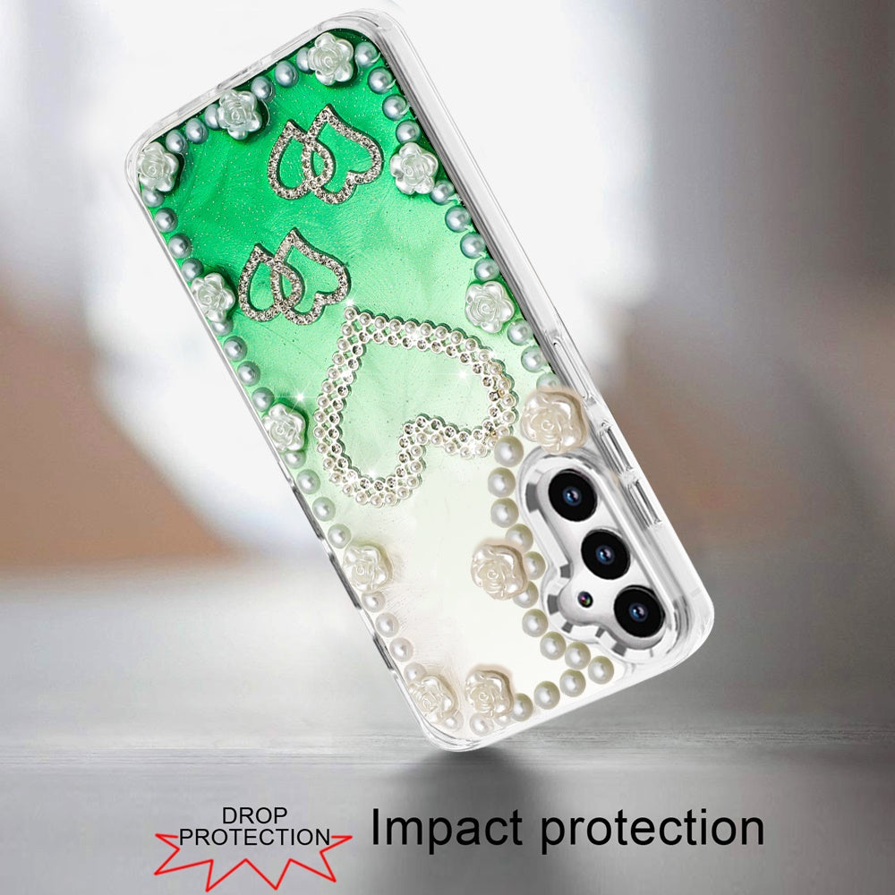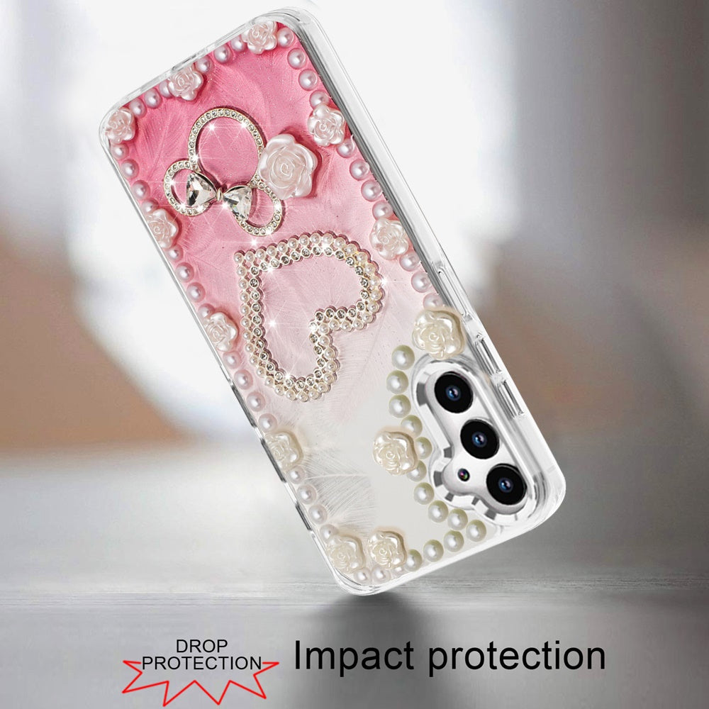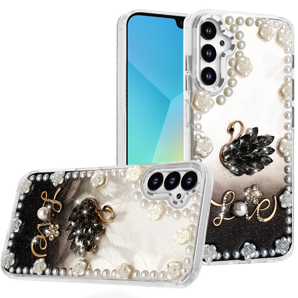 For Samsung A16 5G Case Floral and Faux Pearl Trim w/ 3D Charms + Tempered Glass