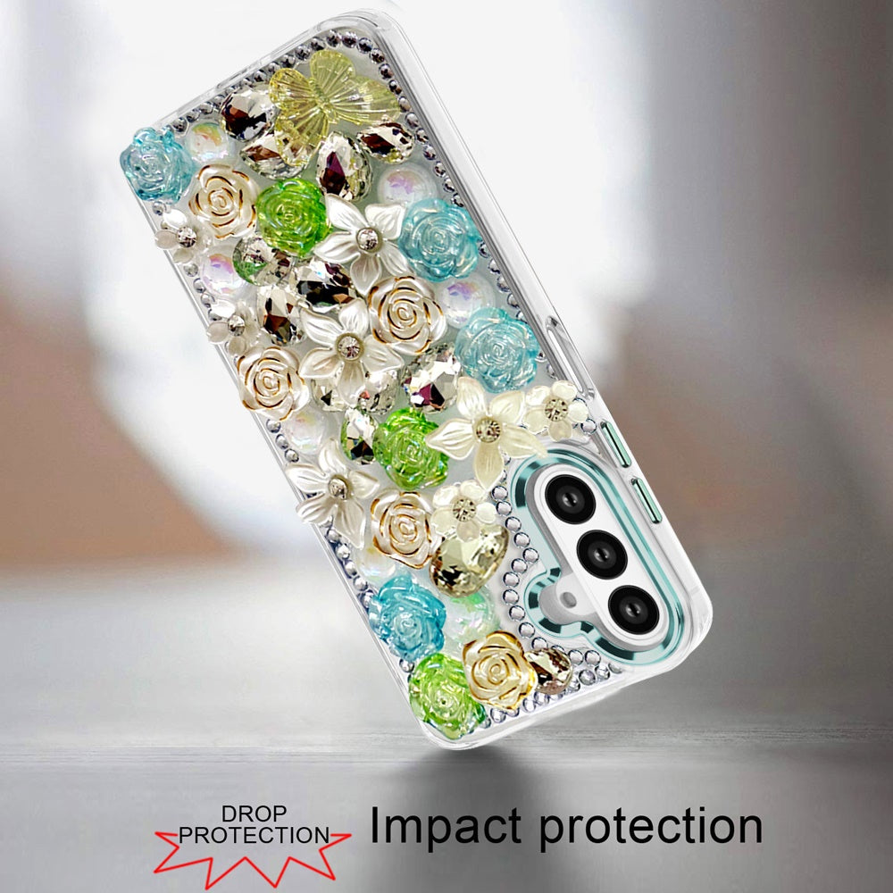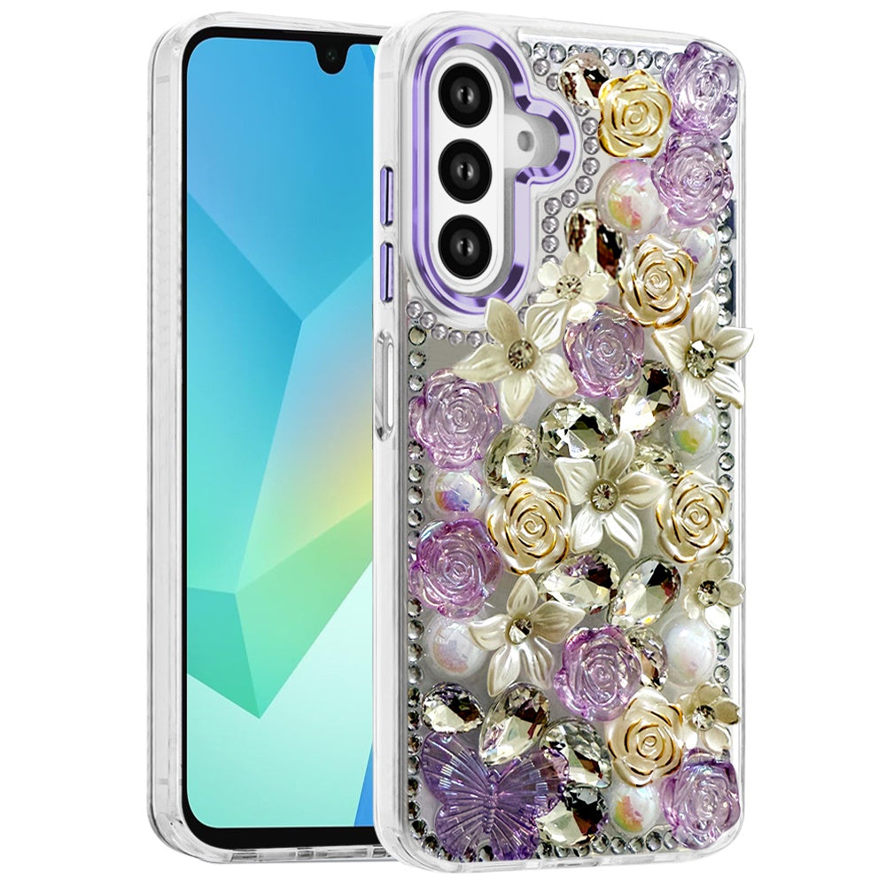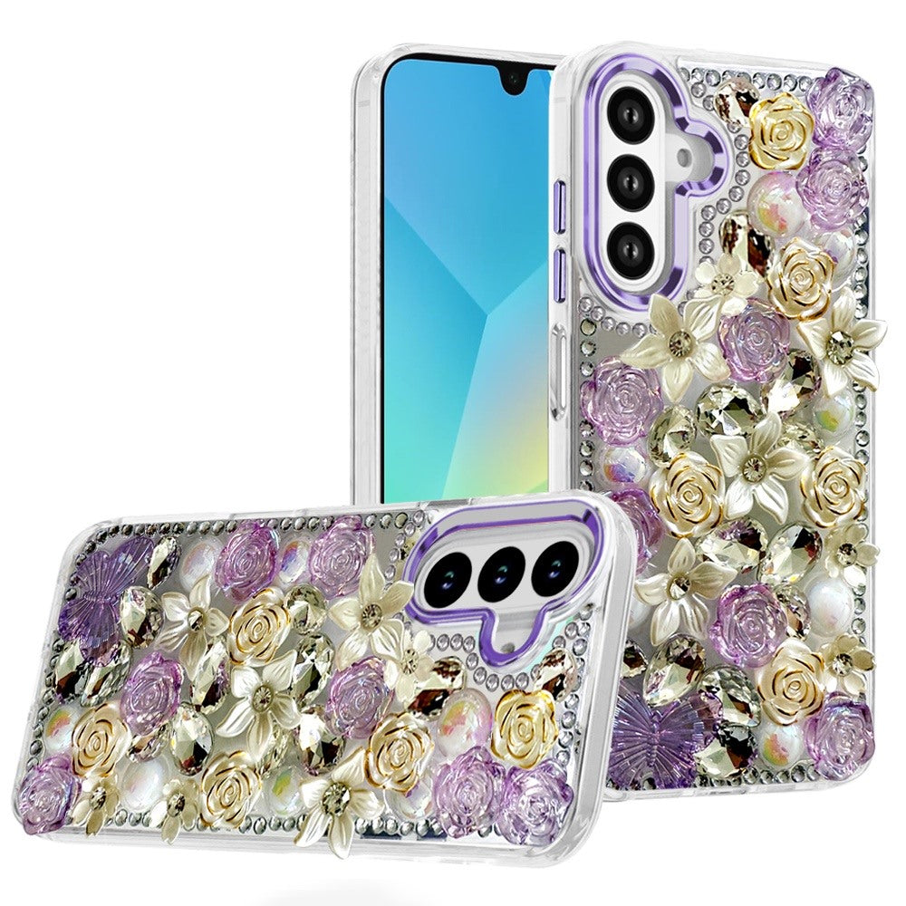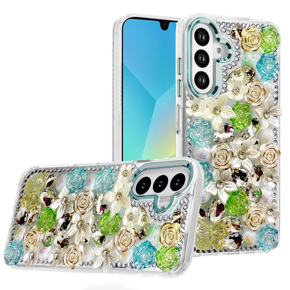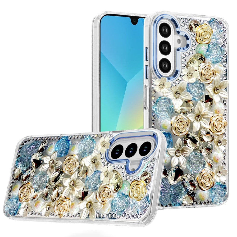 For Samsung A16 5G Case Floral Arrangement 3D Bling Phone Cover + Tempered Glass