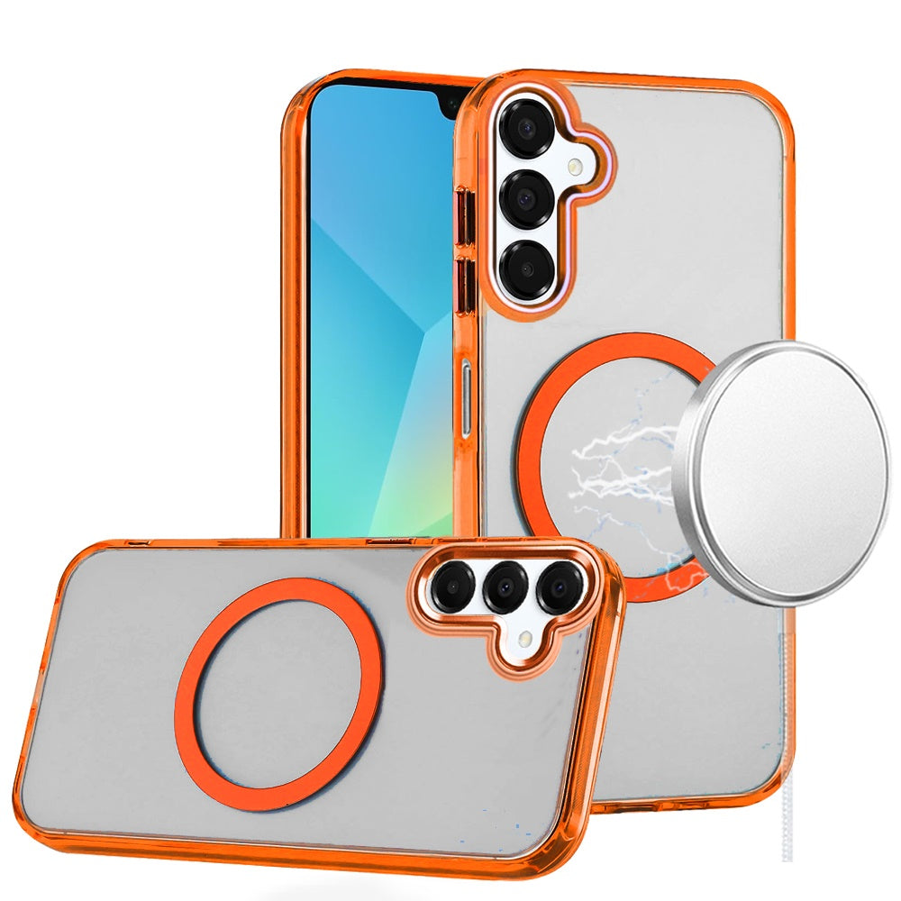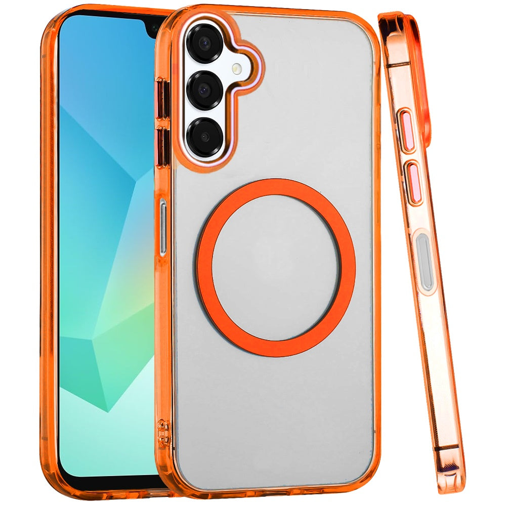 Trans-Clear Metal Buttons Magnetic Circle Phone Case + Tempered Glass Screen Protector