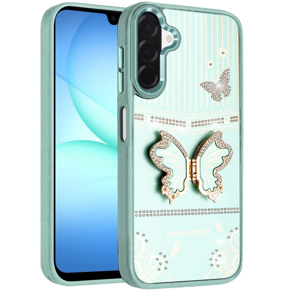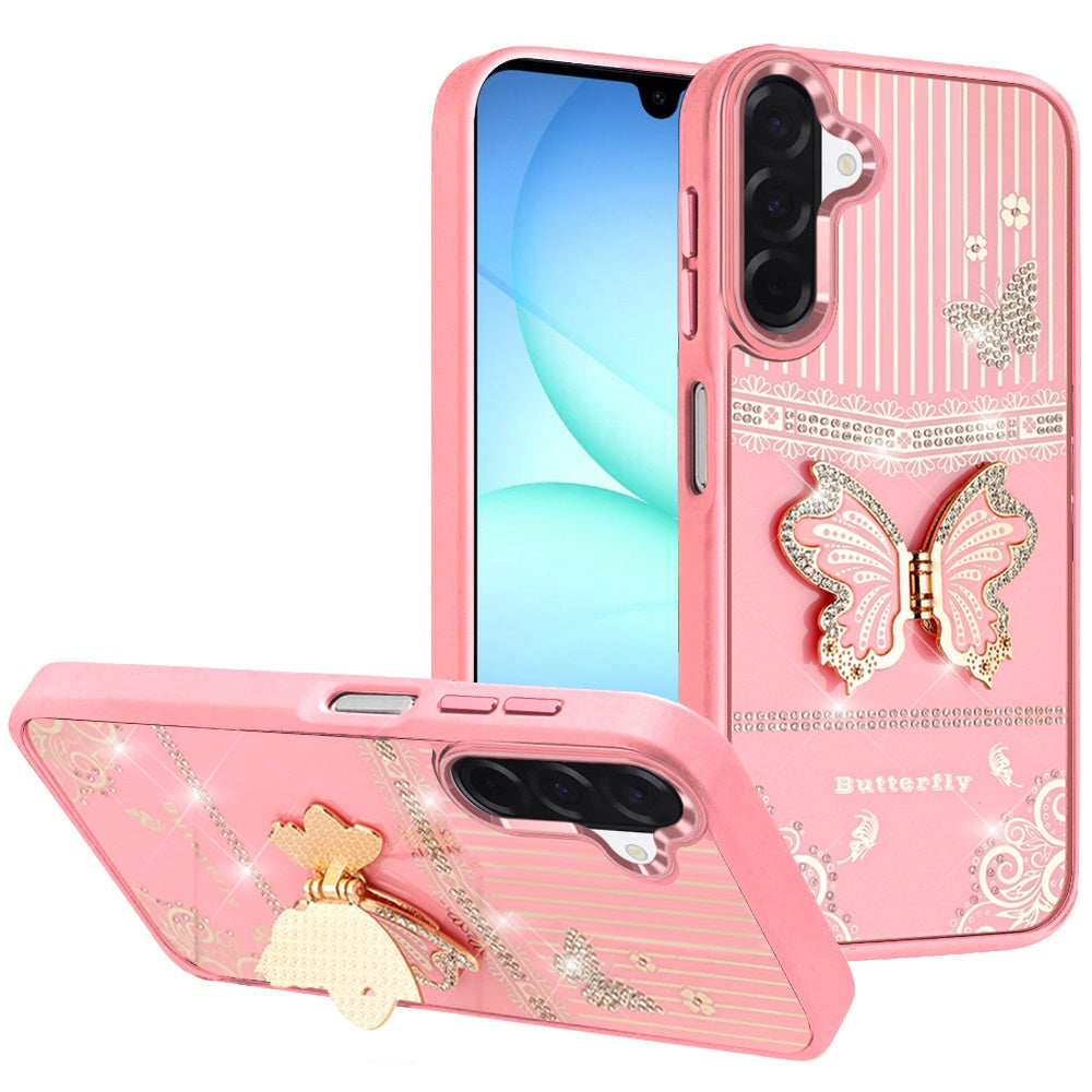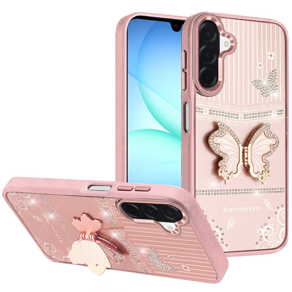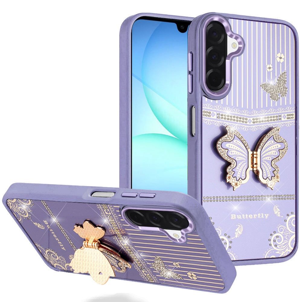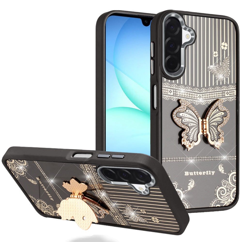 For Samsung A17 5G Case 3D Butterfly Bling Charm Stand Cover + Tempered Glass
