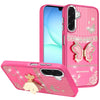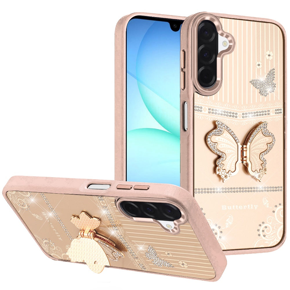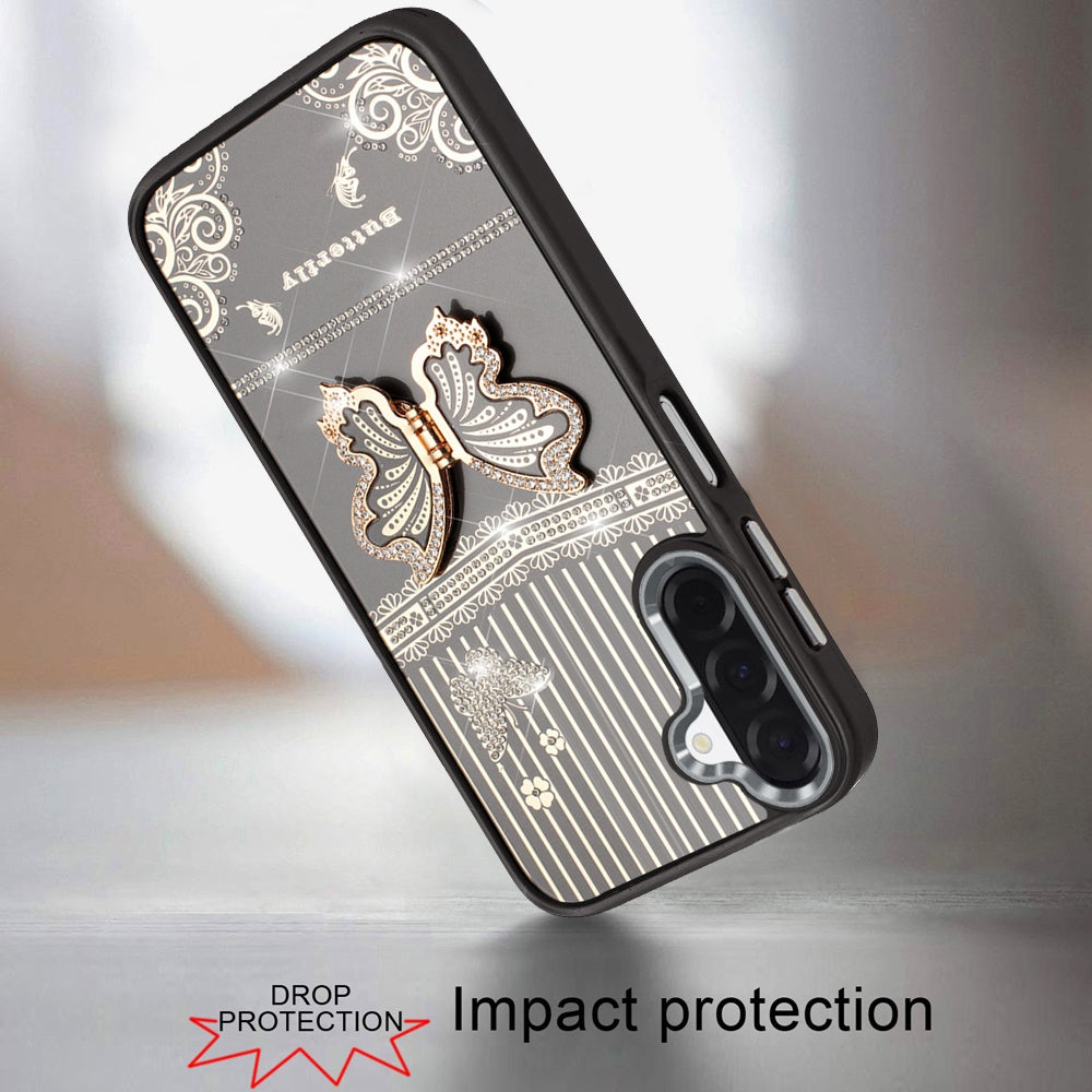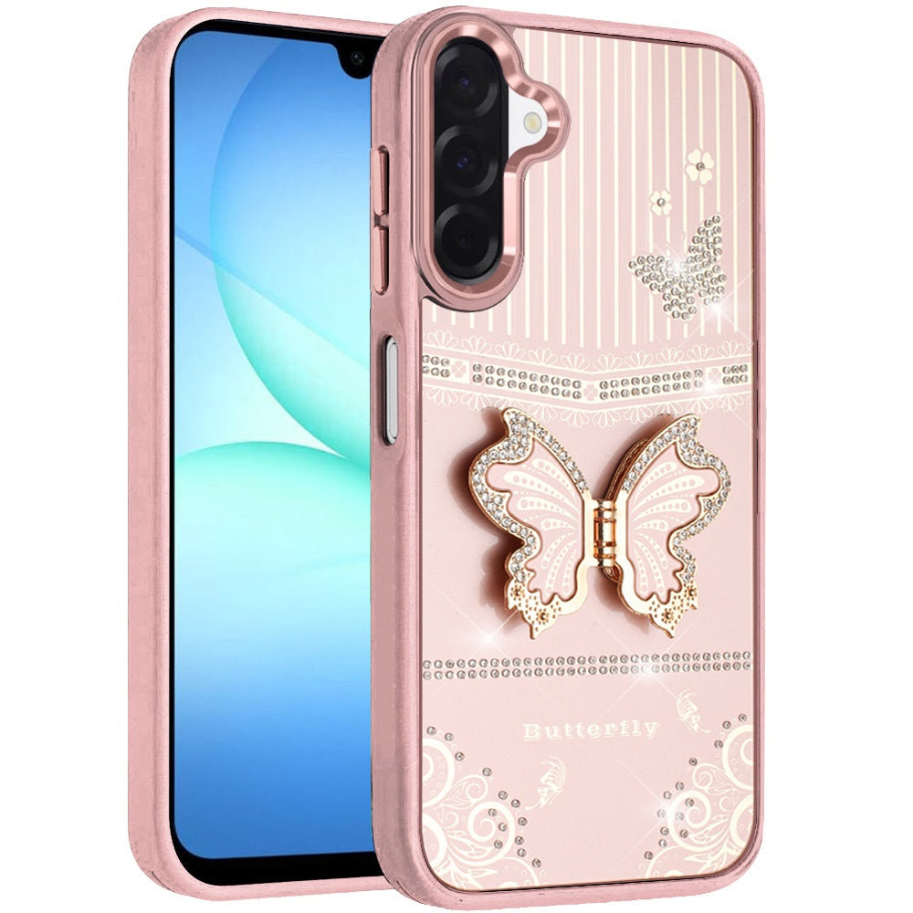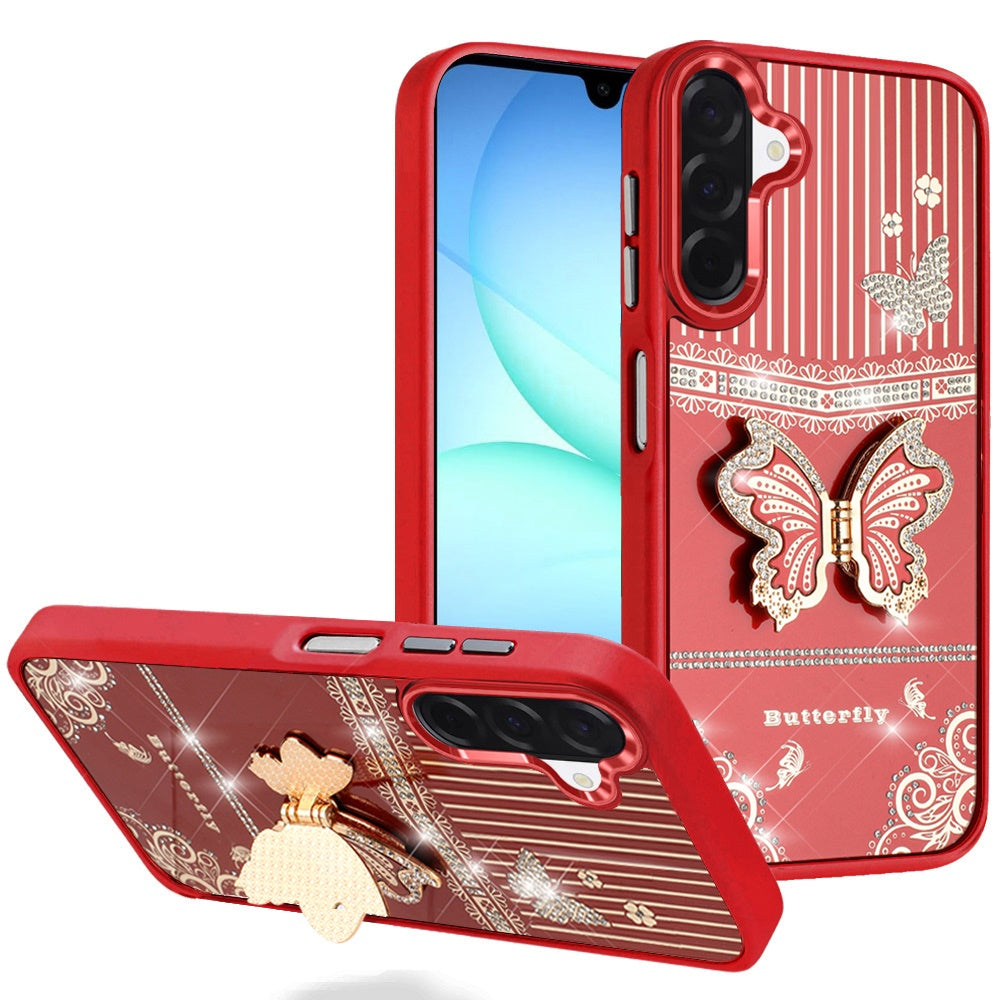 For Samsung A17 5G Case 3D Butterfly Bling Charm Stand Cover + Tempered Glass