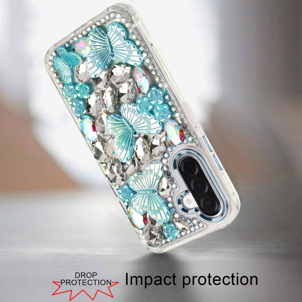 Bling 3D Diamond Large Butterflies Bling Phone Cover + Tempered Glass Screen Protector
