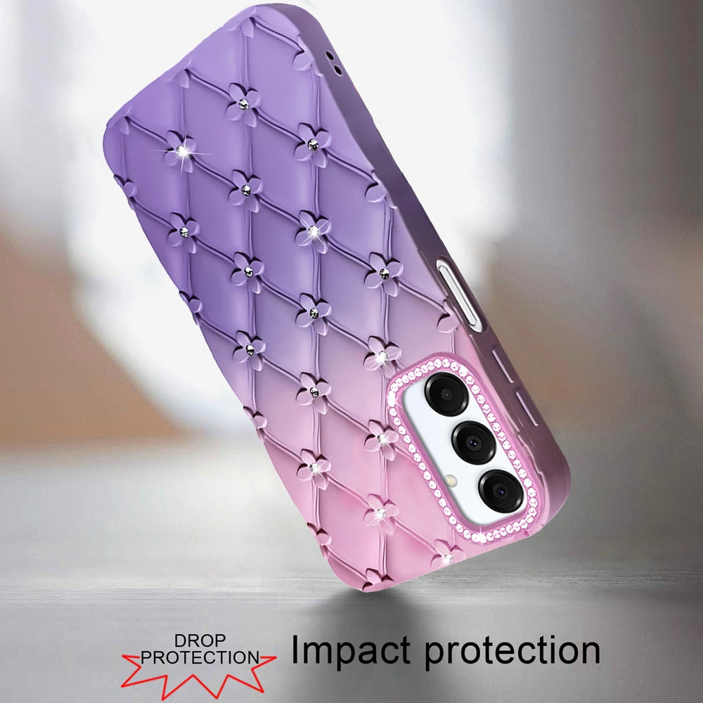 Bling Diamond Pattern Padded Phone Cover + Tempered Glass Screen Protector