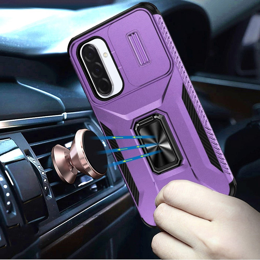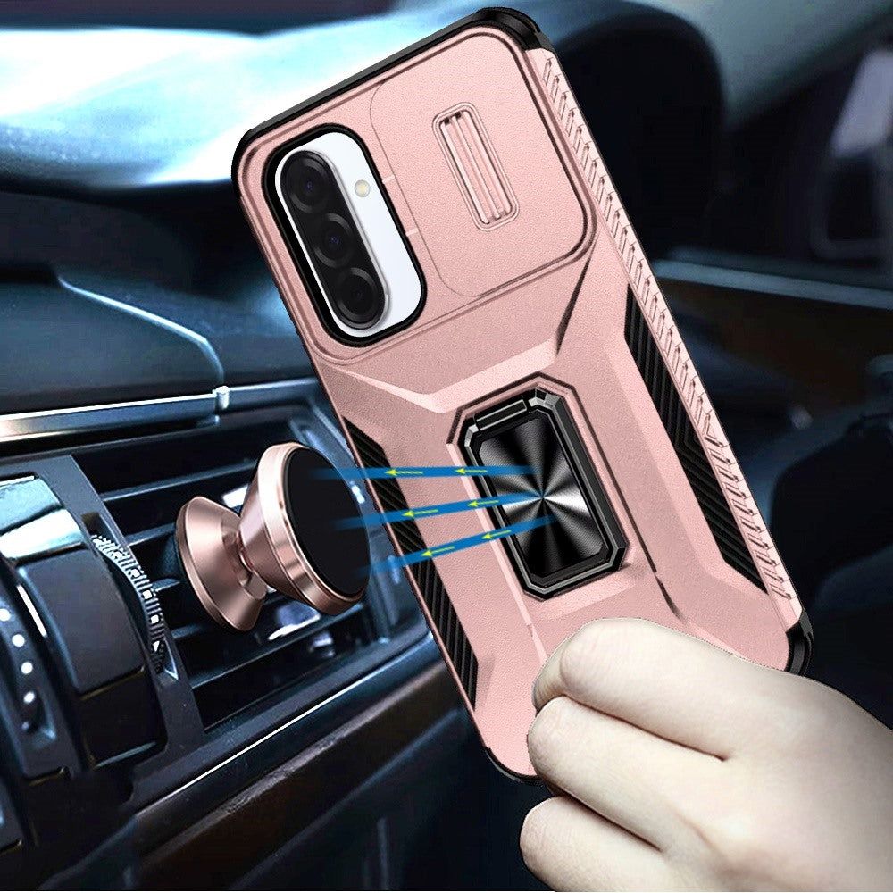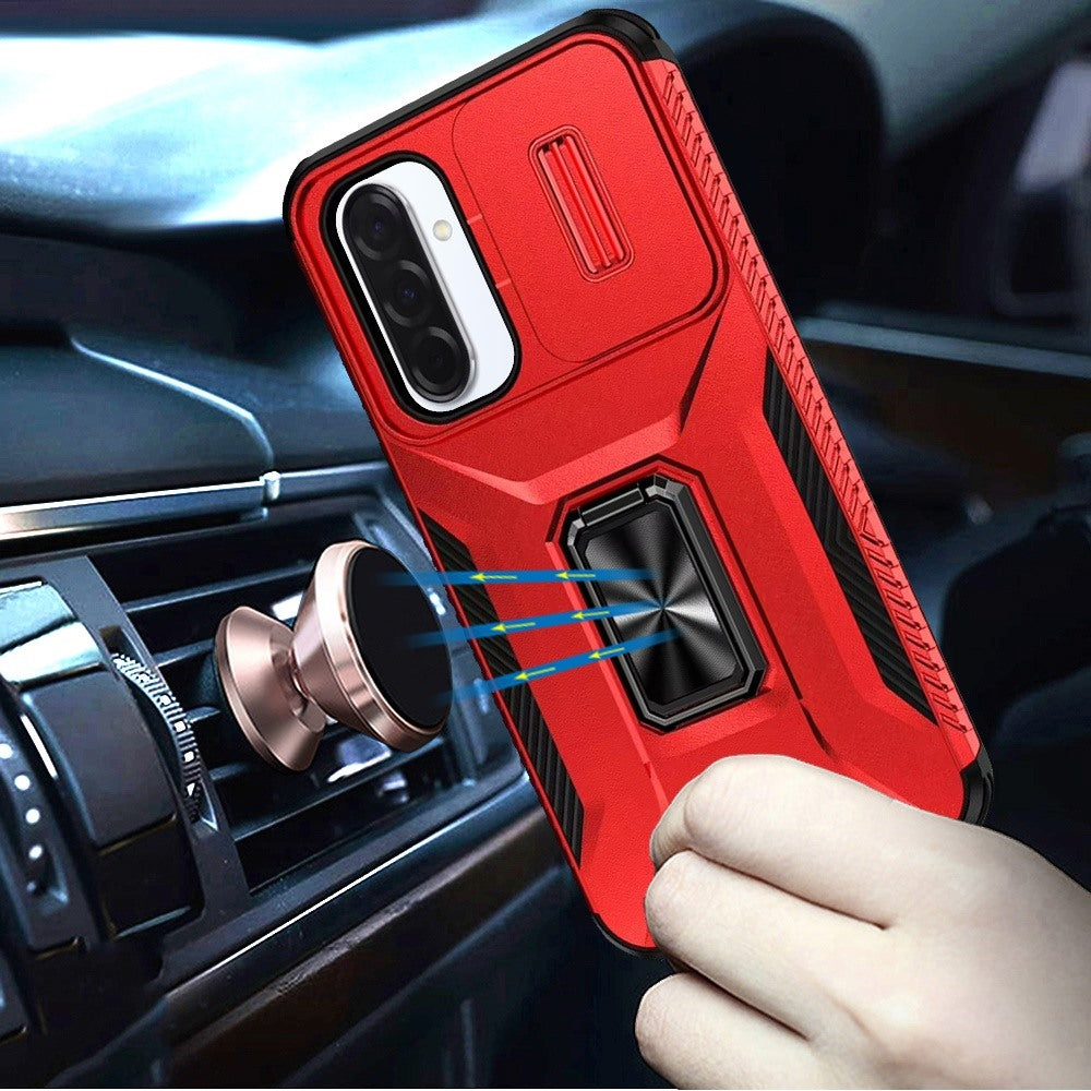 Complete Protection Sliding Lens Cover Shockproof Case Magnetic Metal Stand + Tempered Glass Screen Protector