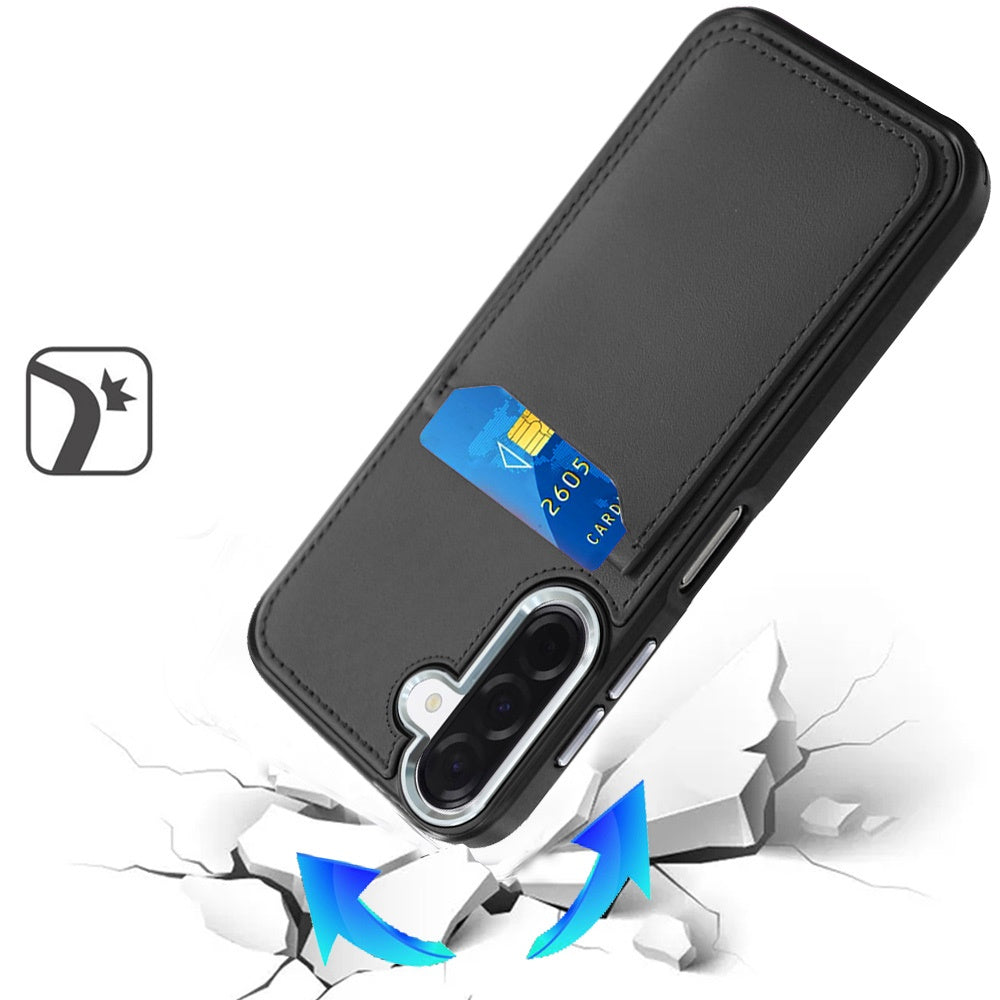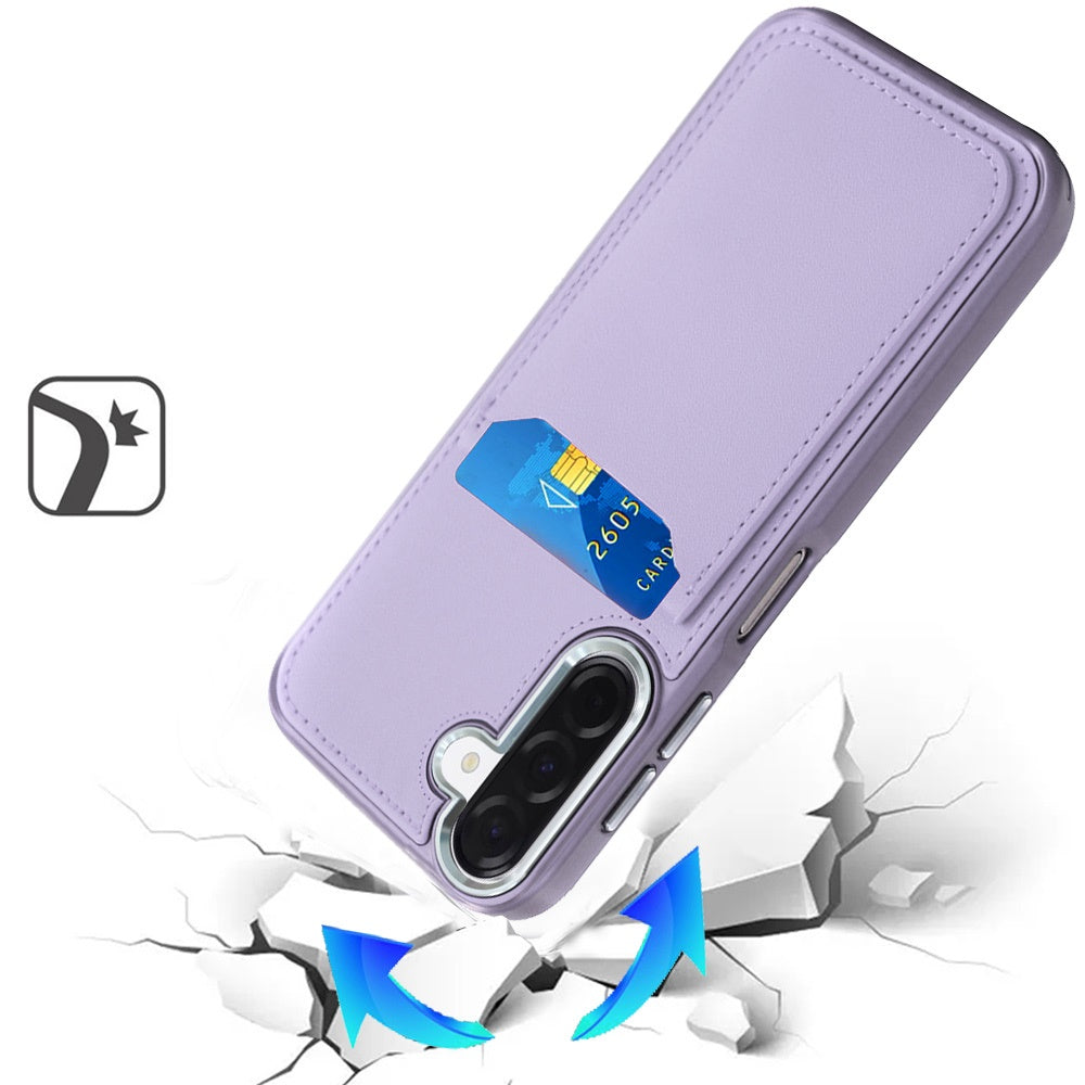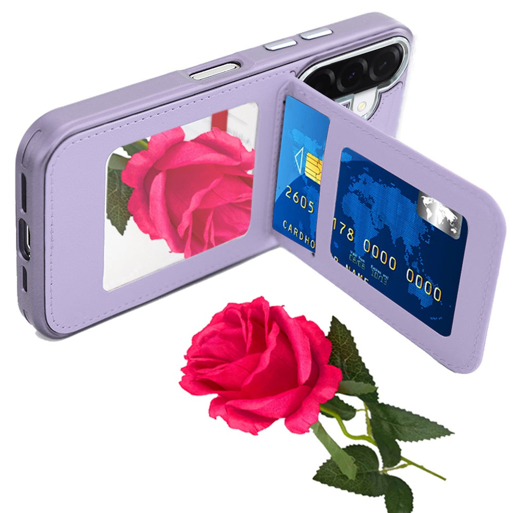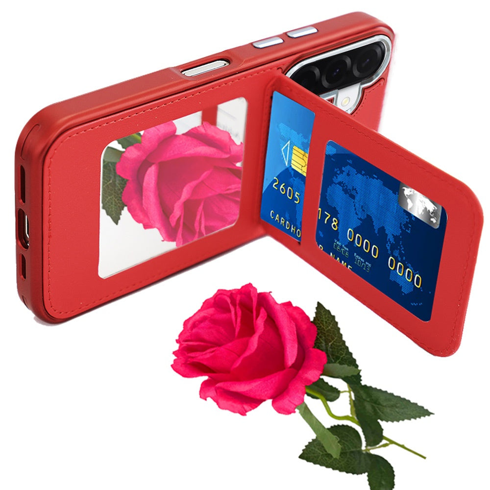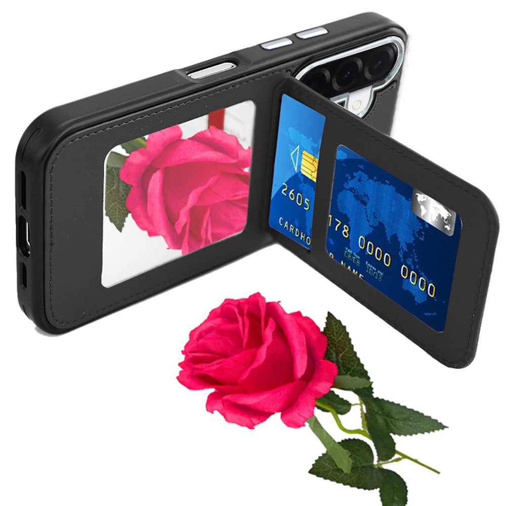 For Samsung A17 5G Case PU Leather Card Cover w/ Compact Mirror + Tempered Glass