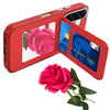 PU Leather Card Cover with compact Mirror + Tempered Glass Screen Protector