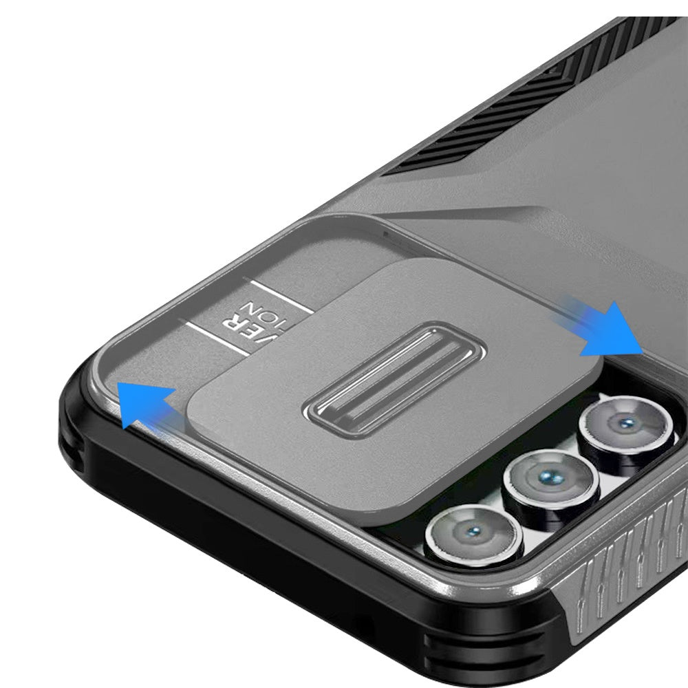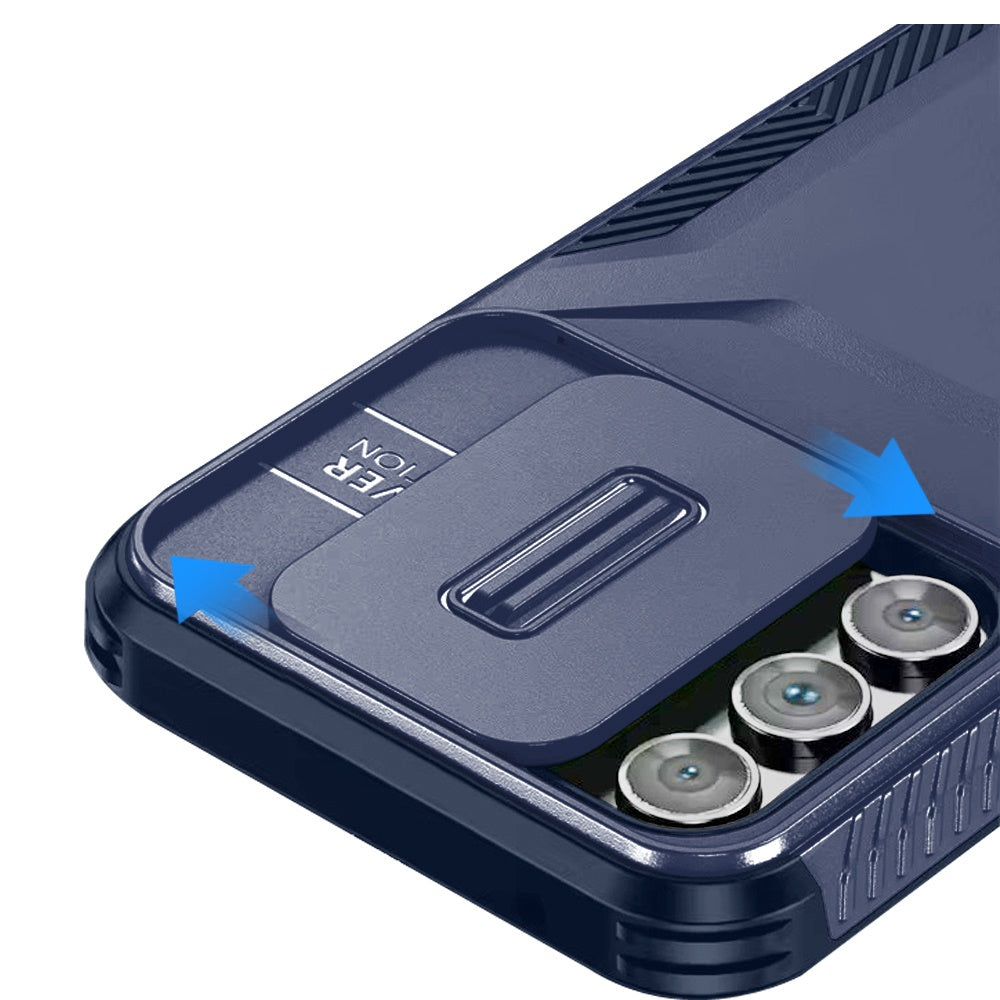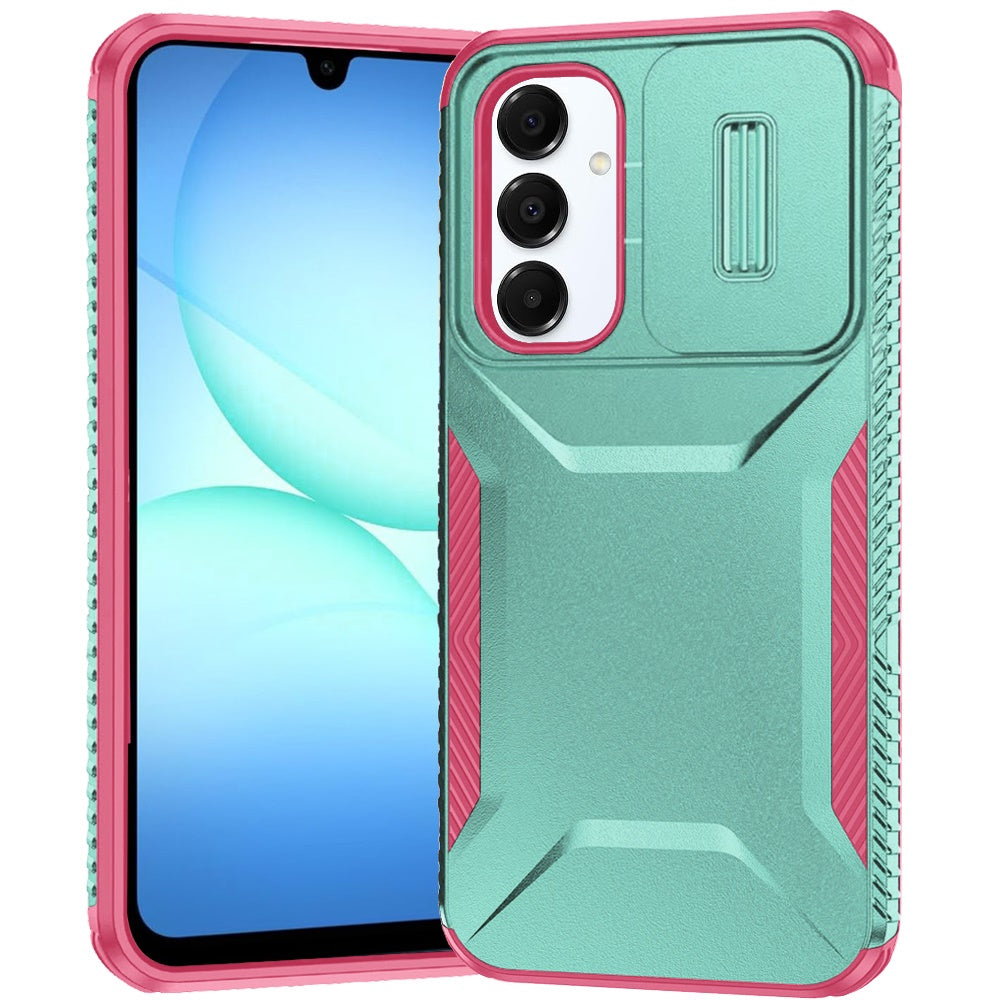 For Samsung A17 5G Case Rugged Side Grip Sliding Lens Cover + Tempered Glass