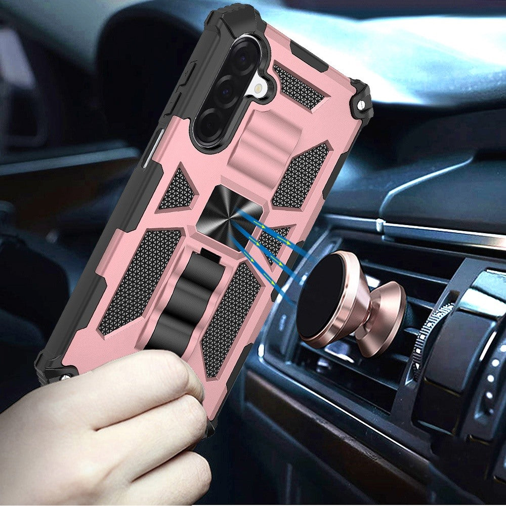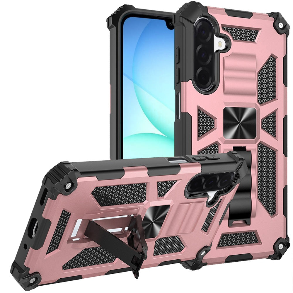 For Samsung A17 5G Case Shockproof Modern with Stand Metal Plate +Tempered Glass