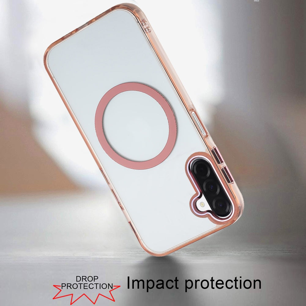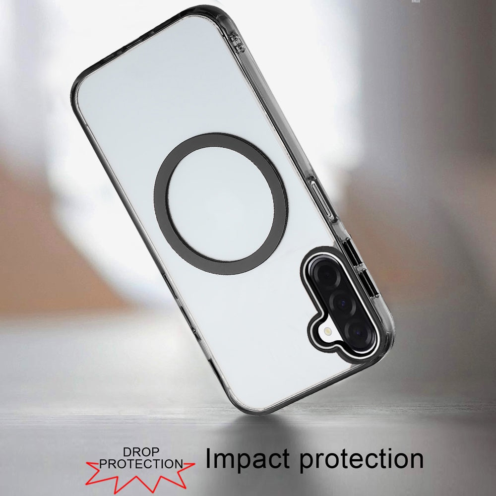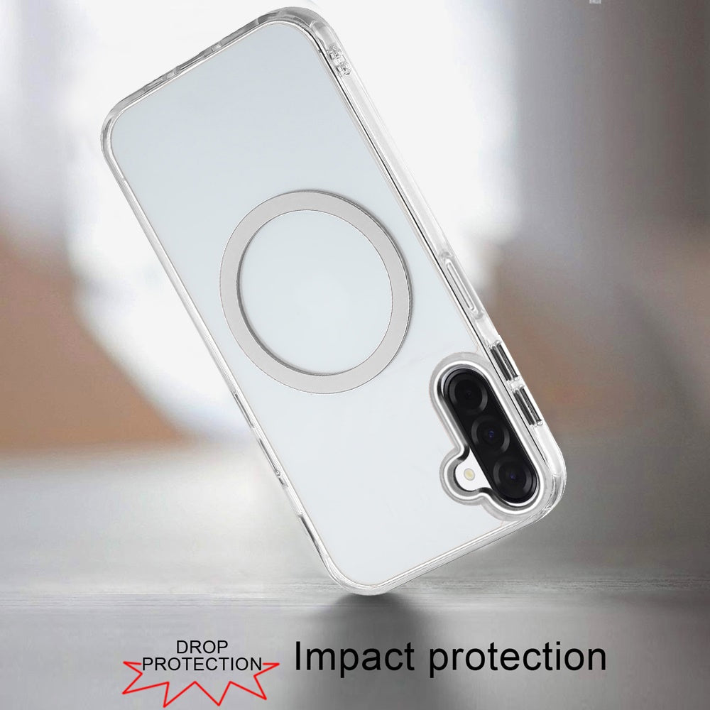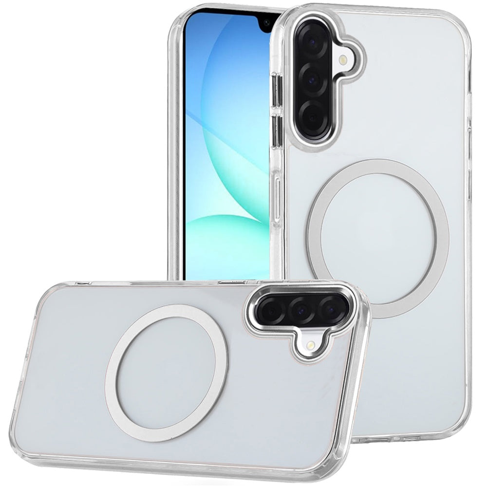 Trans-Clear Metal Buttons Magnetic Charging Phone Case + Tempered Glass Screen Protector