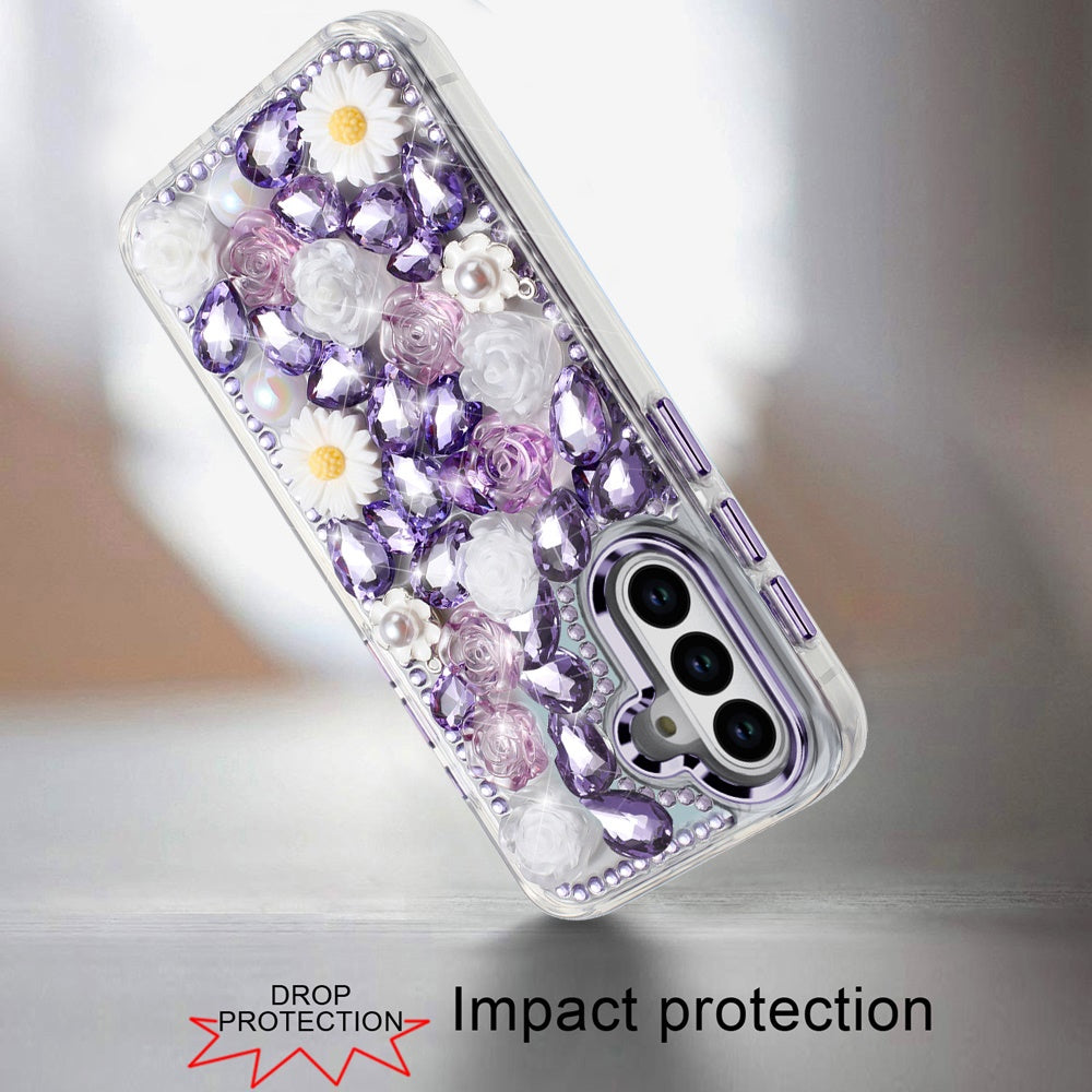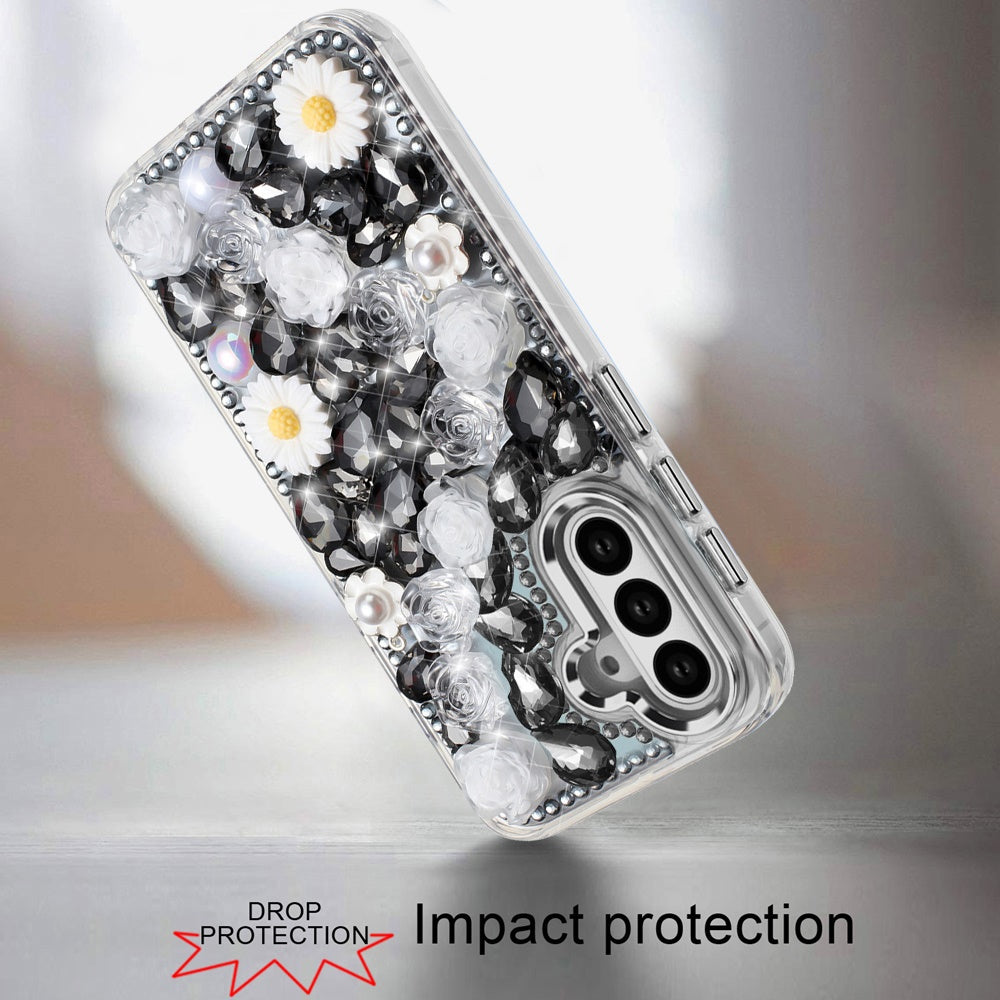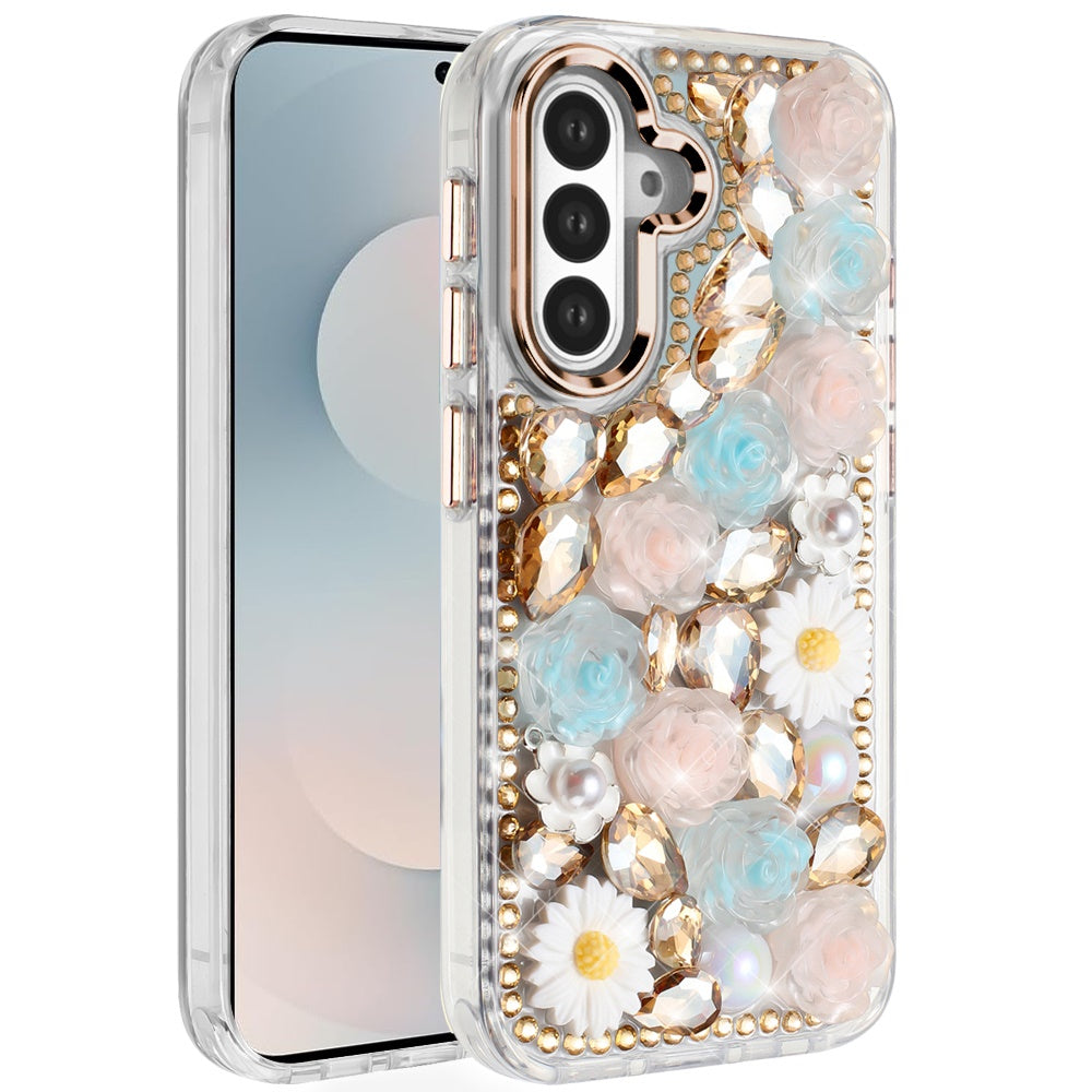 Full Bling 3D Rose Rhinestone Fashion Phone Case Cover + Tempered Glass Screen Protector