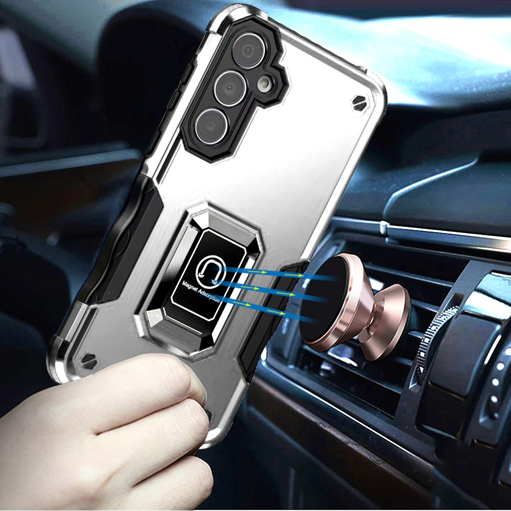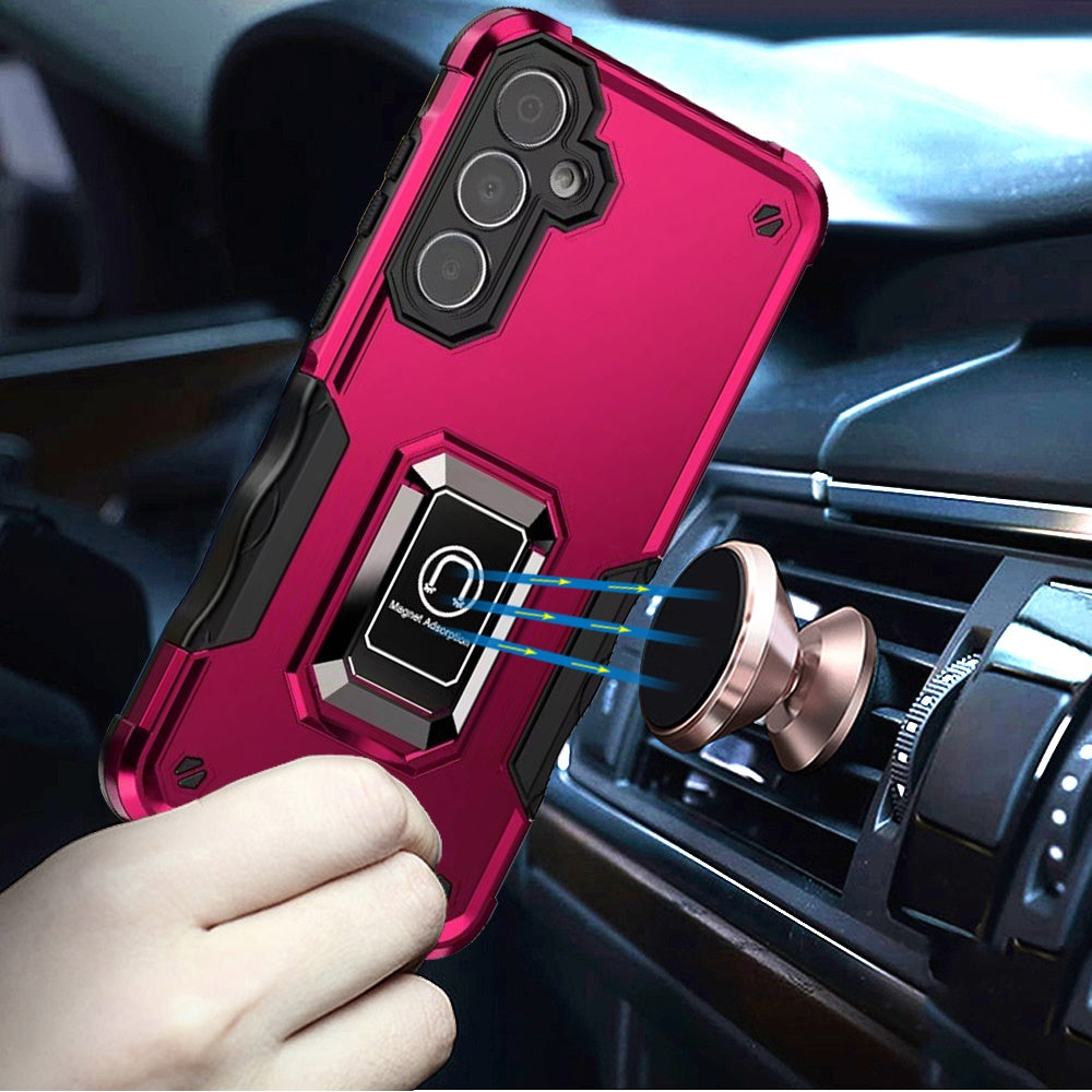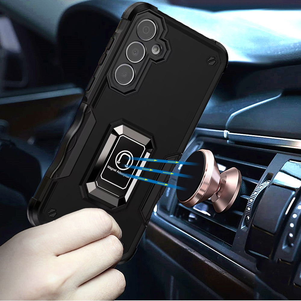 Grip Design Magnetic Ring Stand Protective Phone Case + Tempered Glass Screen Protector